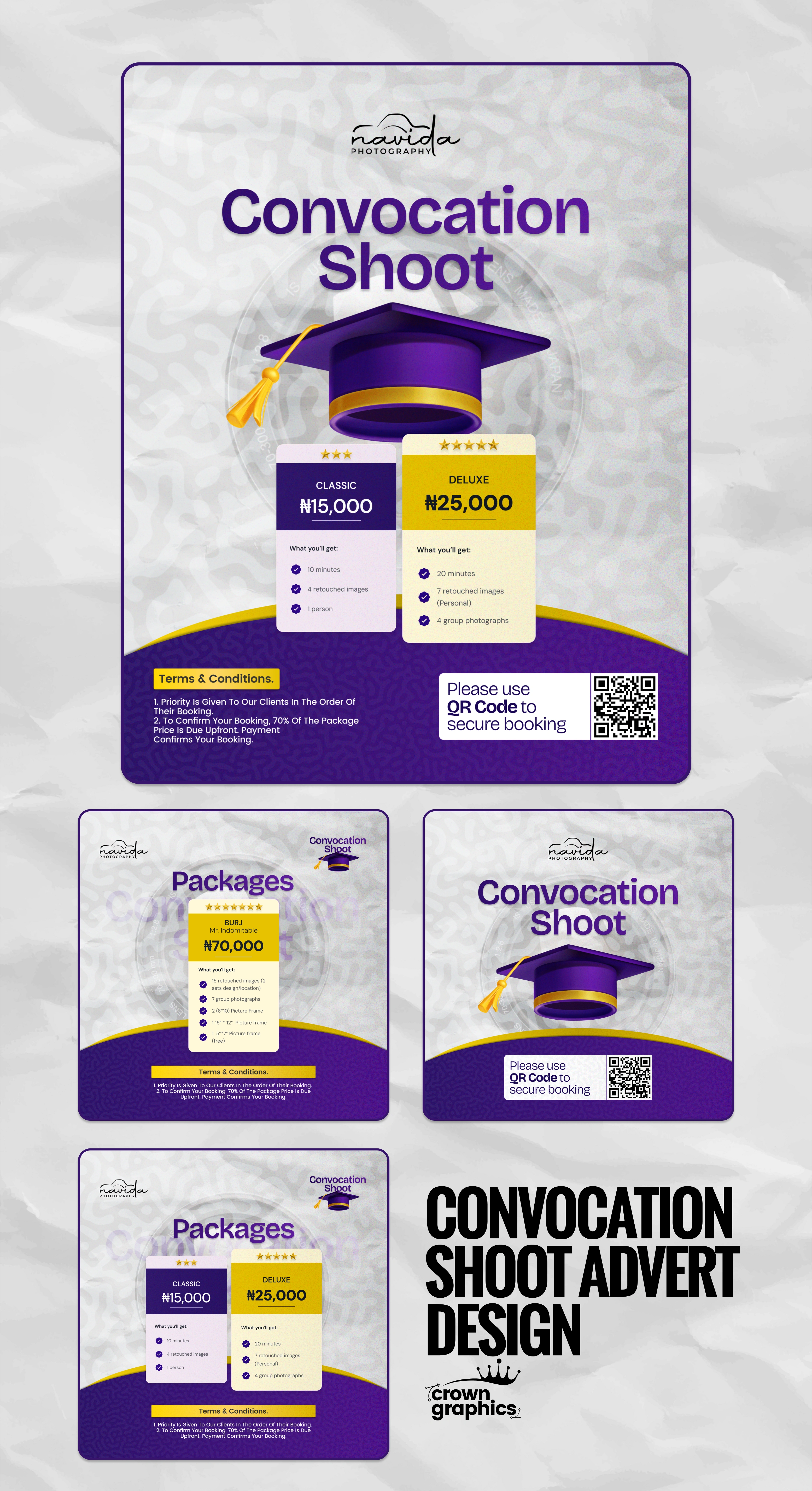 Created a visually stunning social media campaign for a Photography brand for advert of the Convocation Shoots