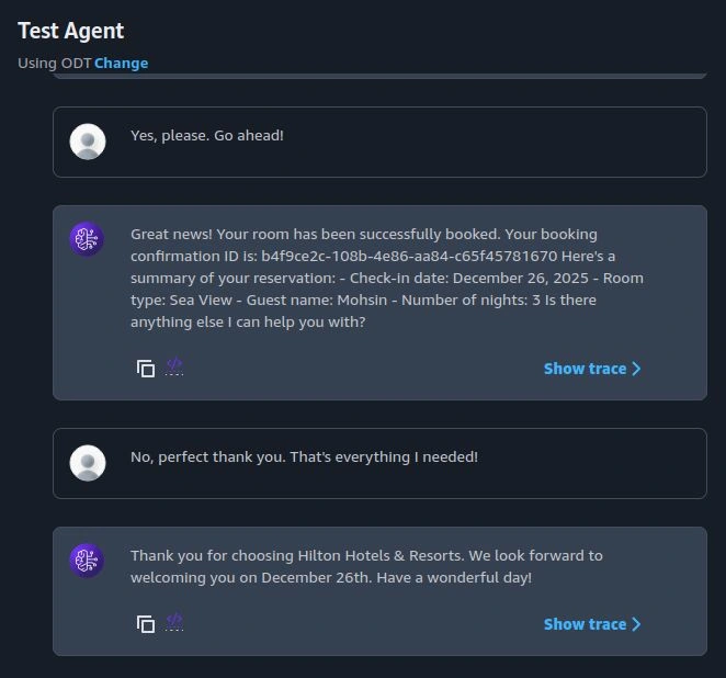 This project simulates how hotel chains can offer smarter, AI-powered booking experiences using Amazon Bedrock Agents.