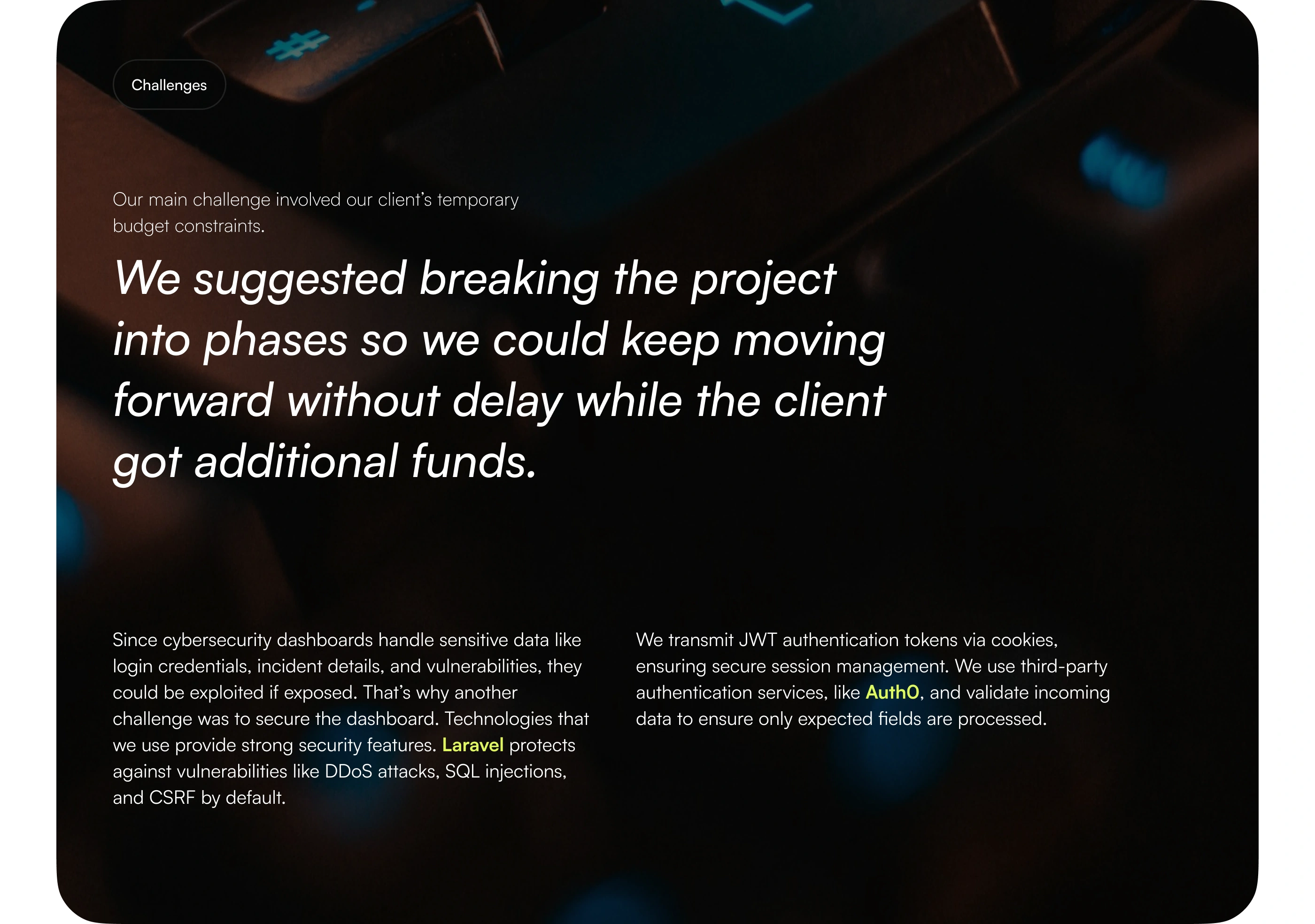 We developed a cybersecurity dashboard app for a leading industry client, transforming complex threat data into clear, actionable insights. Our team handled the full cycle of app development: UI/UX design, data visualization, real-time updates, and secure authentication. The result is an intuitive dashboard that empowers employees to track vulnerabilities, monitor incidents, and stay ahead of cybersecurity trends.