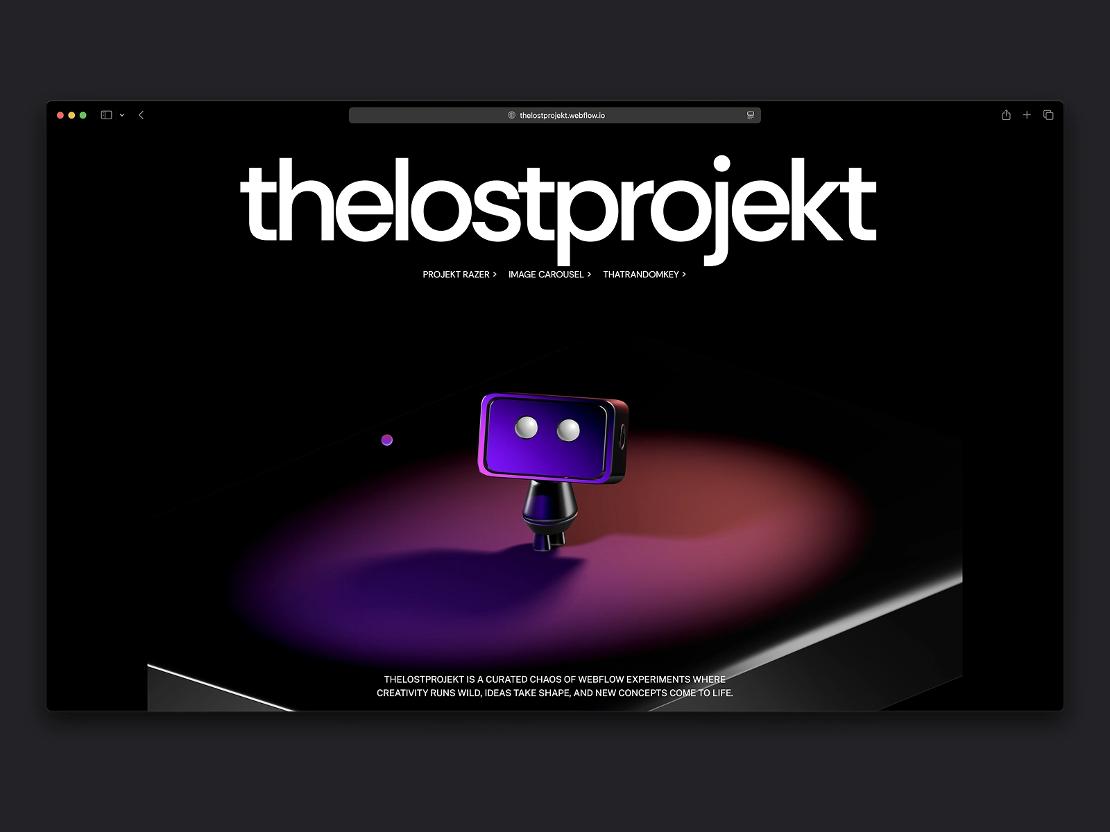 “thelostprojekt" is a curated chaos of Webflow experiments where creativity runs wild, ideas take shape, and new concepts come to life.”