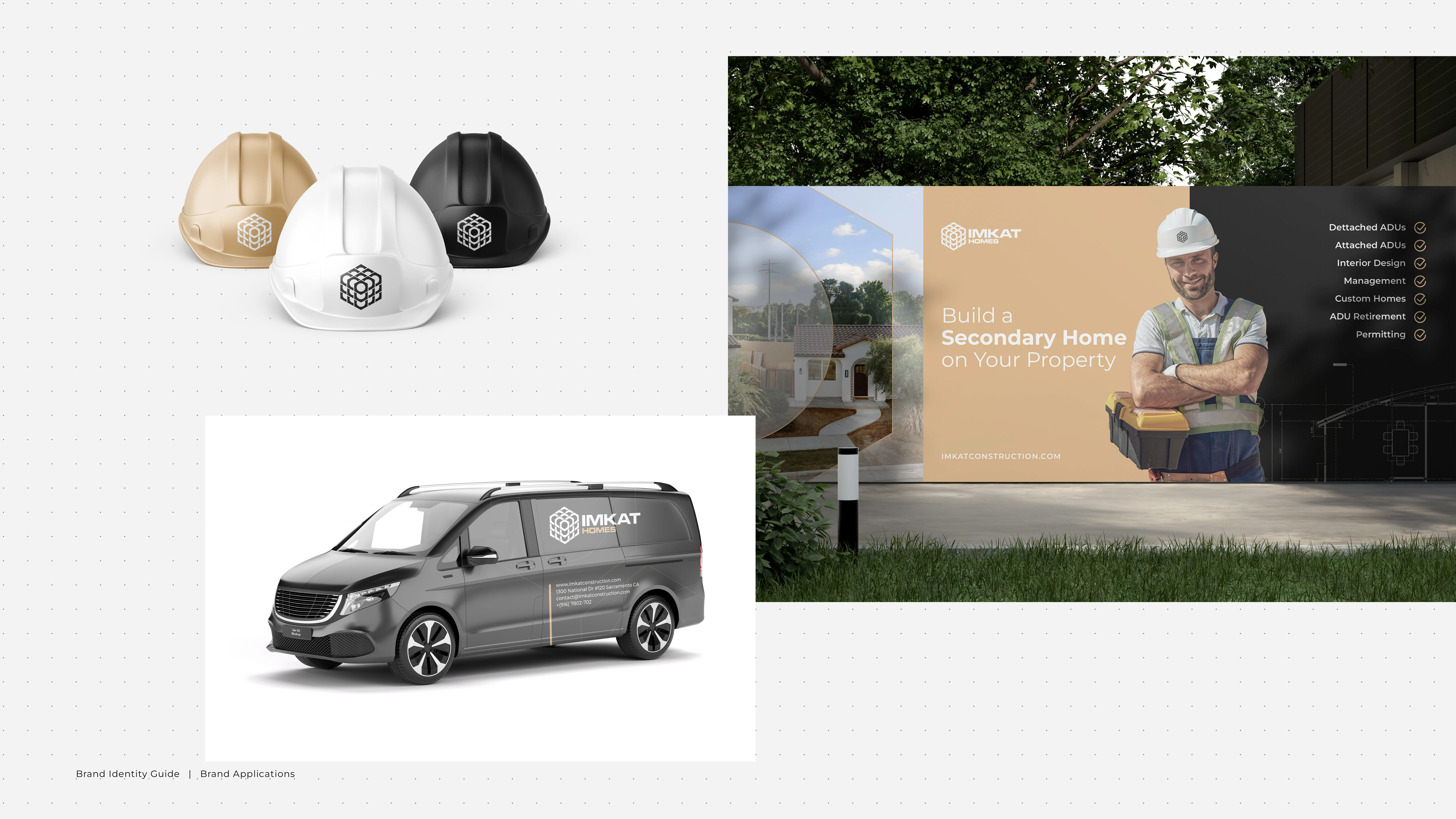 IMKAT Construction is a full-service remodel and specialist operating in Northern California. While their existing logo remained in place, the project focused on elevating their visual system and brand infrastructure across all touch points - from print materials to vehicle wraps to digital presence.