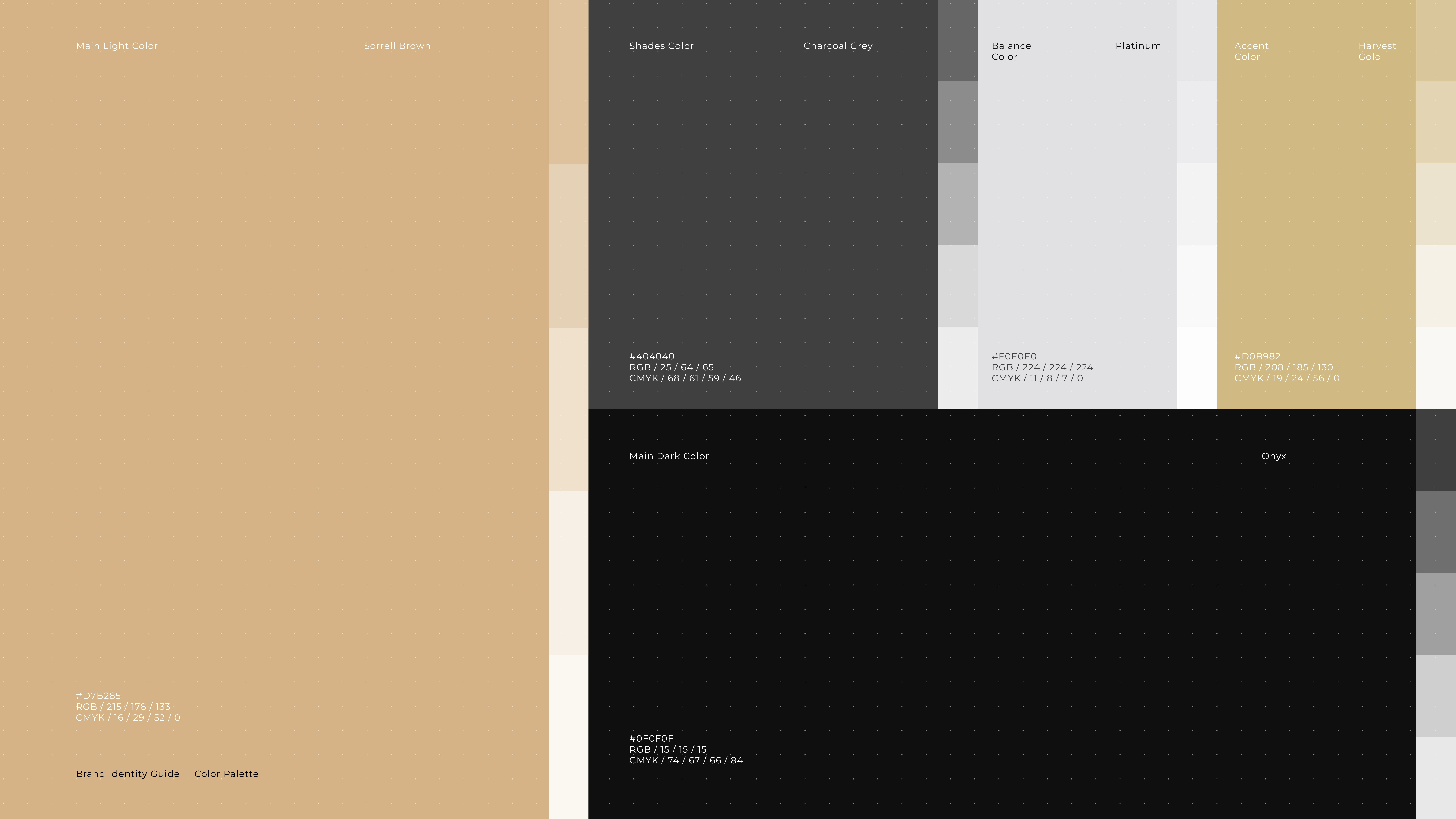 The finishing piece was a full brand book that compiles: logo usage rules, color specifications, typography hierarchy, patterns