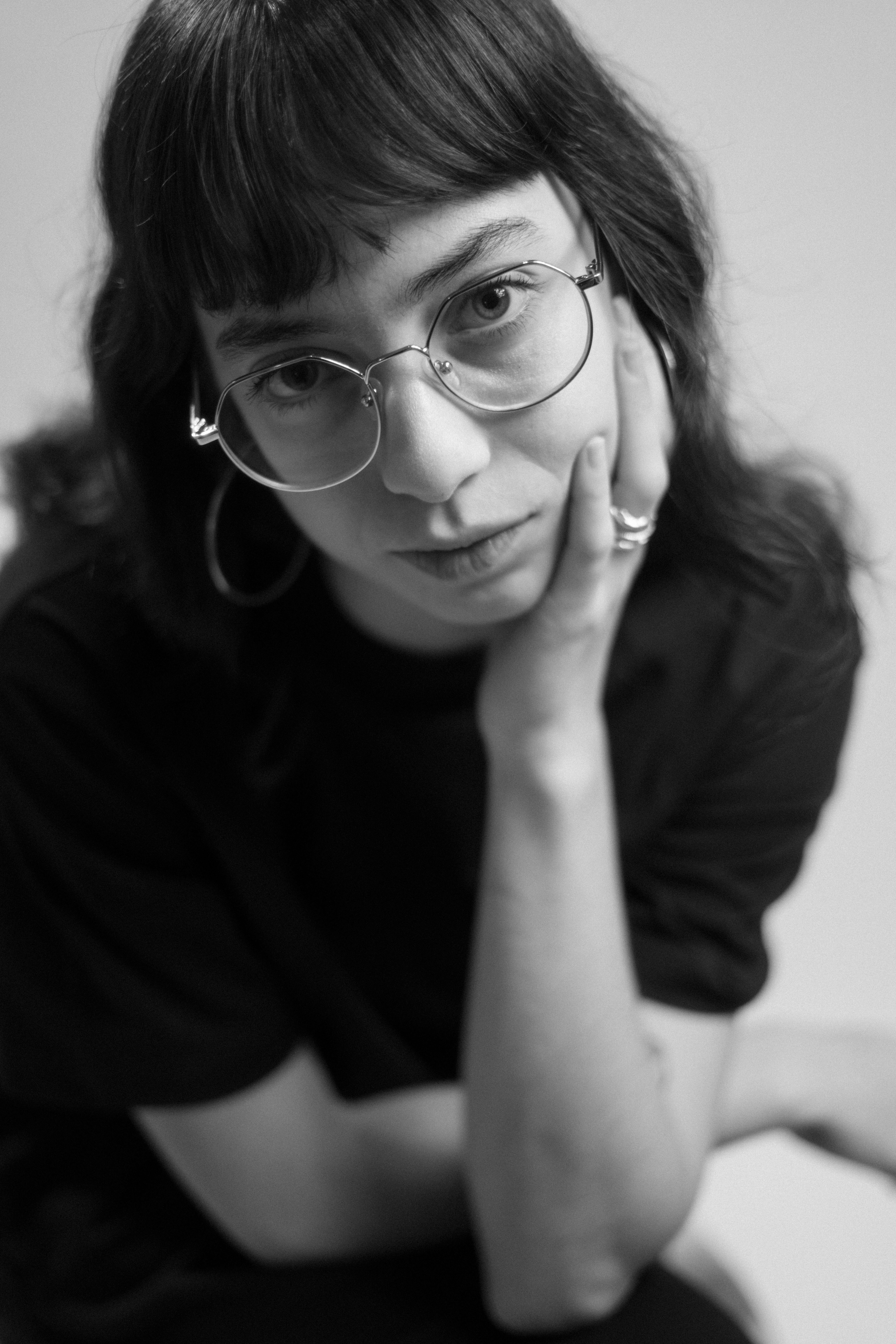 A black-and-white exploration focused on presence + character—moving between minimal, quiet frames and more theatrical energy, with soft light and direct gaze ✧₊˚