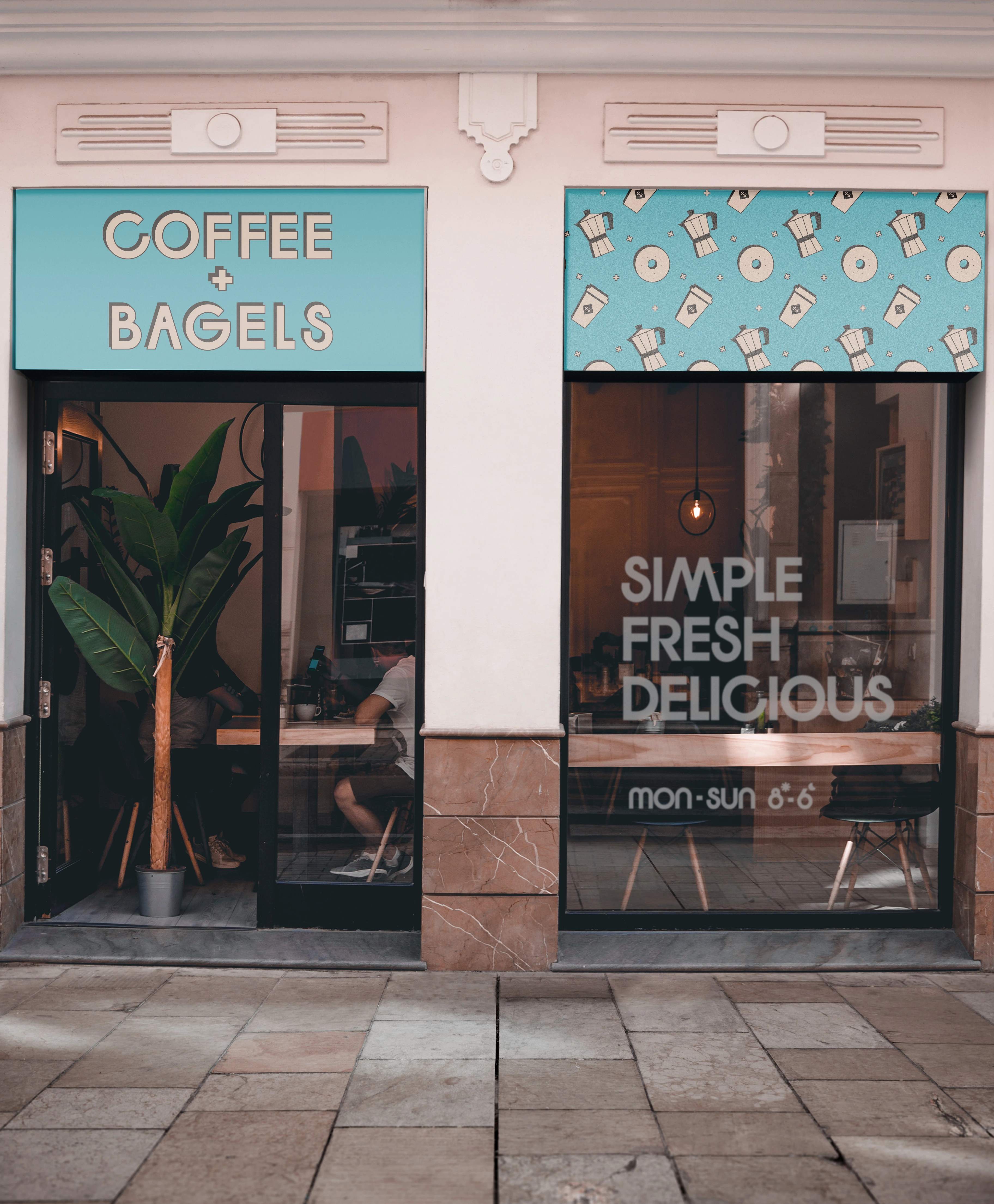 This versatile branding appeals to a wide audience, from busy professionals seeking a quick, cheerful bite to casual diners and coffee enthusiasts.