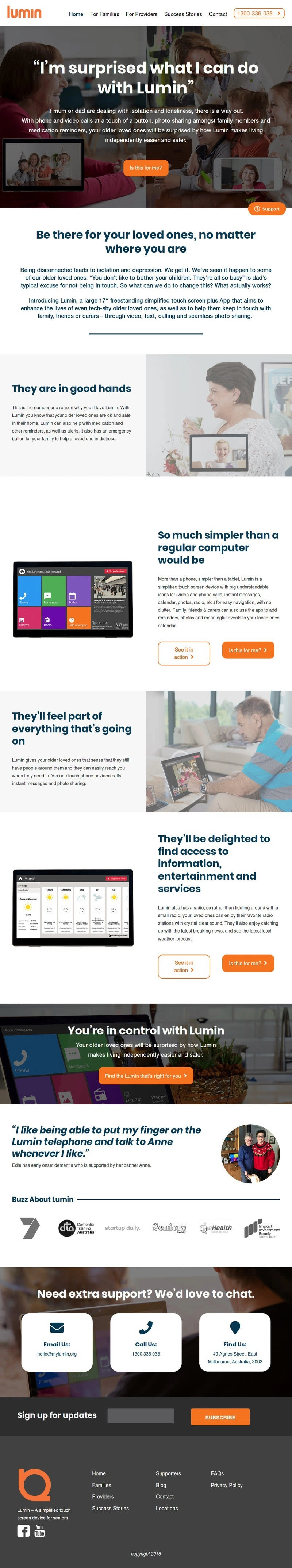 In 2018 I wrote I wrote Lumin’s homepage to show how a simple screen can connect generations and make independence feel a little lighter.