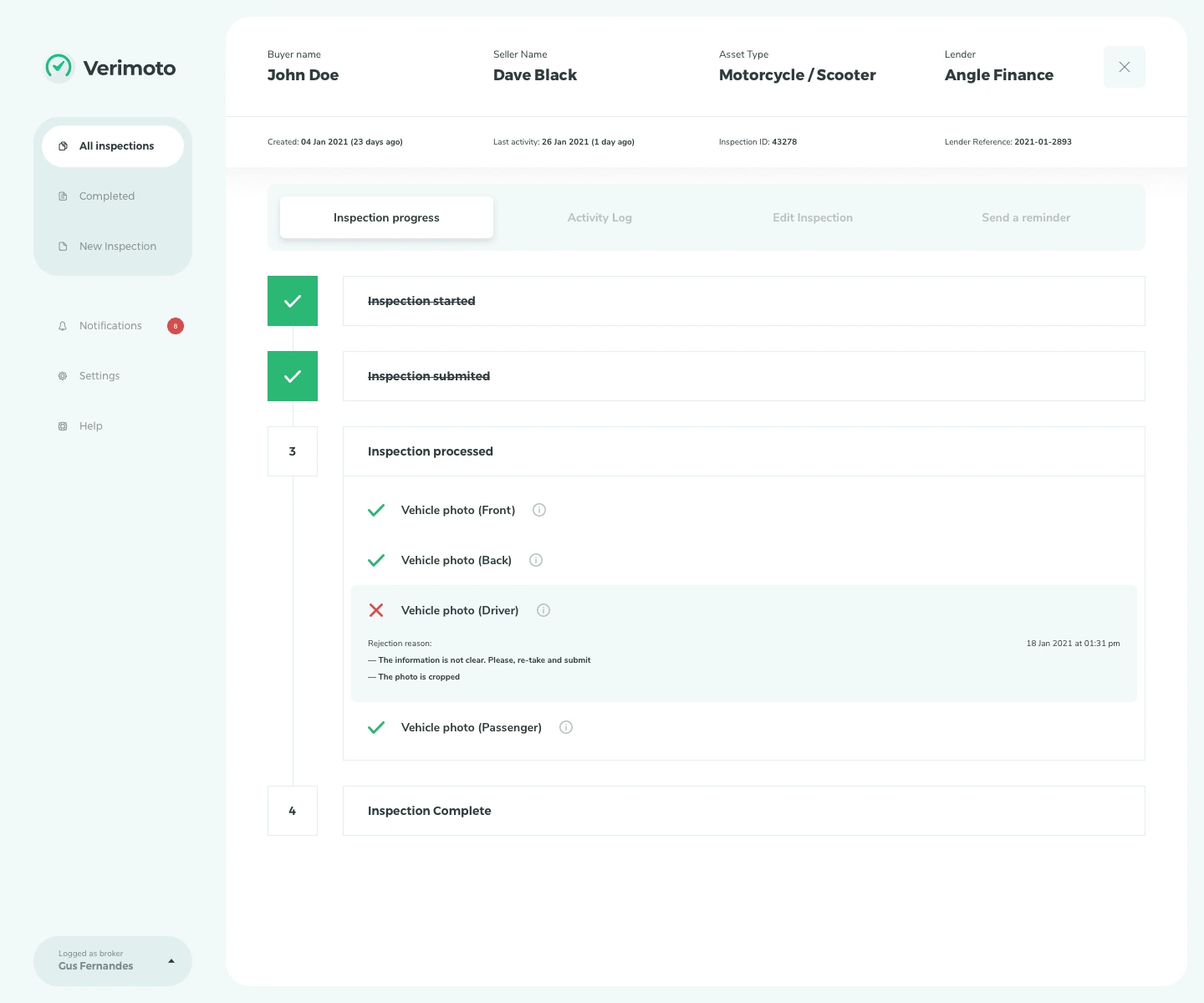 ID Check with document verification services, facial recognition, funds destination verification (FDV), plate optical recognition, VIN scan and reader, seller and driver Licence OCR and Biometrics, PPSR check, owner verification, location & timestamp flags, prevent GPS spoofing.