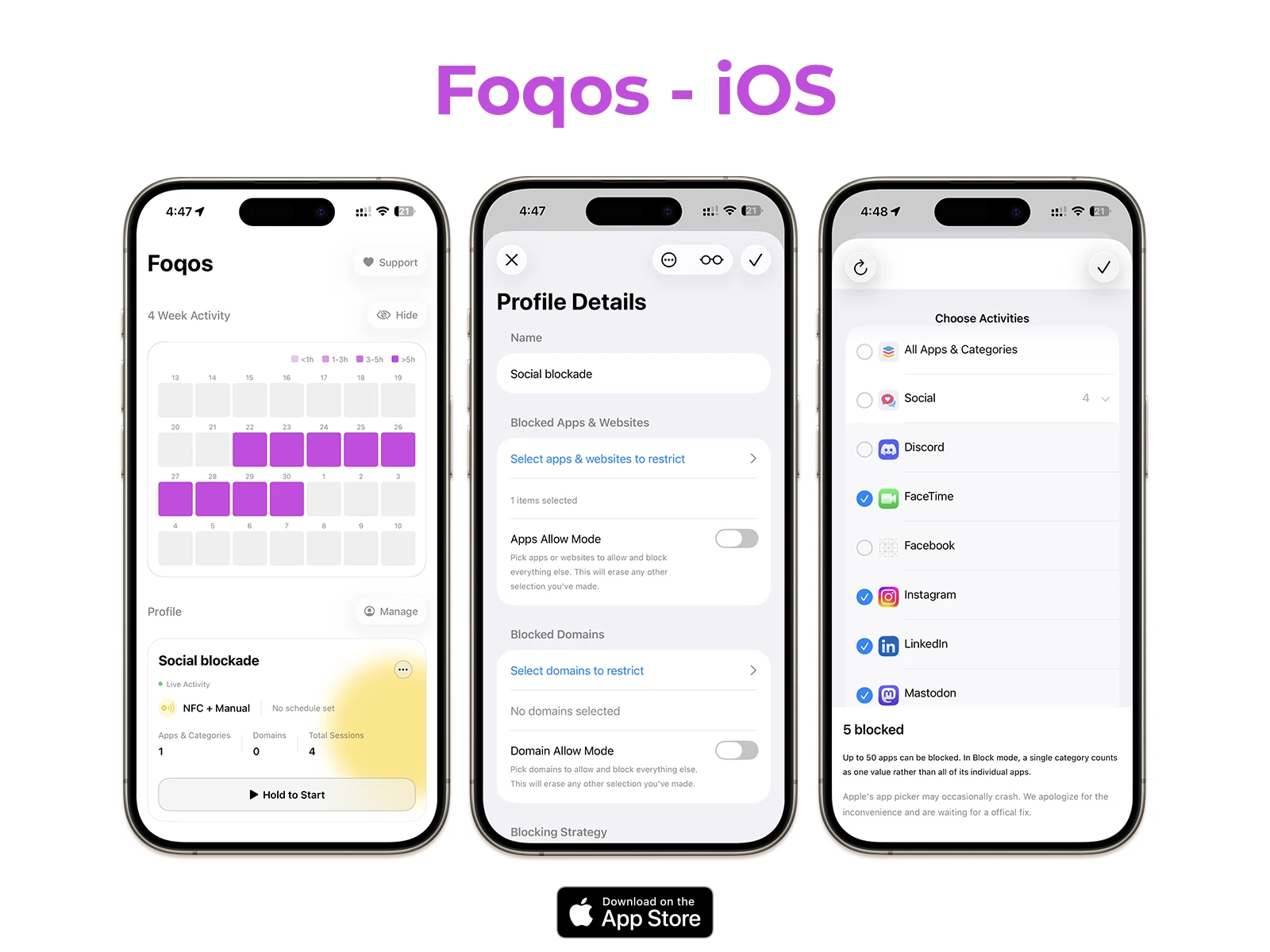 Tap an NFC tag, phone locks down instantly. Screen Time API, FamilyControls, Core NFC, scheduled blocking, domain filters. 4.9 stars. Live on the App Store.