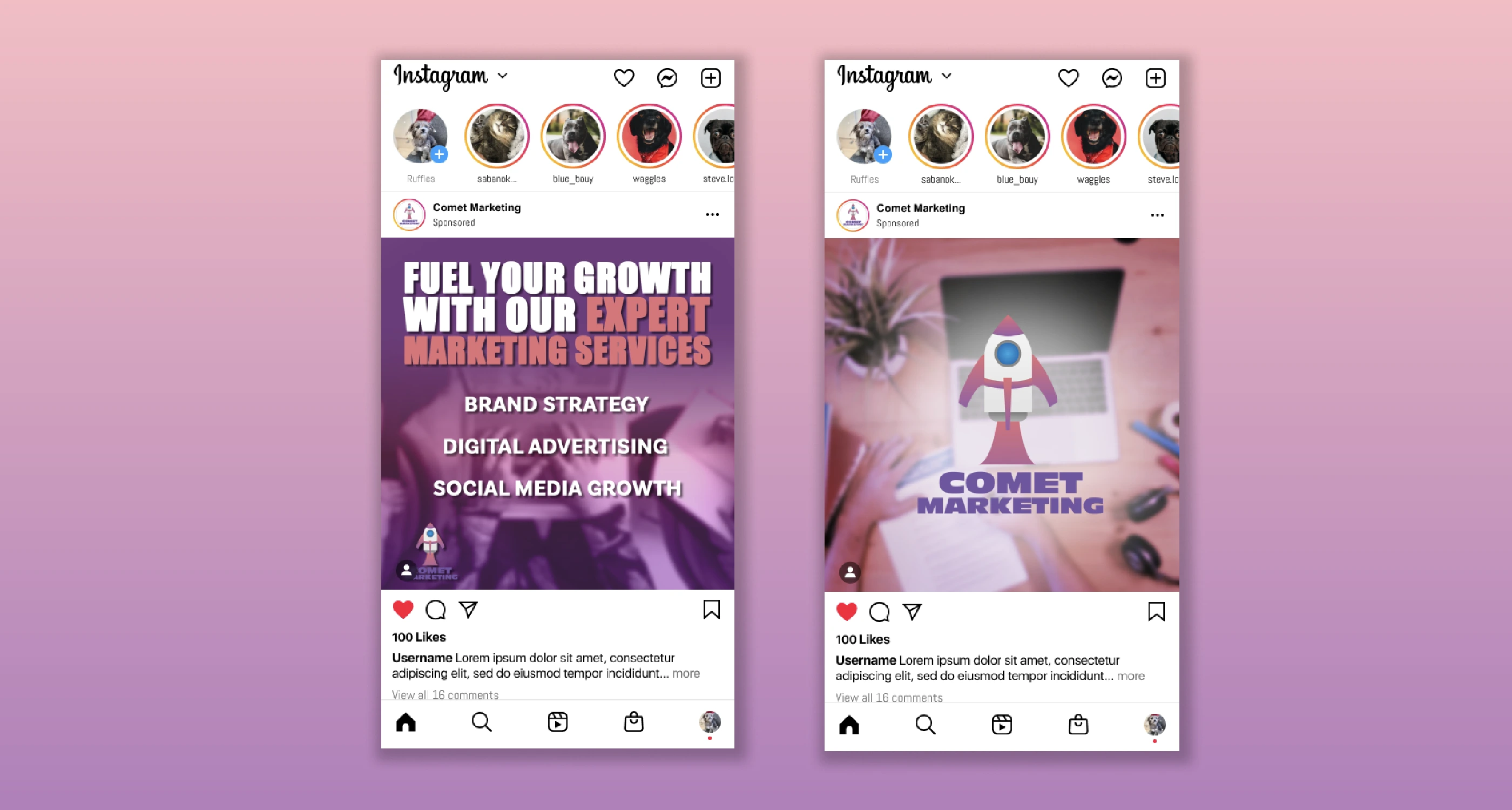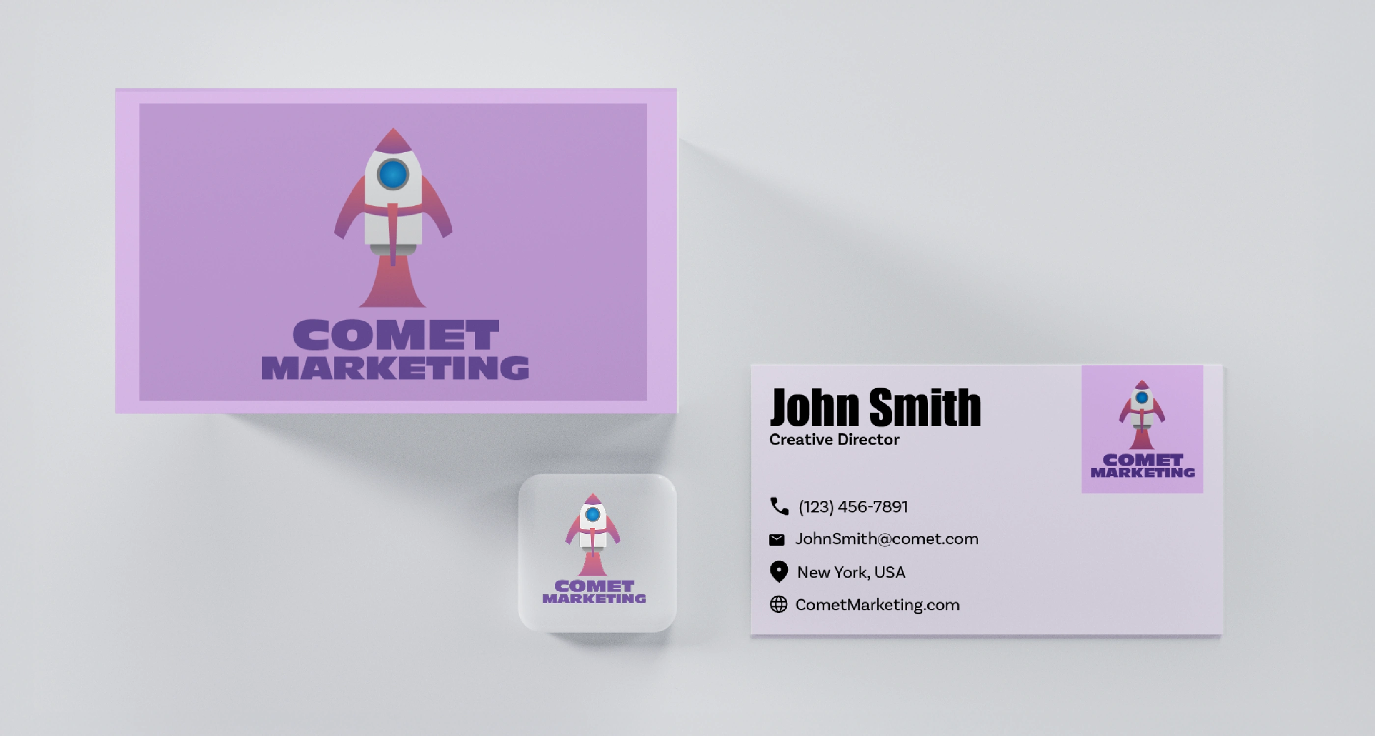 Comet is a bold marketing agency brand with a sleek logo, vibrant visuals, and cohesive assets built to reflect energy, growth, and confidence.
