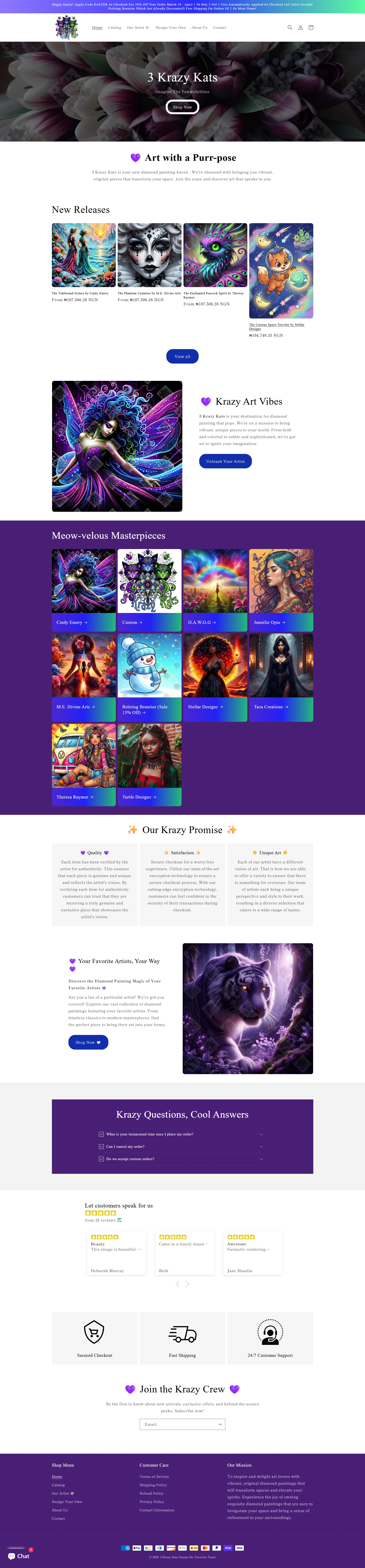 Designed and optimized a Shopify store for a diamond painting brand using the Dawn theme with custom code enhancements. The focus was on creating a clean, engaging shopping experience that improves product discovery and supports conversions.