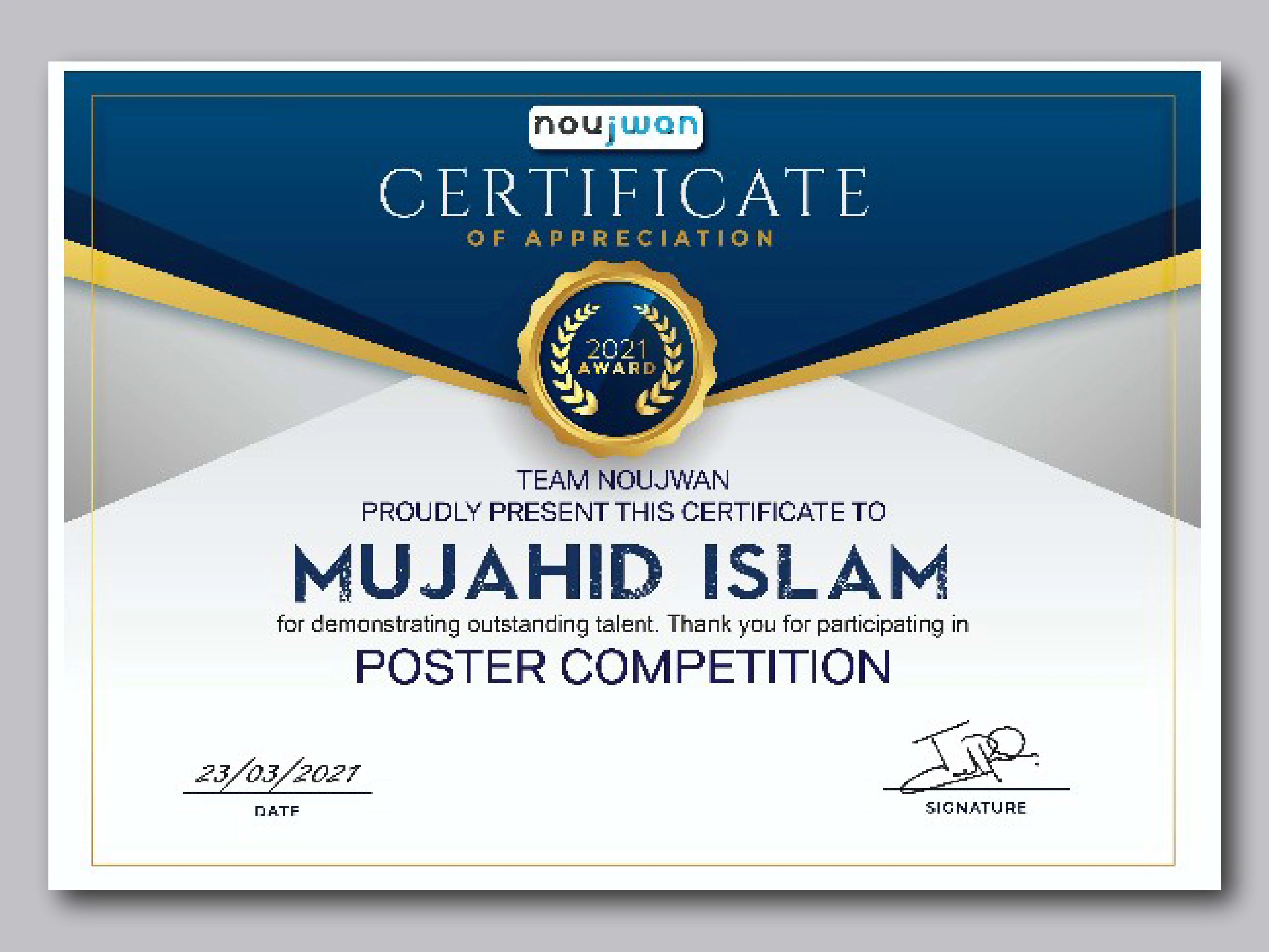 Poster Competition Winning Certificate