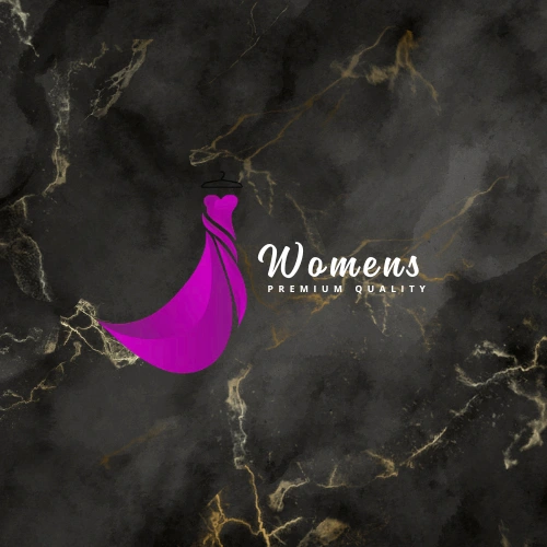 The deep marble background immediately commands attention, framing the core elements with a sense of drama. Your purple dress icon sits front and center, creating a clear focal point. The small black heart perched above guides the viewer’s eye upward, then the eye naturally drops to the “Womens” script, and finally anchors on “PREMIUM QUALITY.” Each element feels deliberately placed to lead the gaze and reinforce meaning.