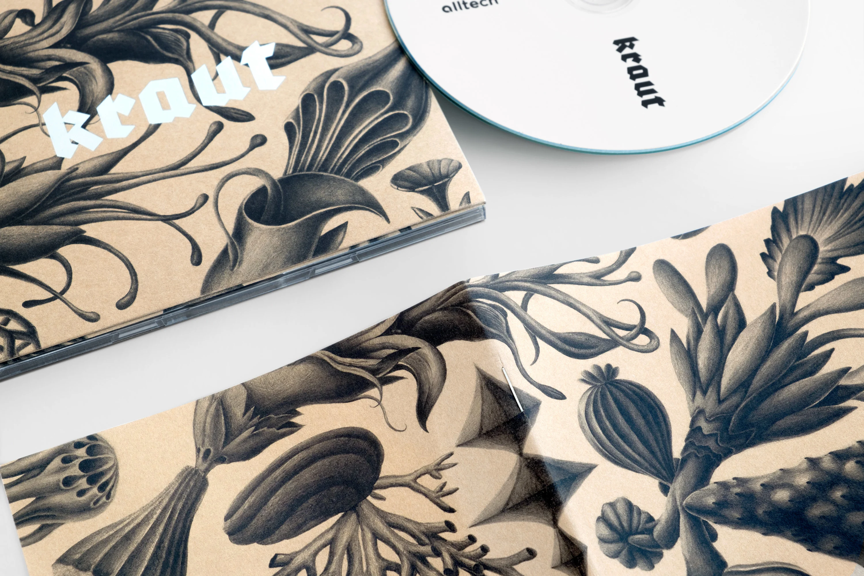 Special edition of a collectable german 60s rock-music compilation pack. With a hand-drawn patterns printed on a design cardboard.