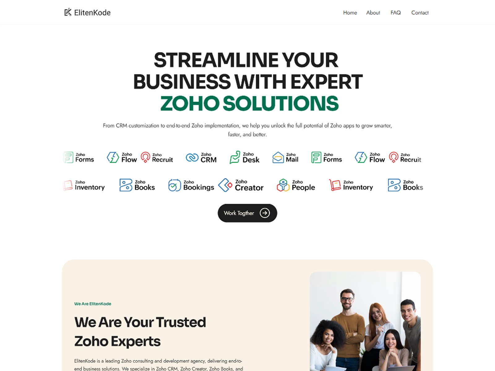 ElitenKode delivers smart, tailored Zoho solutions to automate workflows, integrate tools, and scale your business—no coding needed.
