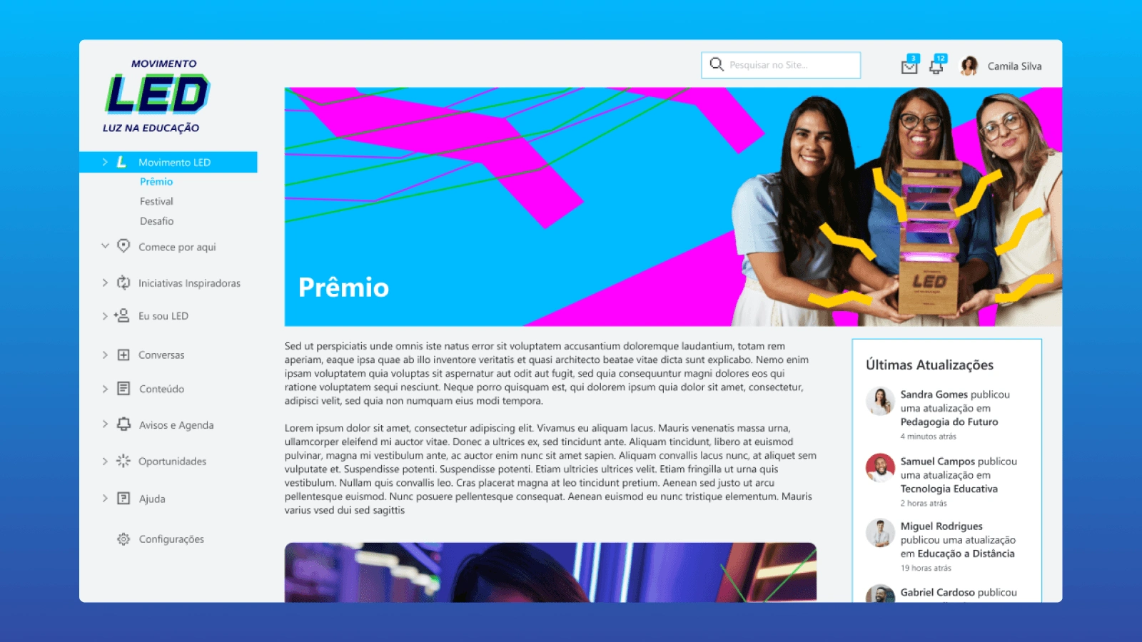 Designing the Movimento LED platform required balancing multiple objectives within a single digital ecosystem. The project needed to host inspiring educational stories, manage submissions for the LED Award, and provide an accessible agenda of events for teachers and students throughout Brazil.