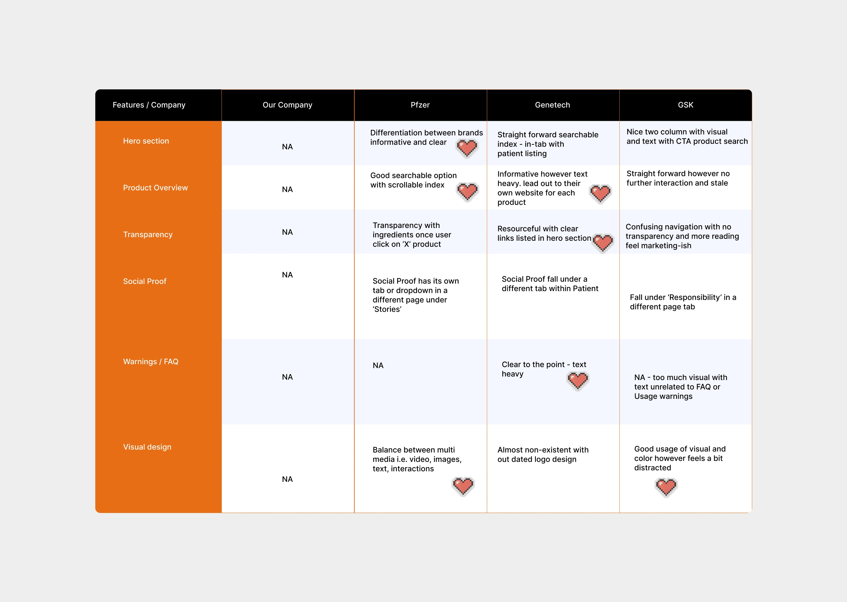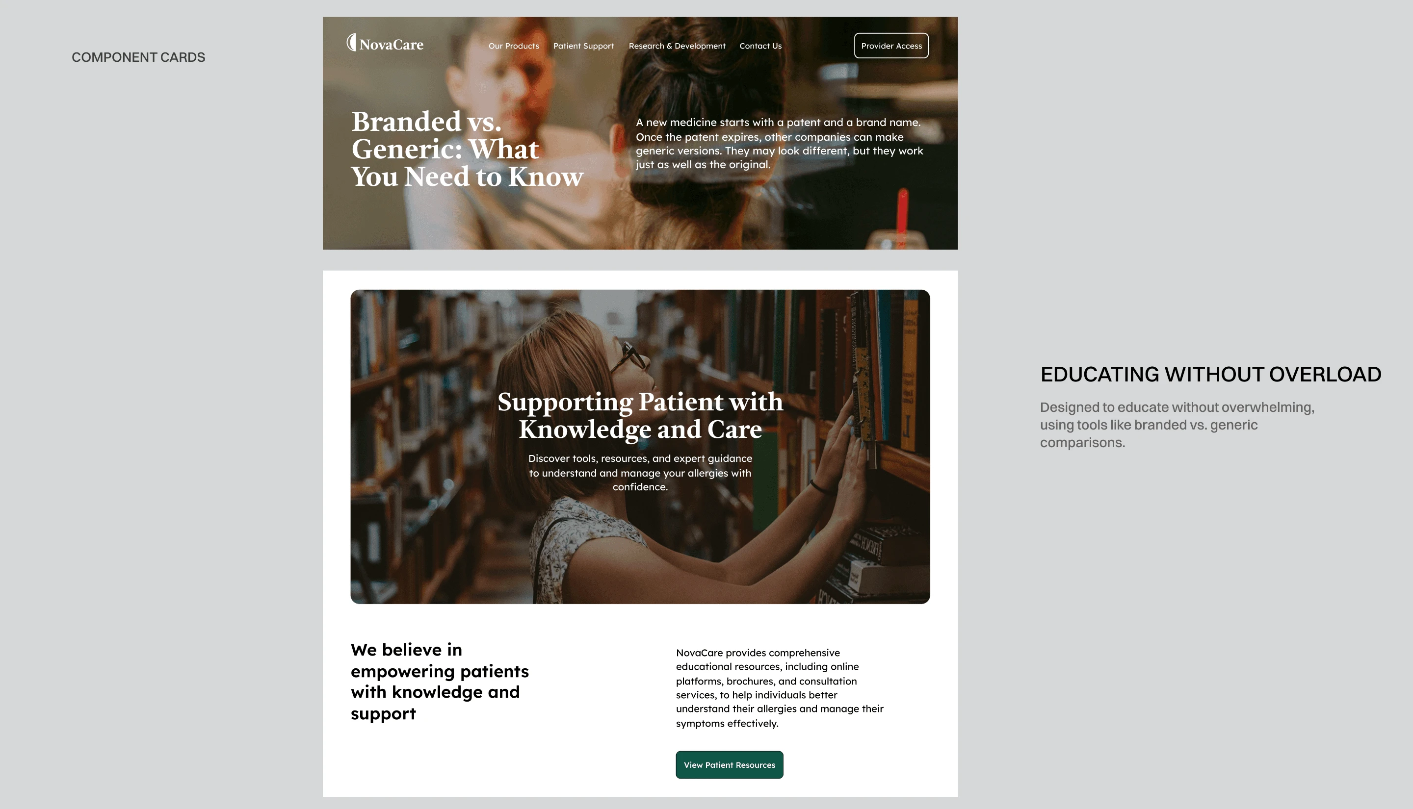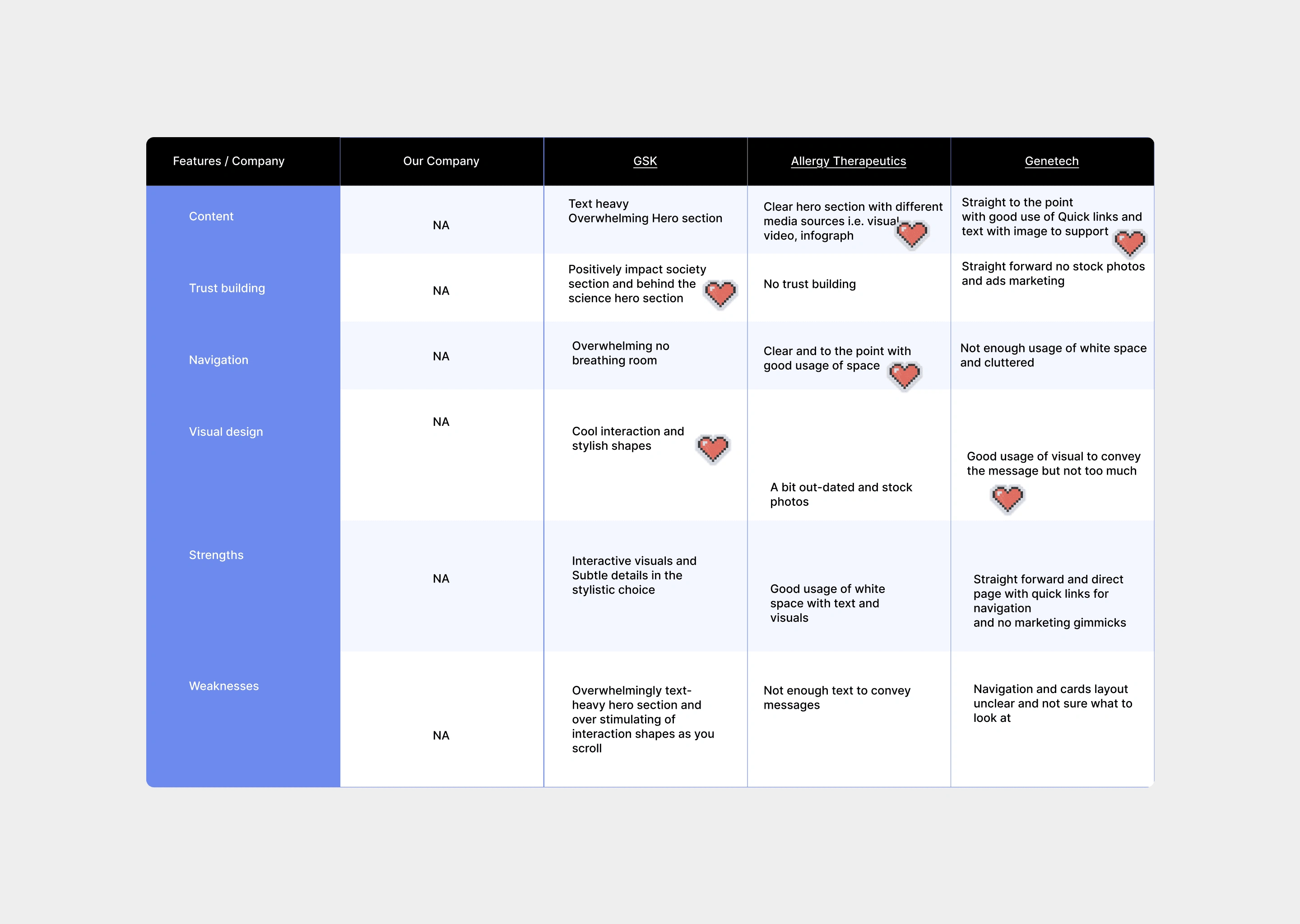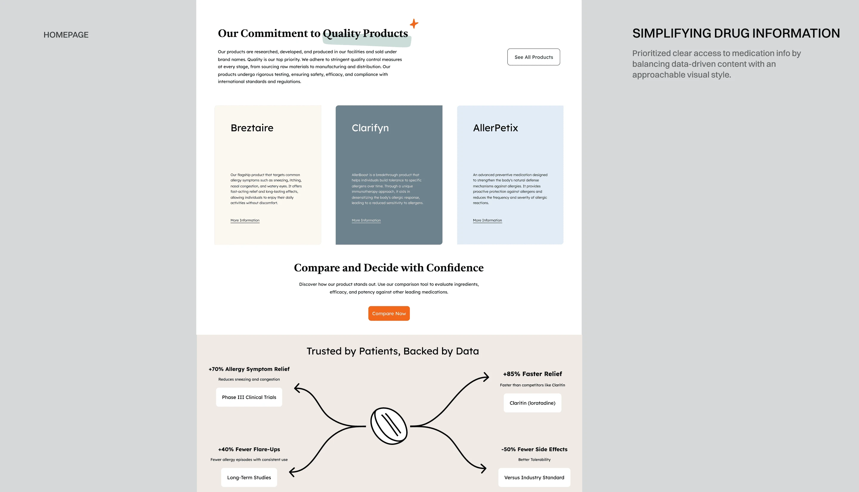 I reviewed GSK, Genentech, Pfizer, and Allergy Therapeutics to see how top pharma brands build trust online. The strongest designs paired structured, research-backed content with simple navigation to boost credibility. I also noticed that while competitors excel at presenting data, they often miss opportunities to empower patients with interactive tools and patient-friendly language.