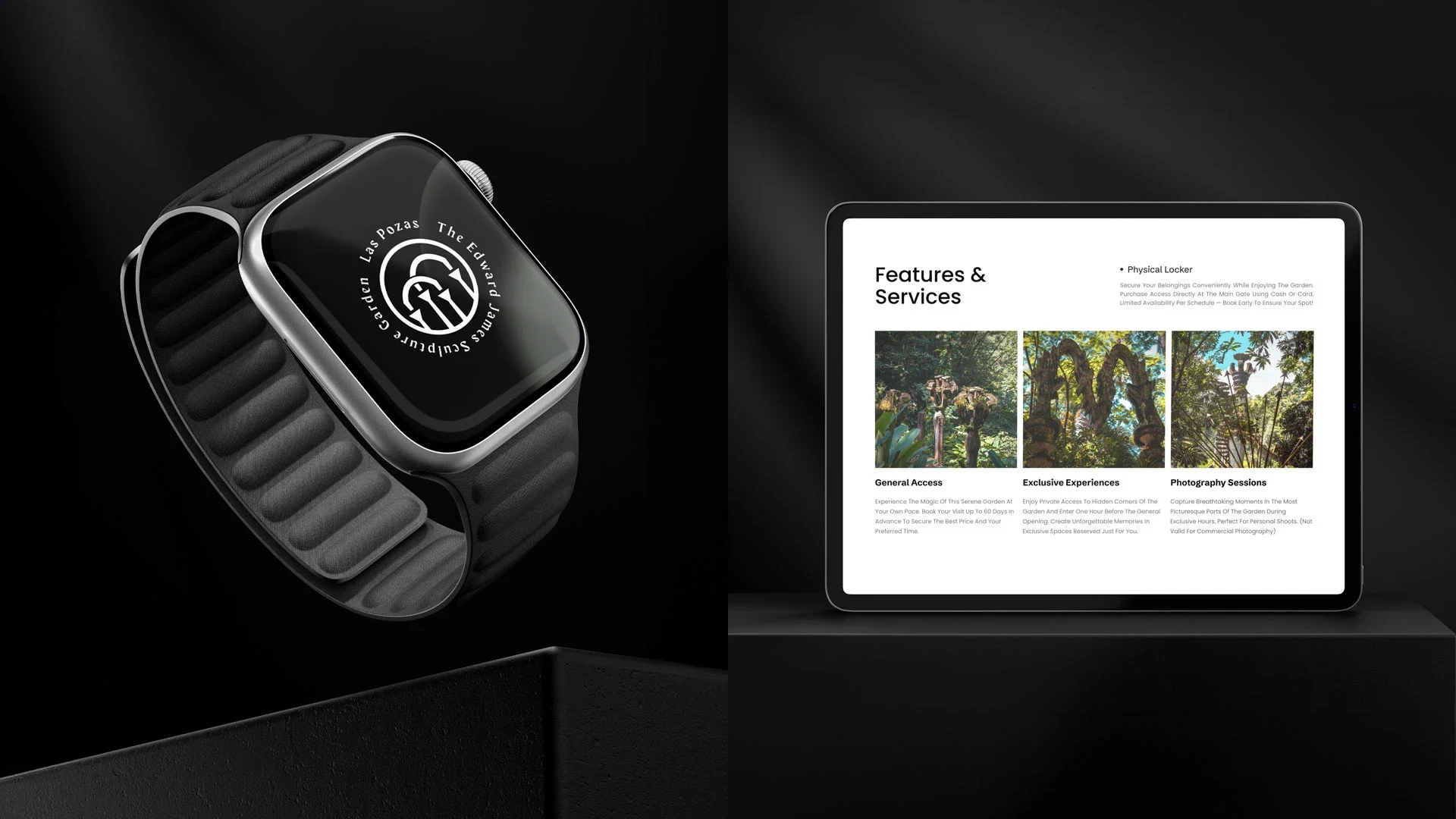 We began by studying the garden’s unique architectural forms, botanical diversity, and mystical atmosphere. These elements informed a visual language built around organic geometry, soft gradients, and a natural yet surreal color palette. The identity bridges opposites — structure and wilderness, order and imagination — to echo the emotional duality of the place.