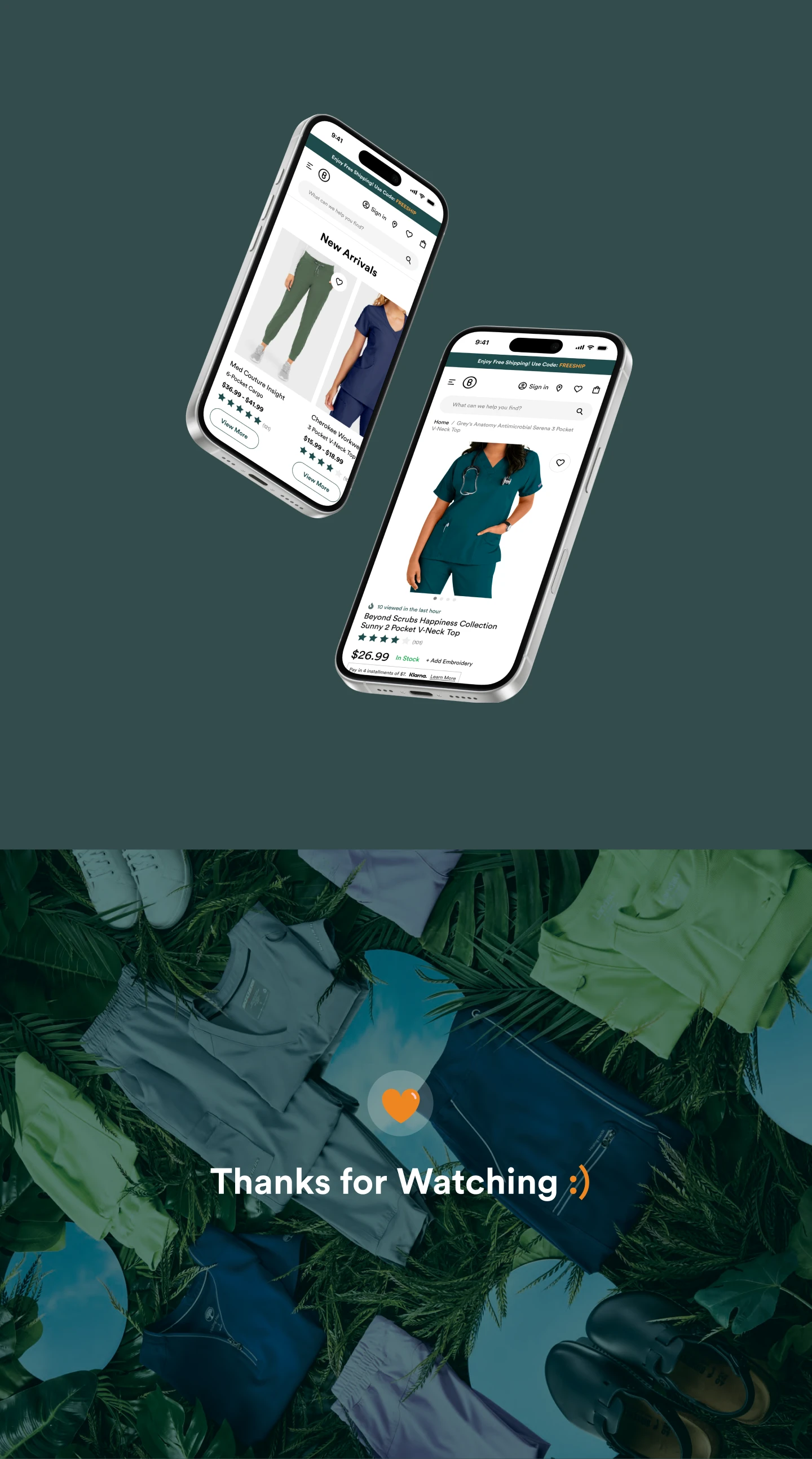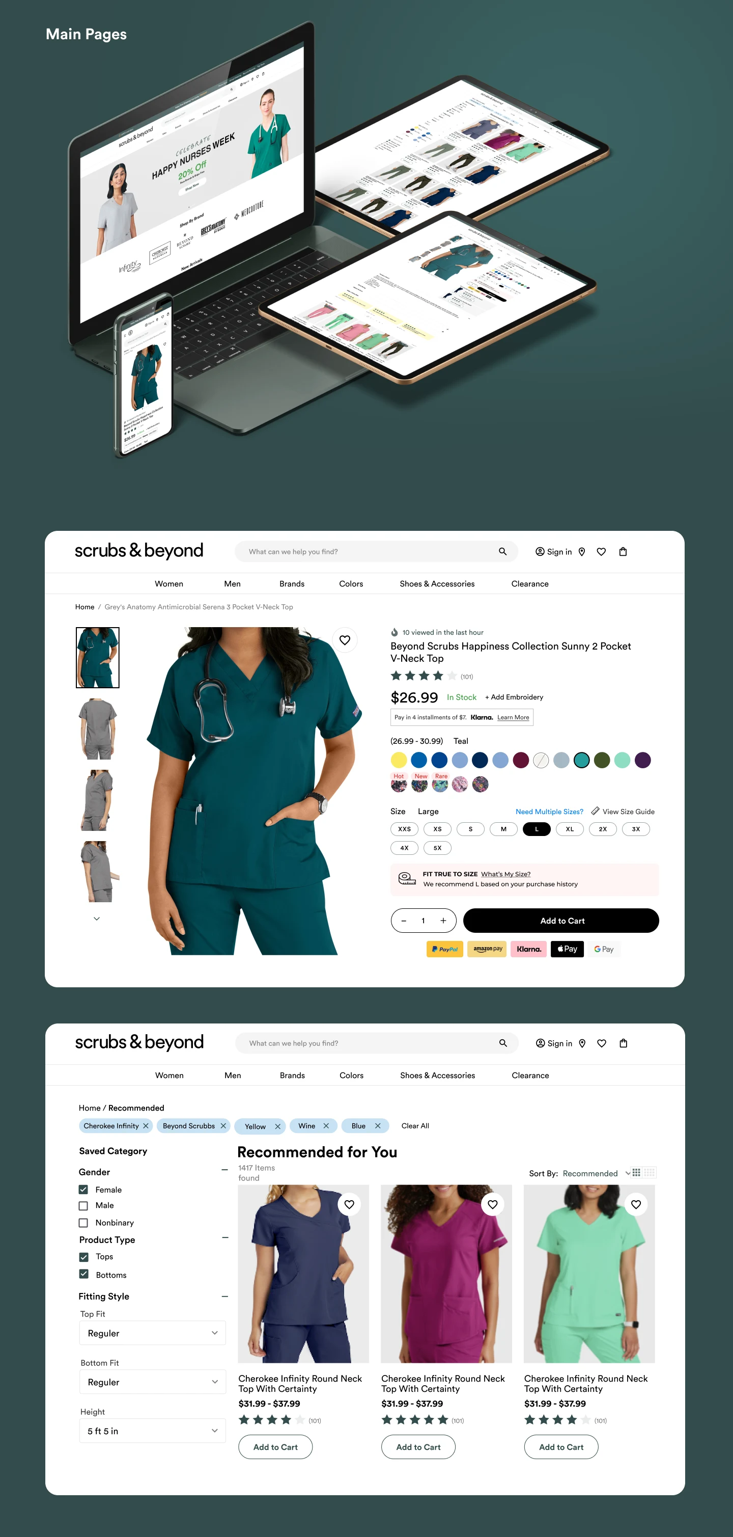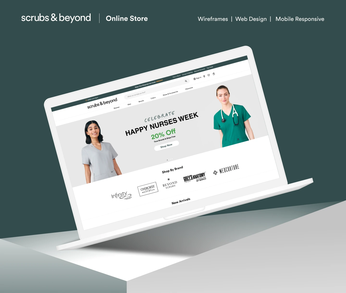 Design for S&B, a leading e-commerce store for nursing scrubs.