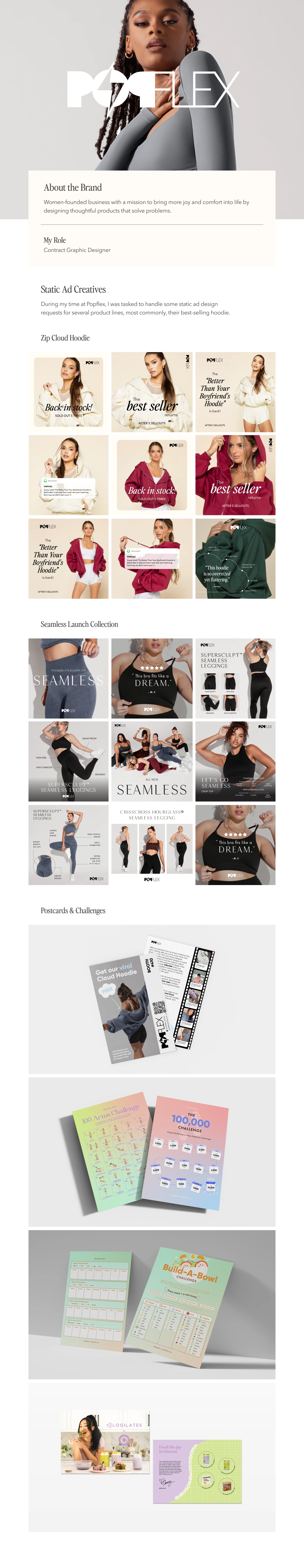 Compilation of Graphic Design work including Static Ad Creatives for Popflex
