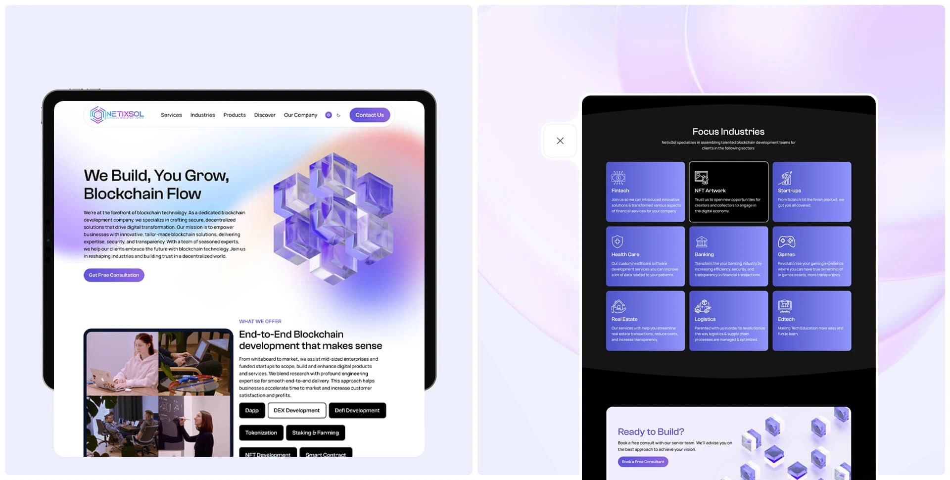 A futuristic Web3 agency design blending clean UI/UX, 3D visuals, and motion graphics to create a bold, modern identity for blockchain-based platforms.
