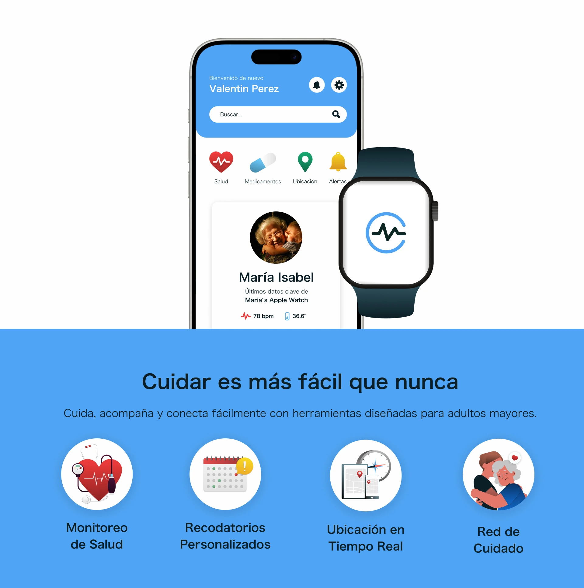 No se trata solo de una aplicación, sino de una red de apoyo donde cada usuario cumple un rol fundamental. La plataforma facilita la comunicación, el monitoreo y la participación activa en el bienestar del adulto mayor, integrando tecnología con empatía.