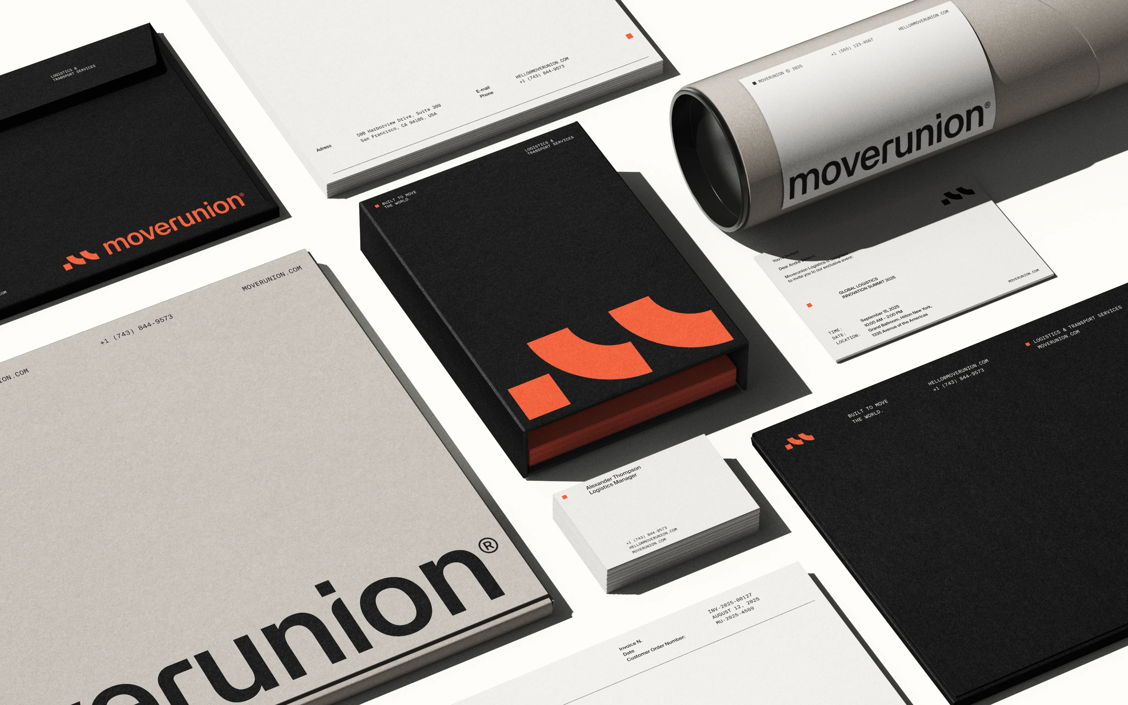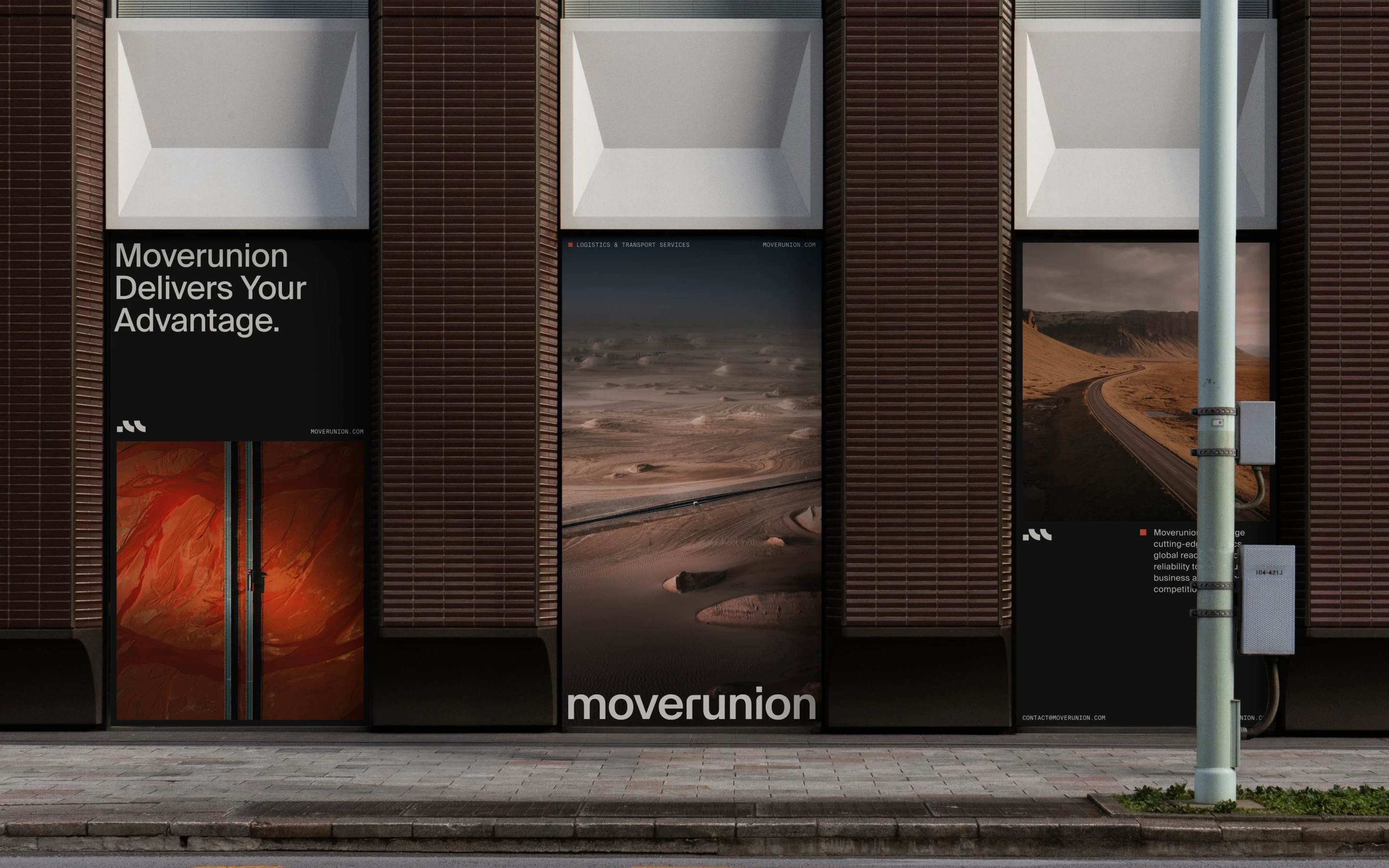 A company specializing in logistics solutions, Moverunion offers comprehensive transportation and delivery services worldwide. The logo, featuring a dynamic le…