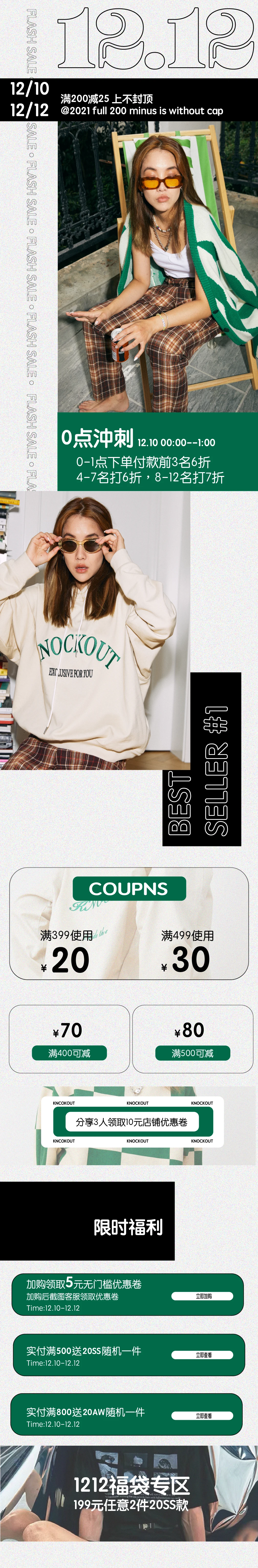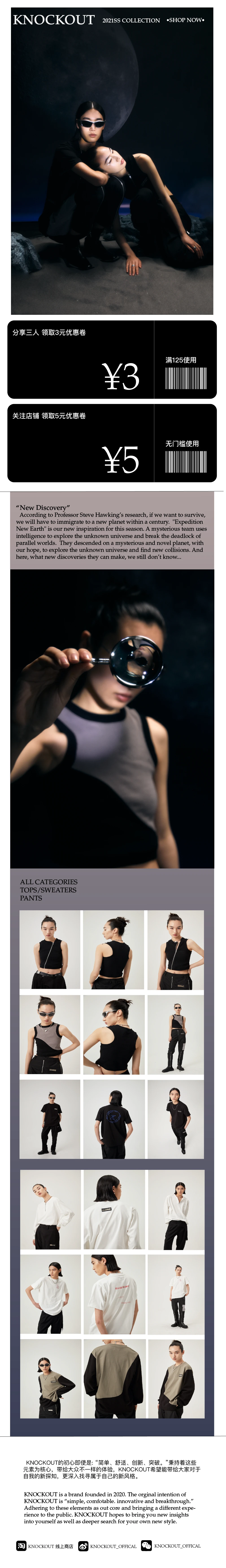 Designing web page format for the fashion brand Knockout. The whole design shows the time of brand marketing activities, also including store coupon information and clothing display.