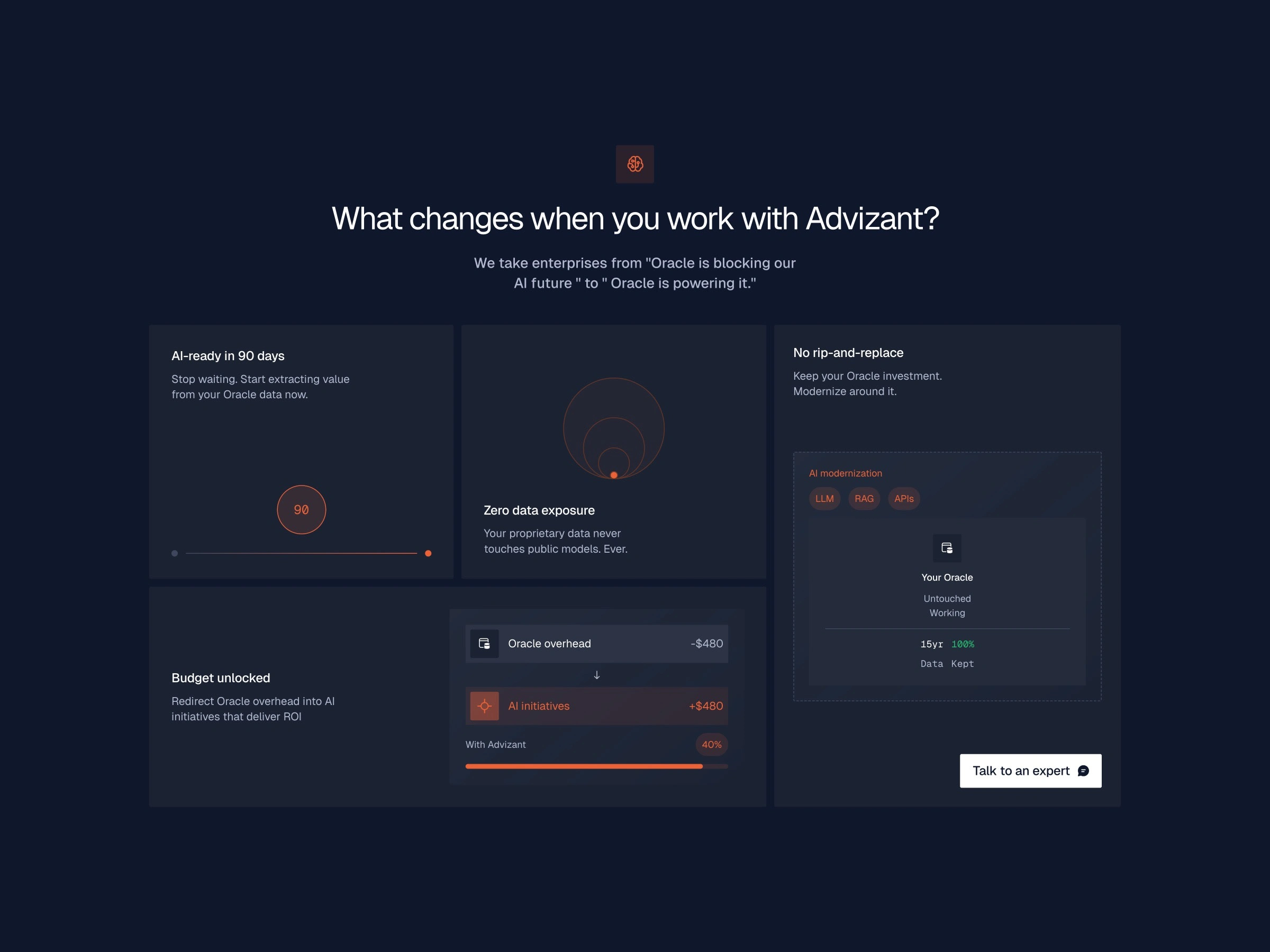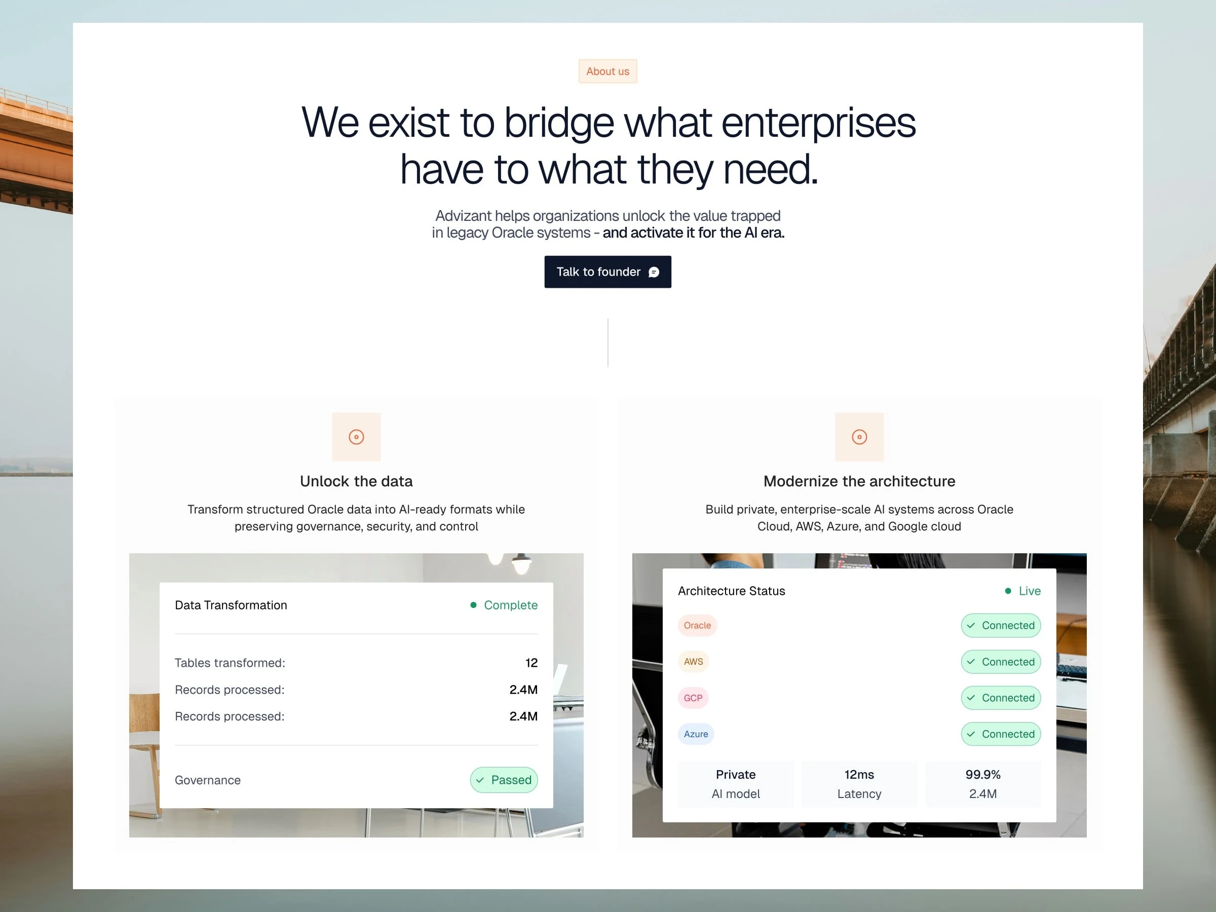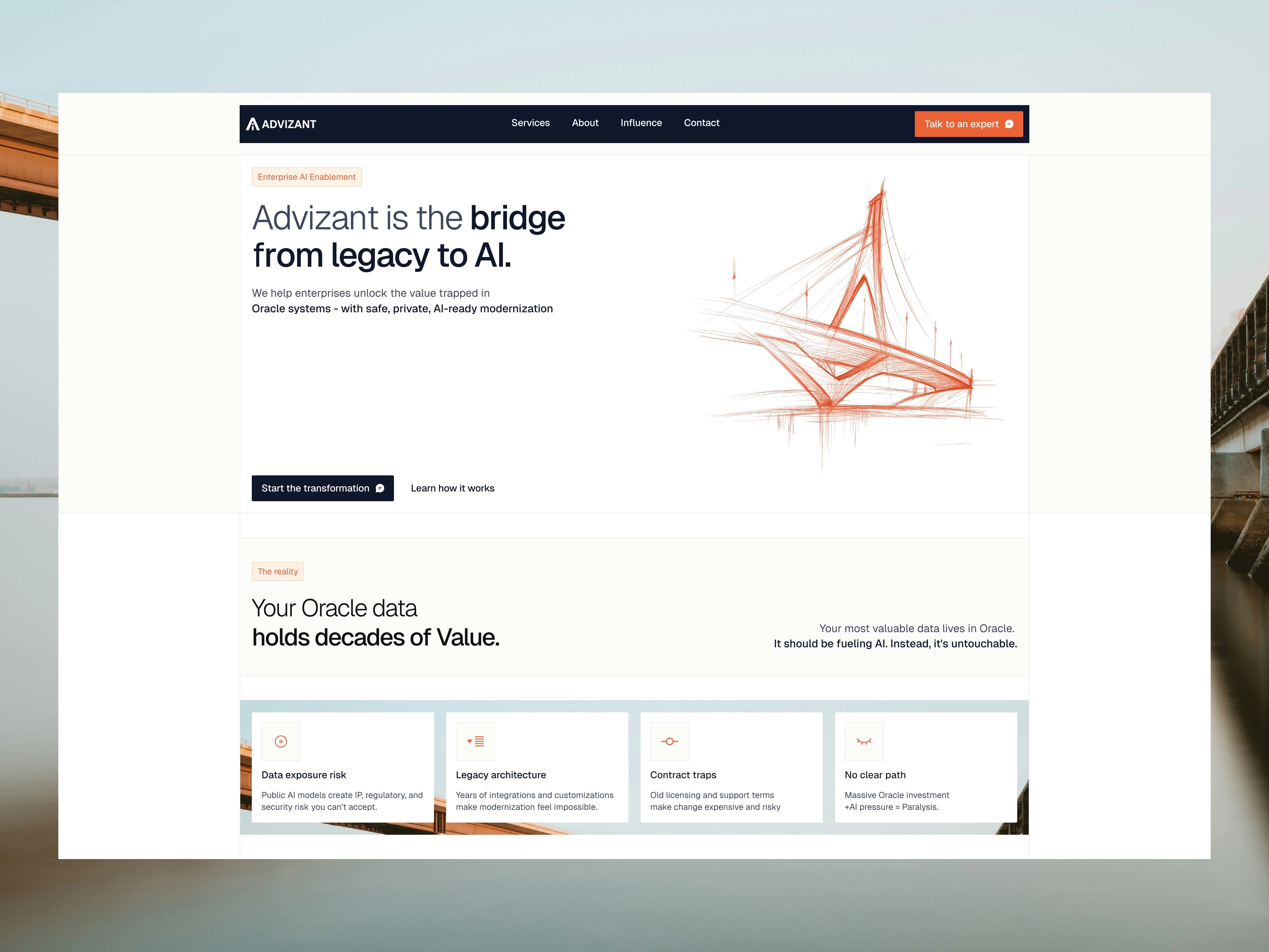 In this project, we designed and developed a new marketing website for Advizant ai and help position as leader in the Oracle legacy services space