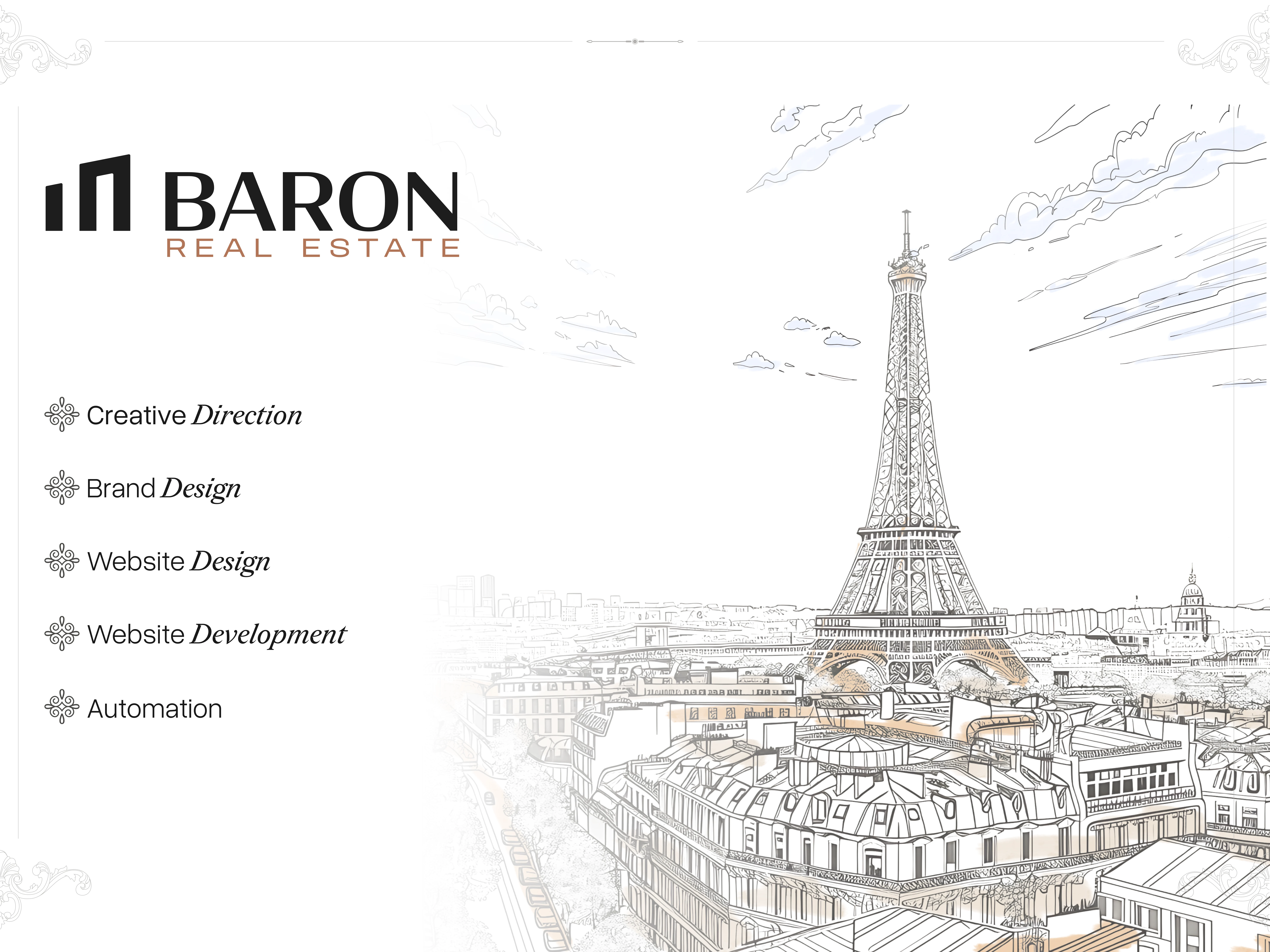 Led the complete digital creation of Baron Real Estate from brand identity and UX/UI design to a fully automated Webflow CMS synced with live property listings.