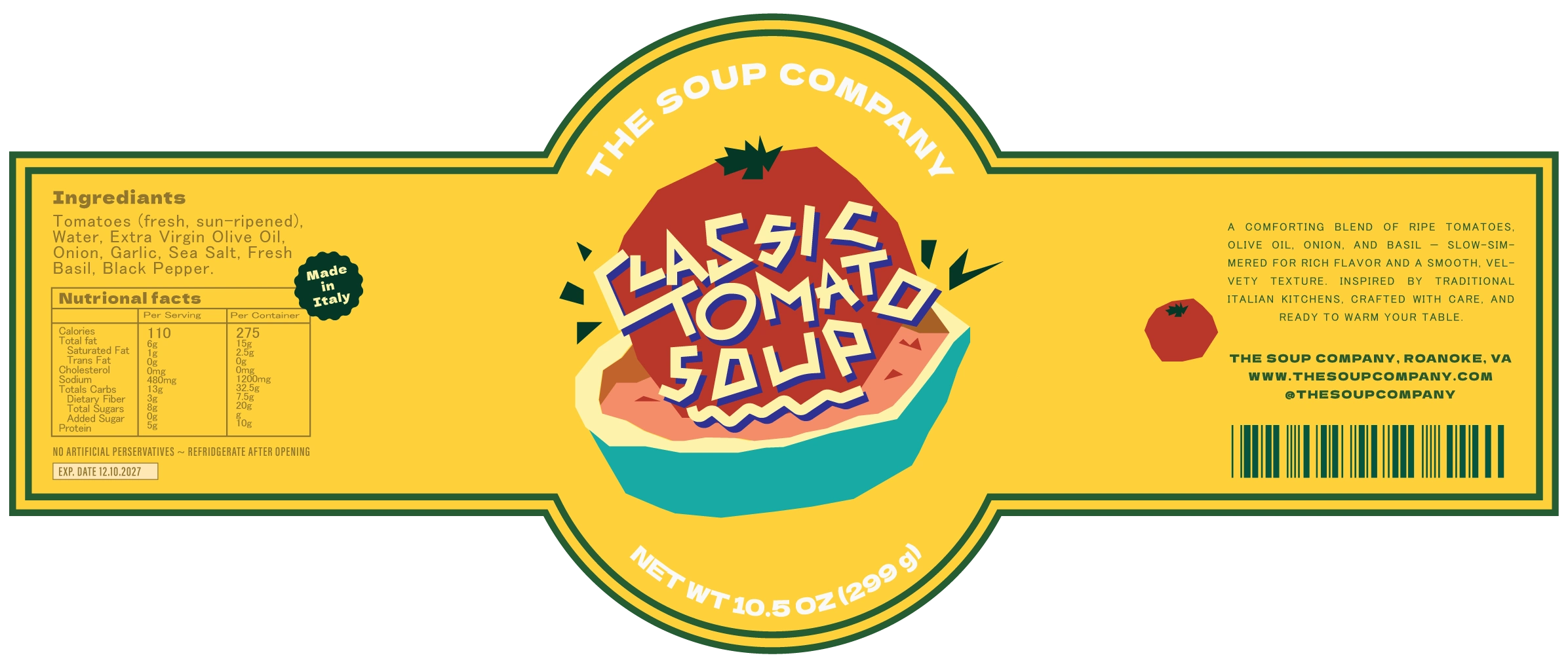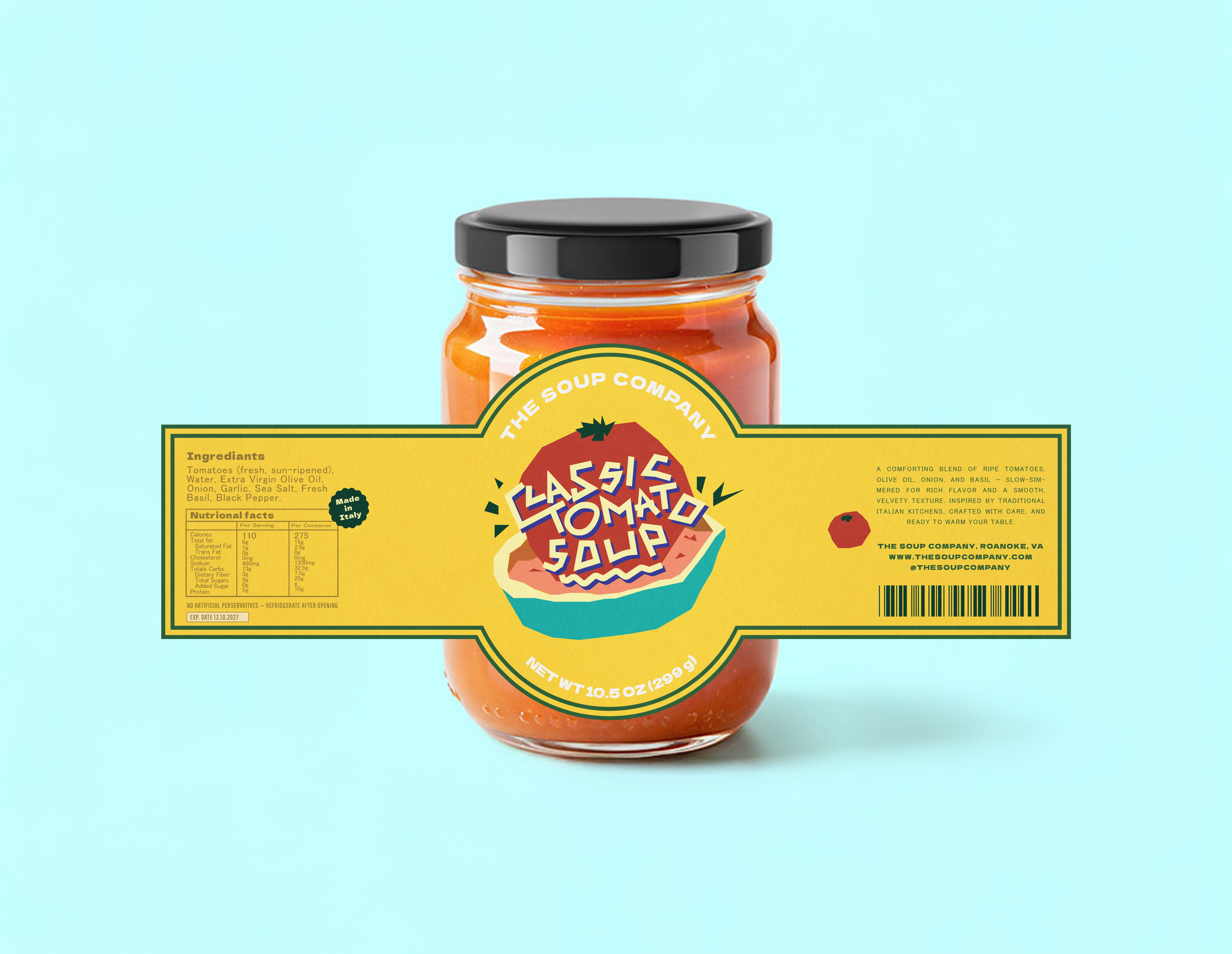 This packaging was designed to bring a fresh, modern twist to authentic Italian tomato soup. While the food itself evokes comfort and simplicity, the design takes a more vibrant and playful approach — using bright colors, abstract shapes, and expressive type to capture attention and reflect the lively character of Italian culture.