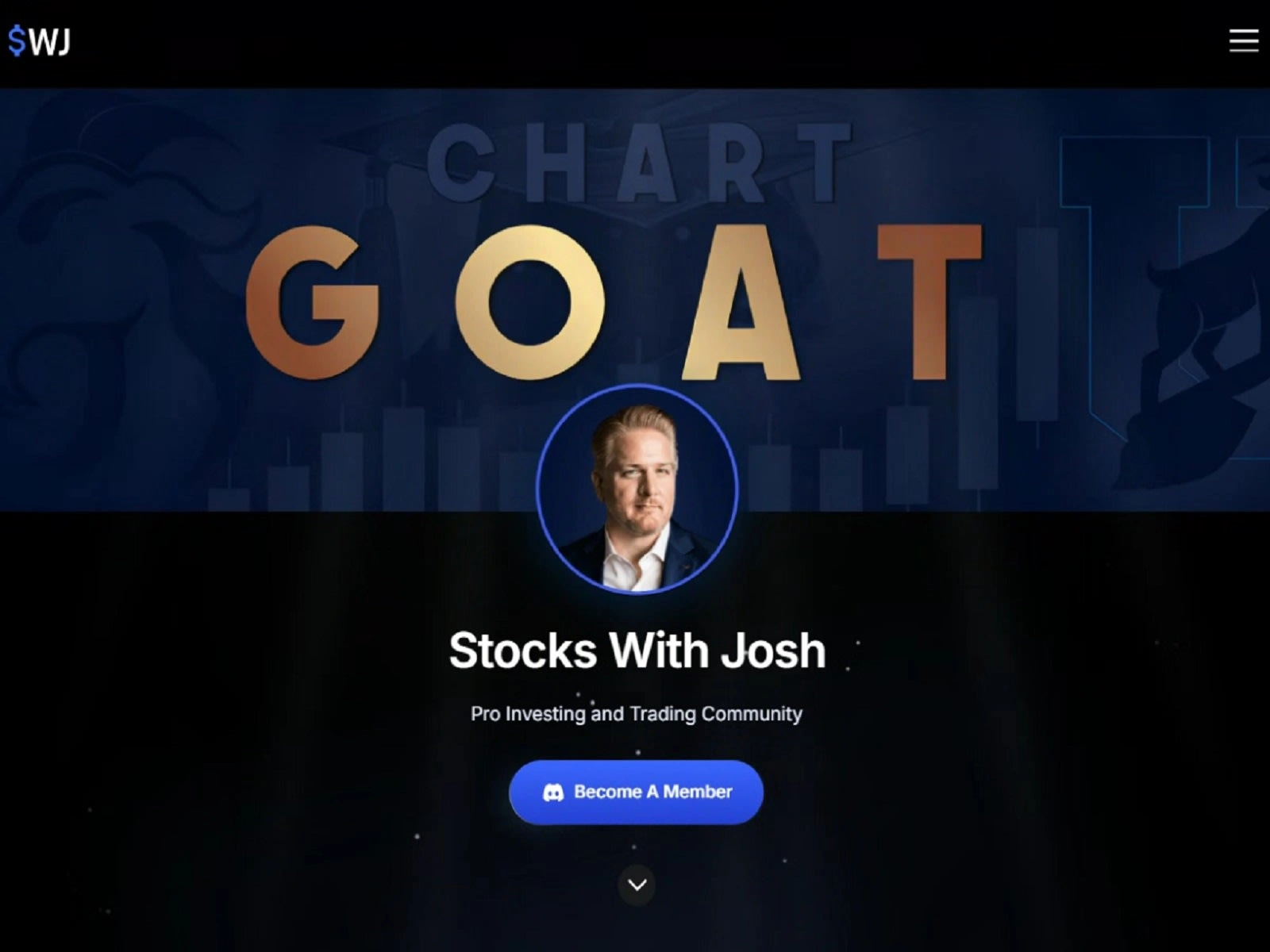 Stocks With Josh (also known as "Chart GOAT University") is a paid membershkip-based trading and investing community run by Josh, who goes by the nickname "chart.GOAT" (Greatest Of All Time). The community operates primarily through Discord and focuses on stock and cryptocurrency trading education.