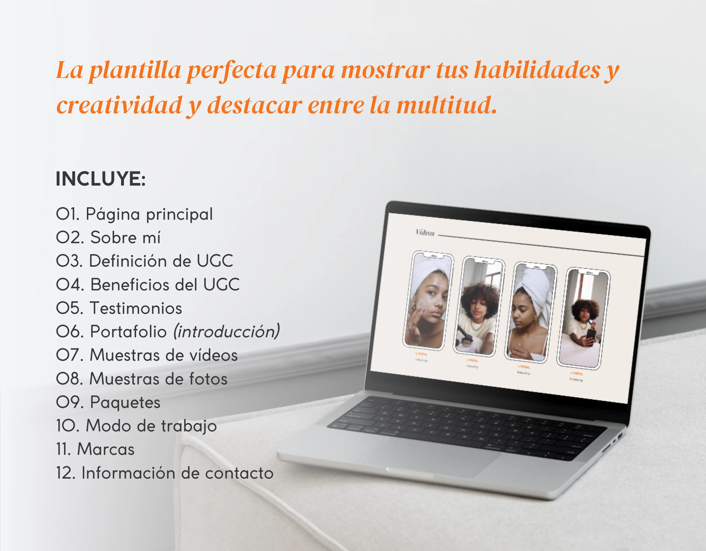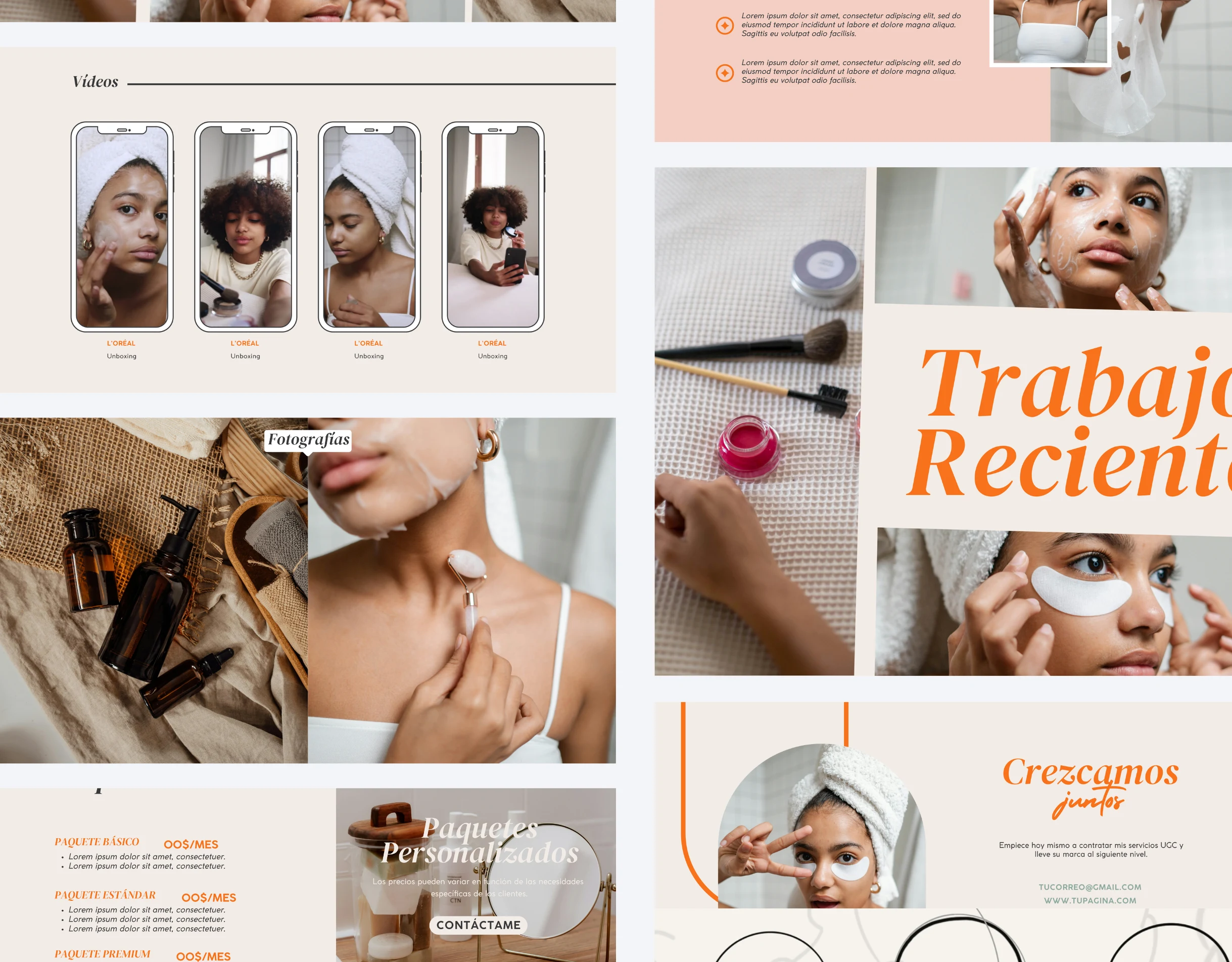 Creation of a portfolio template for UGC content creators, fully editable in Canva.