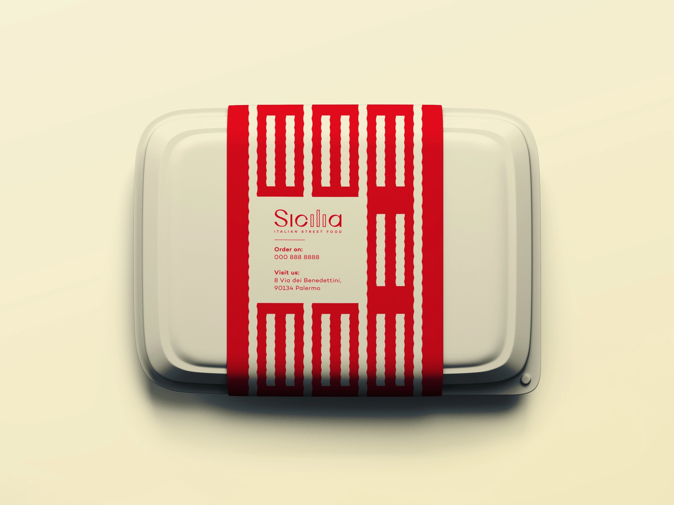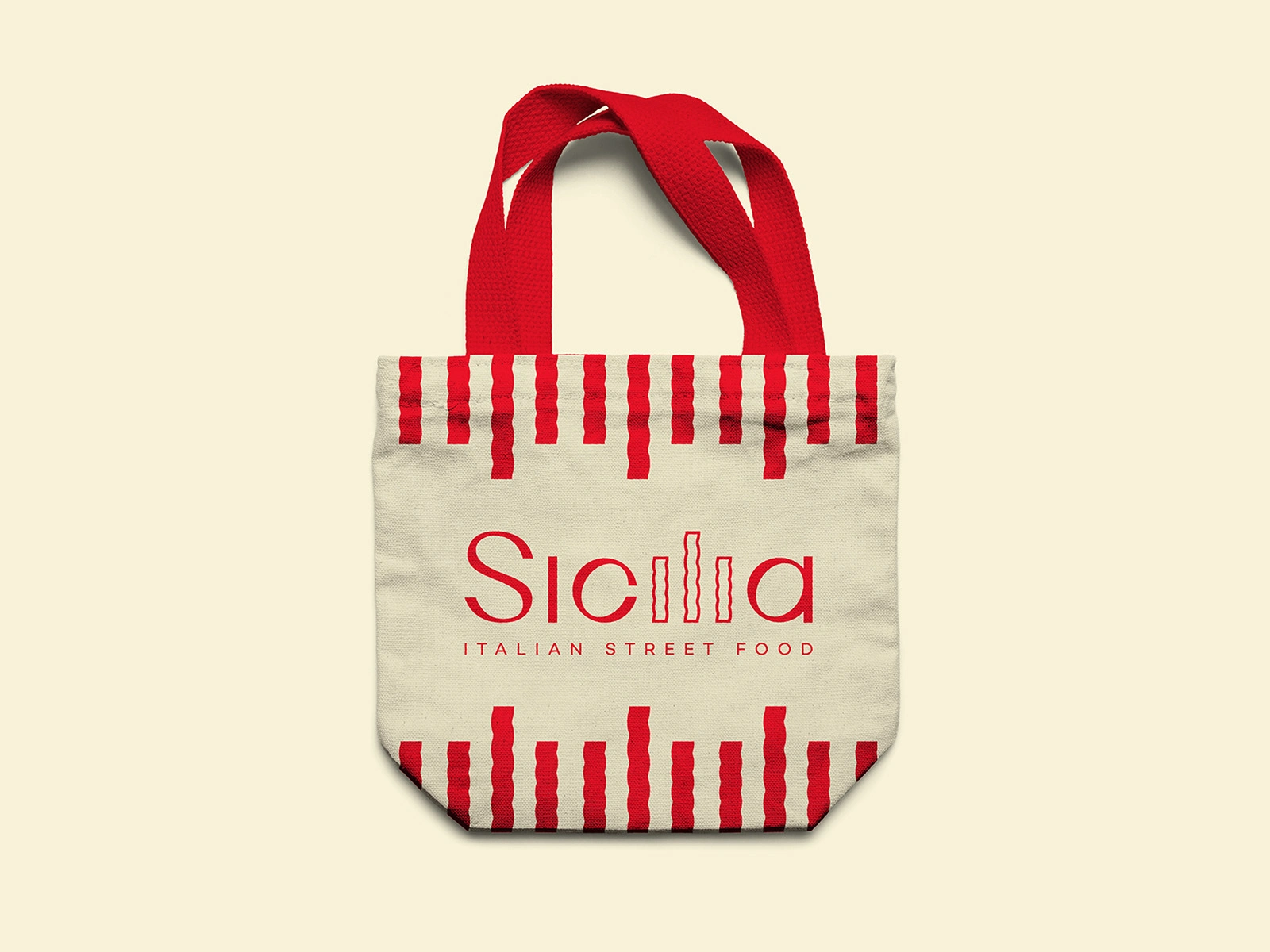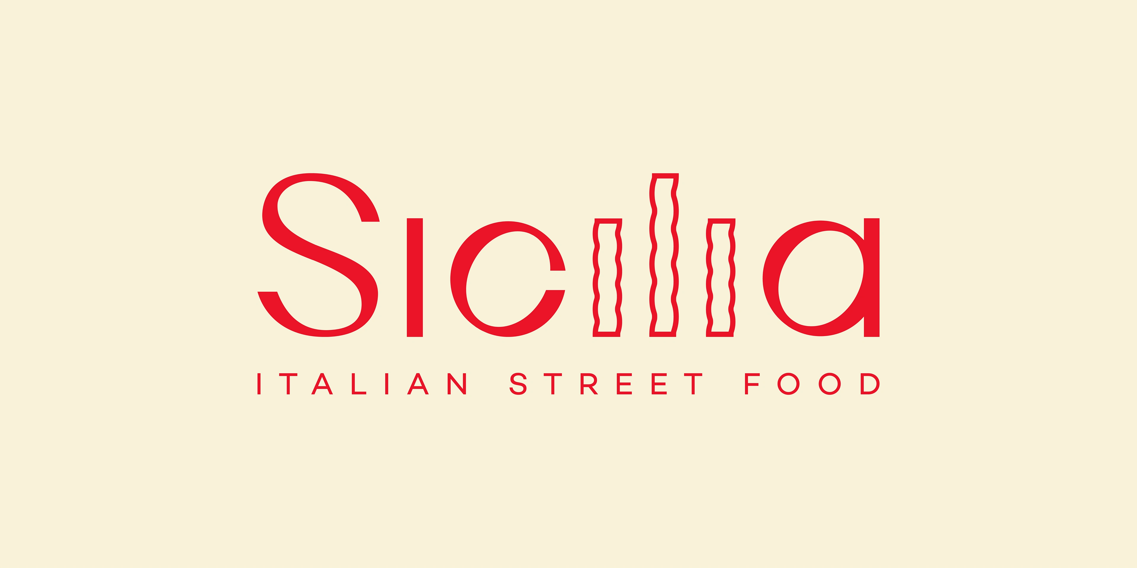 Pasta shape replaced three letters in logotype. Filled letters are visual graphic element used for branding.
