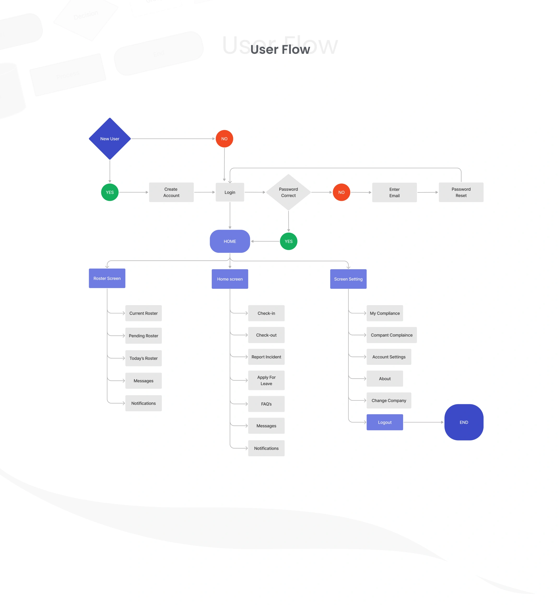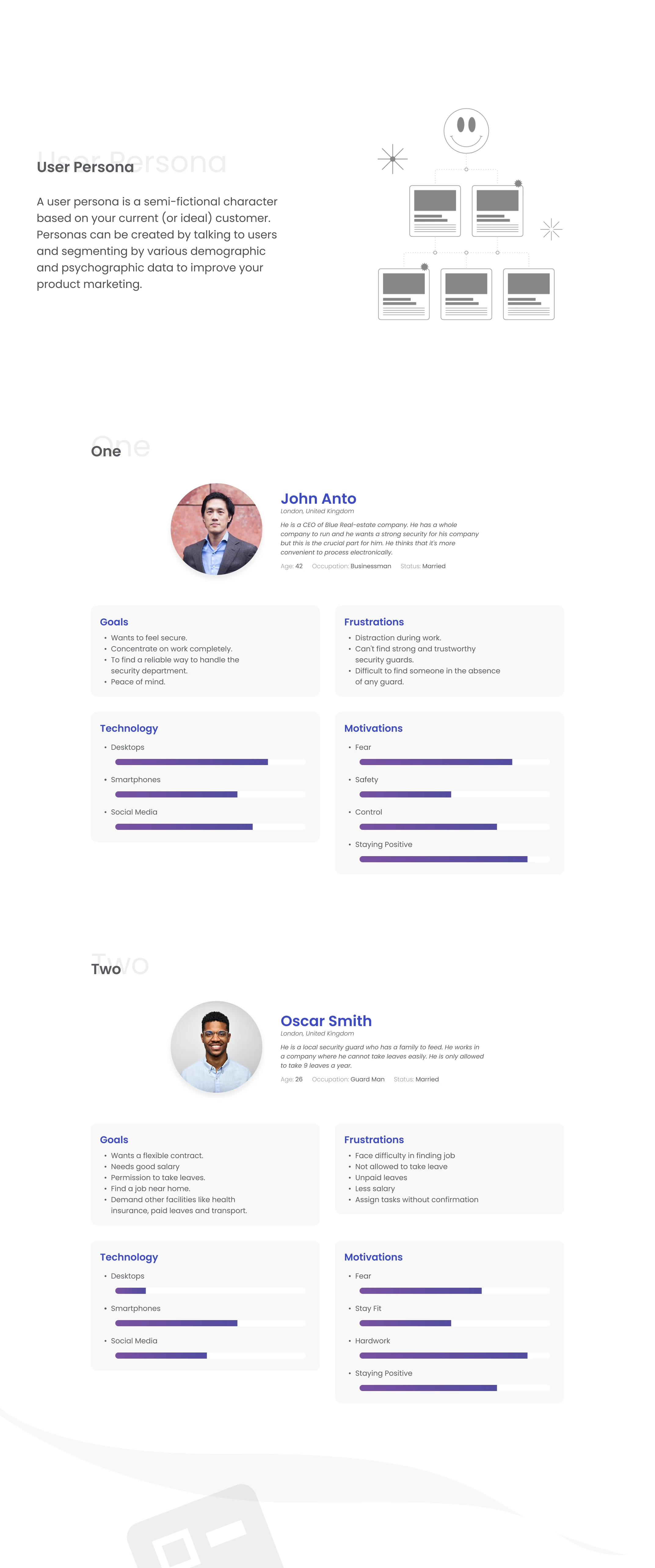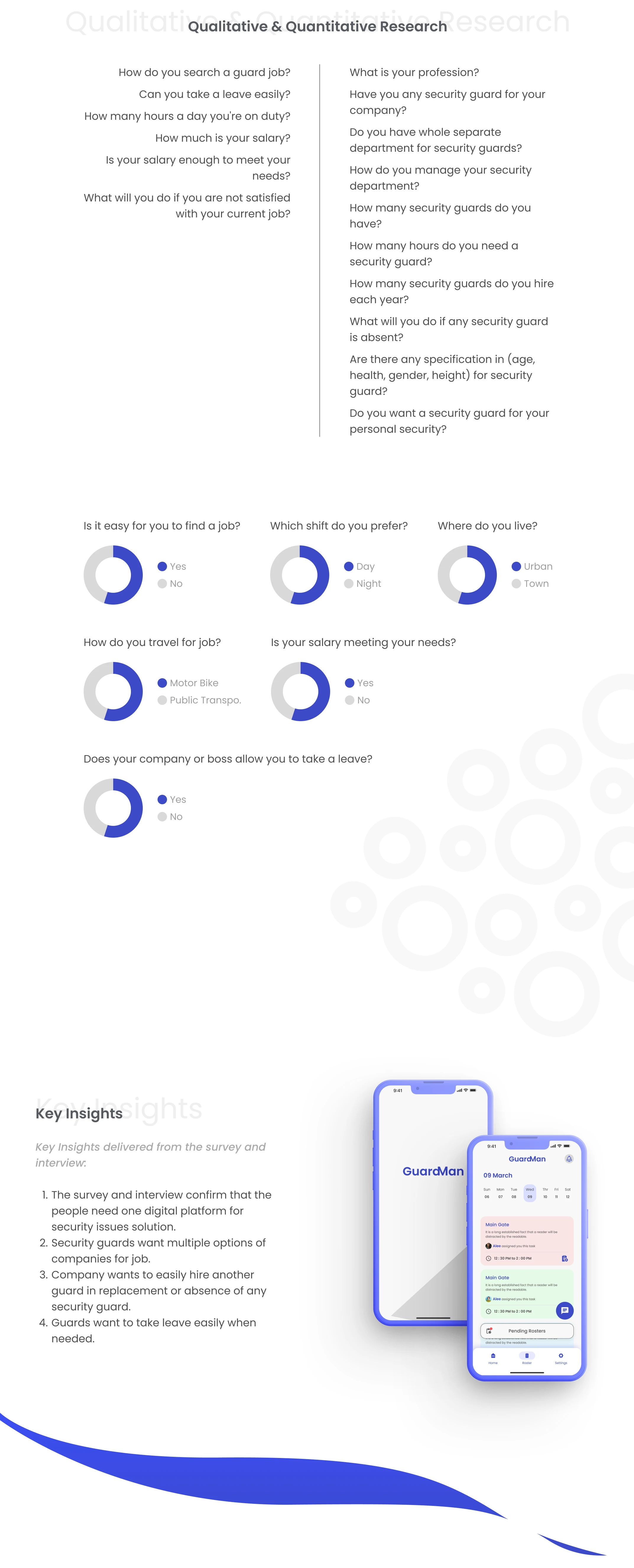 GuardMan provides security services. Guards register via app, while admins manage accounts, assign tasks, and handle reports from the company side.