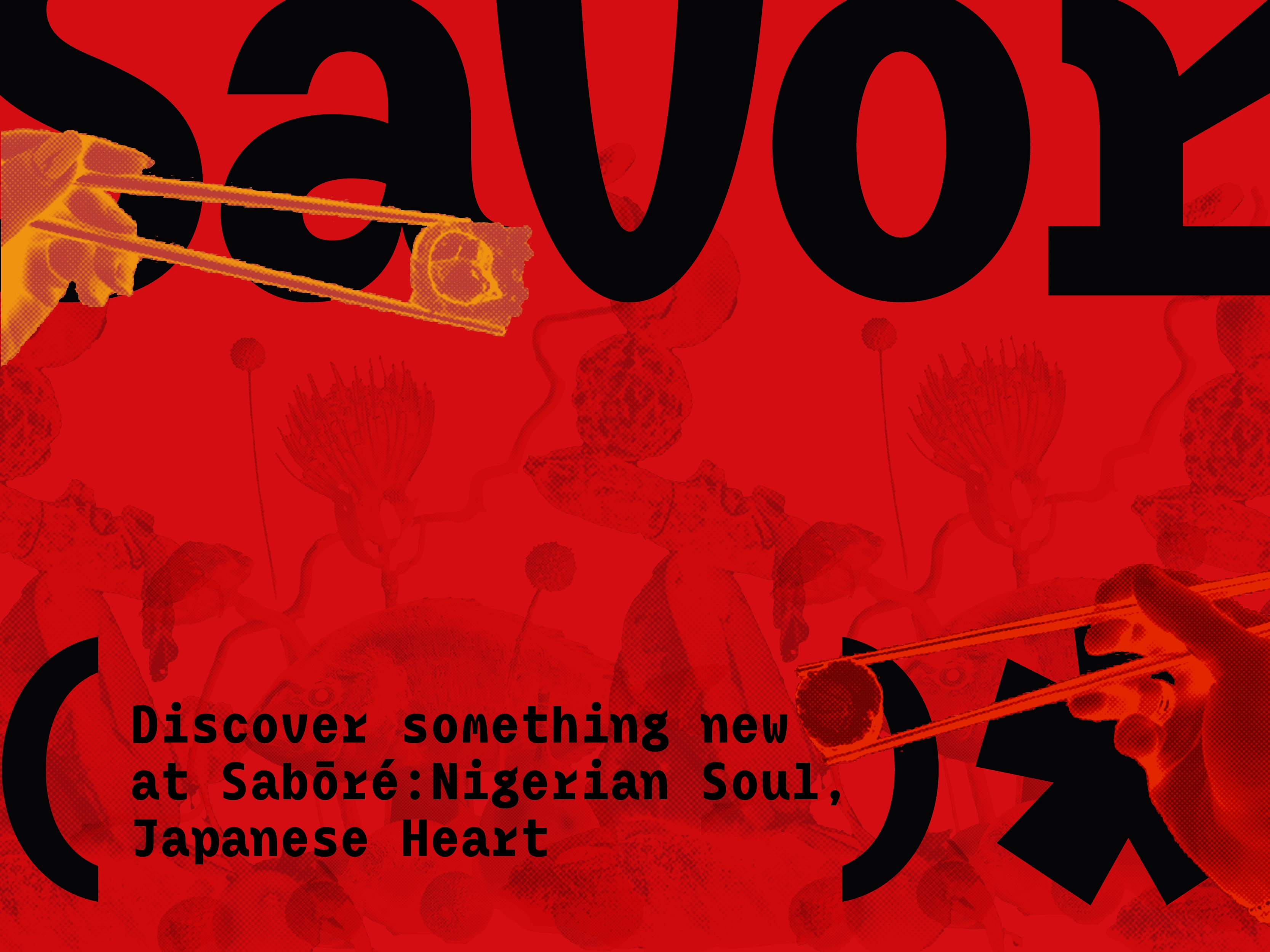 The Sabōré identity combines typography, motion, and bold colors to bridge Nigerian and Japanese cuisines. Since the two food cultures are so different, the brand had to honor both without letting either take over.