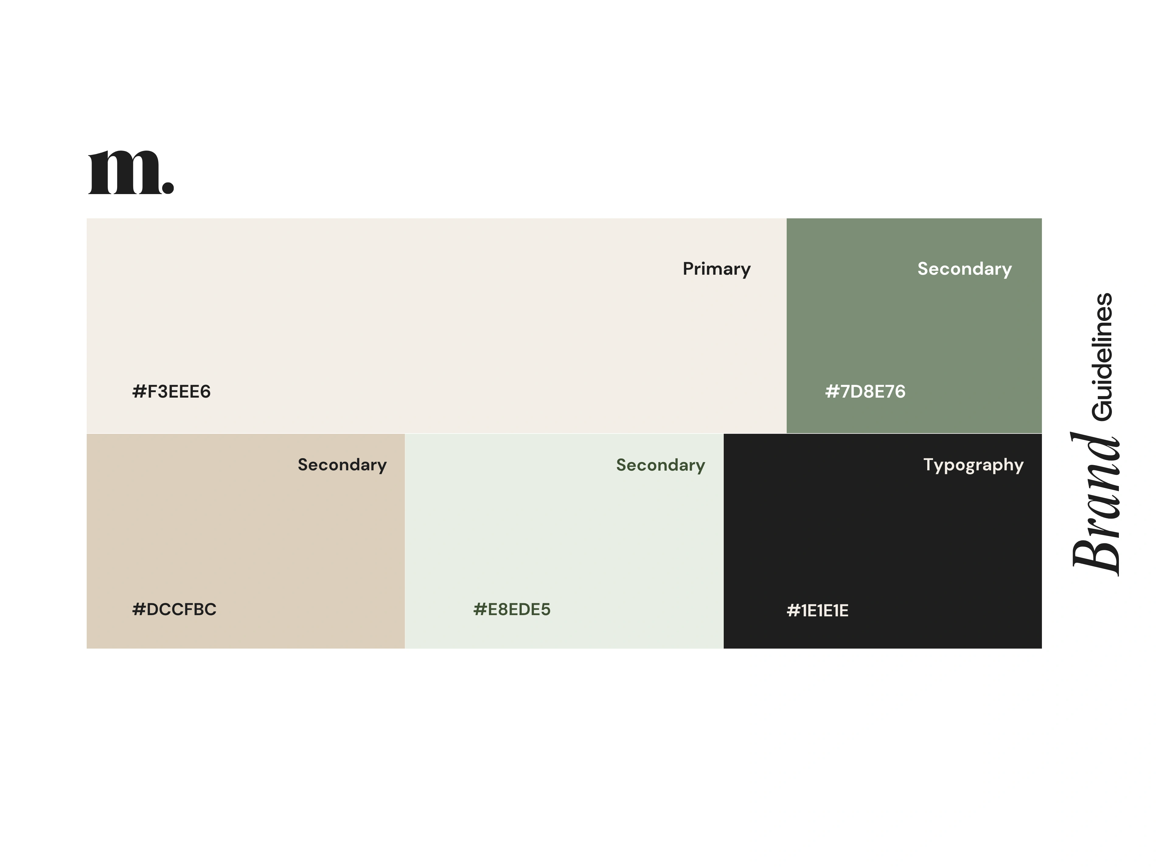 The finalized palette centers around soft neutrals, muted olive, warm sand, and charcoal, creating a calm, natural feel. Each tone is chosen to work well across packaging, photoshoots, and digital layouts.