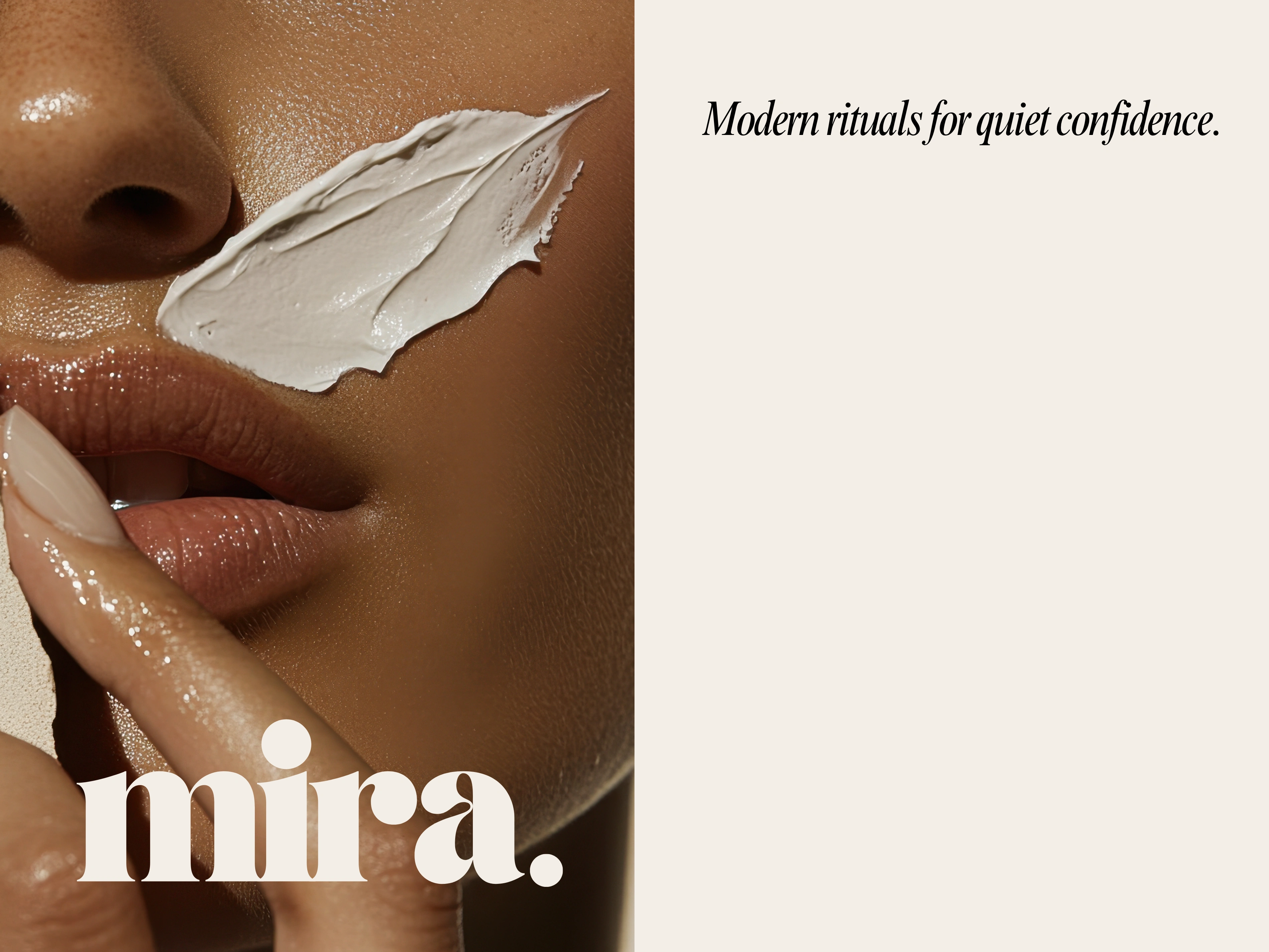 MIRA is a modern skincare brand designed around clarity, confidence, and minimalism. I created a complete visual identity system including logo design, color palette, editorial imagery, and a full brand deck.