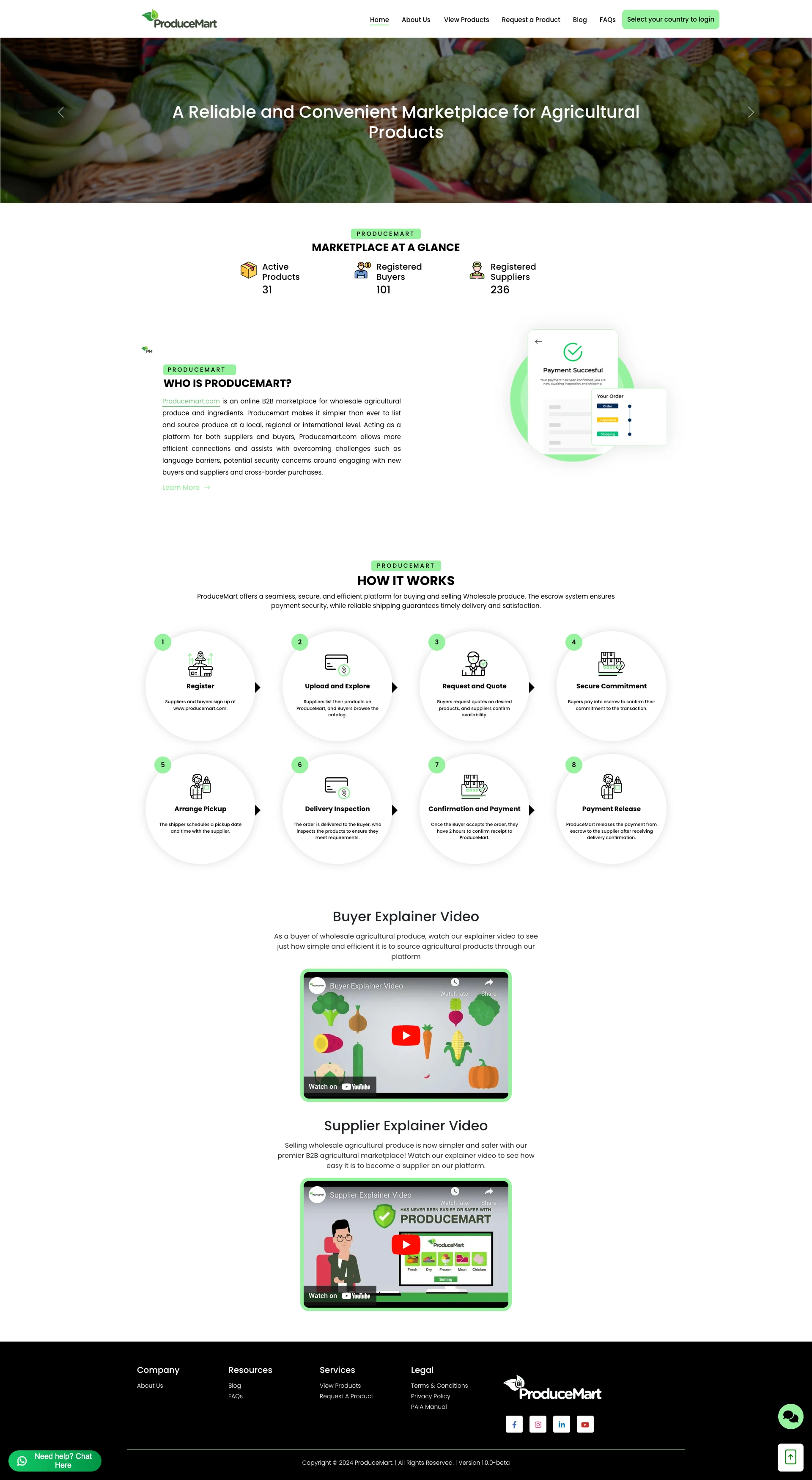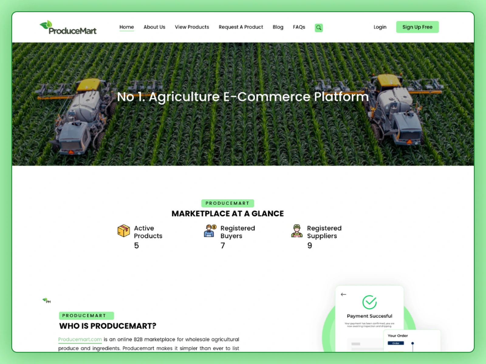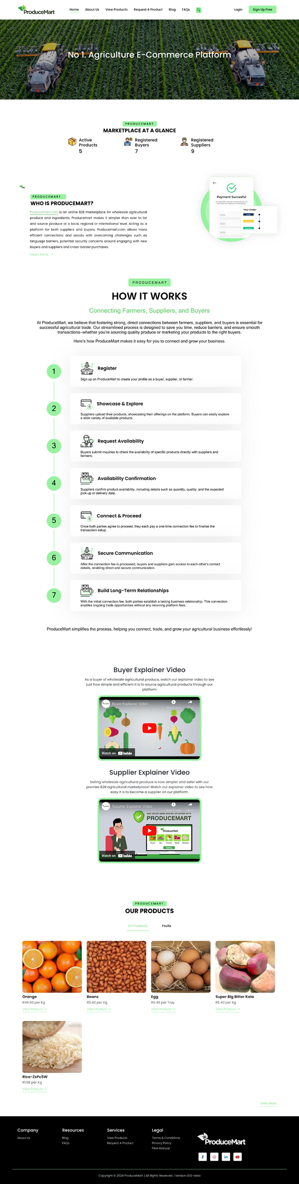 Redesigned Produce Mart farming site with improved UX, separate seller/buyer flows, and full mobile page layouts.