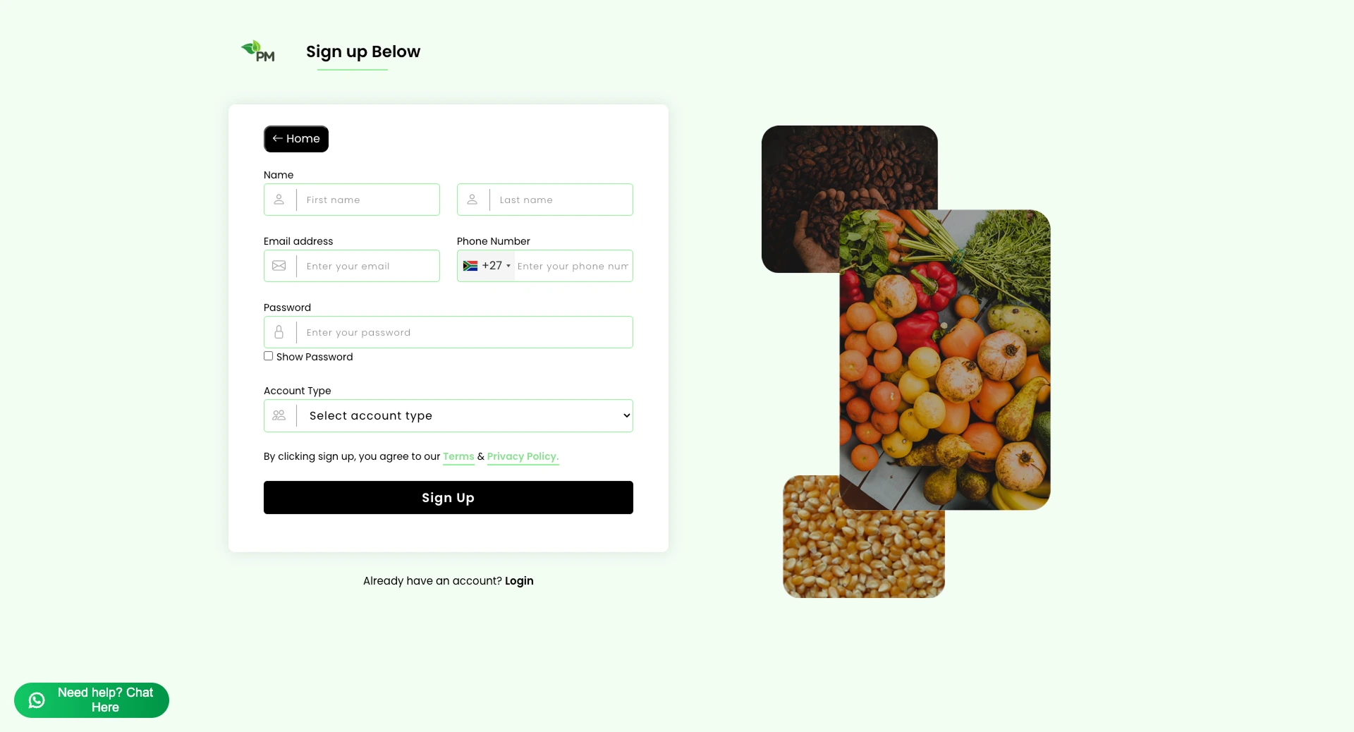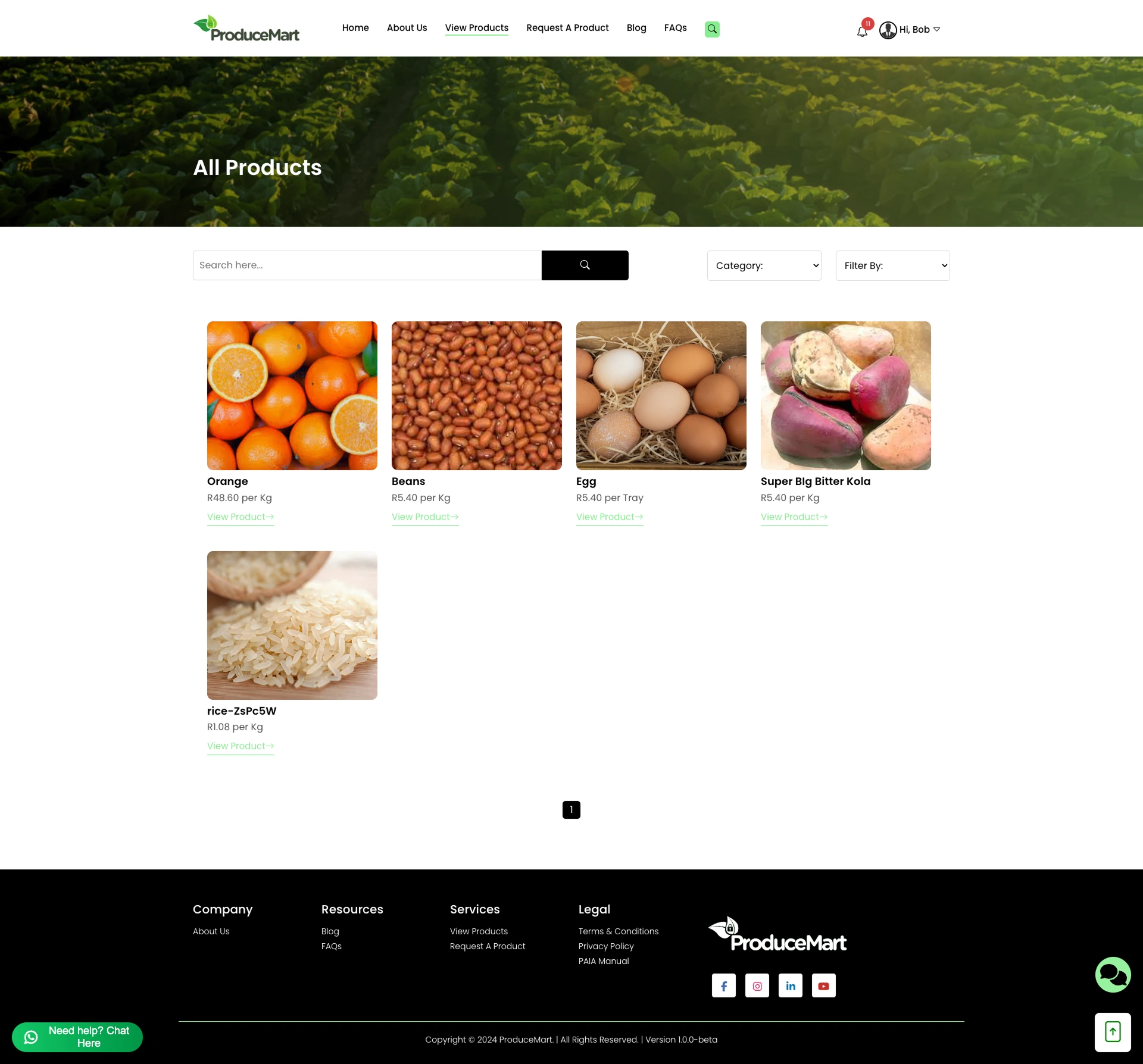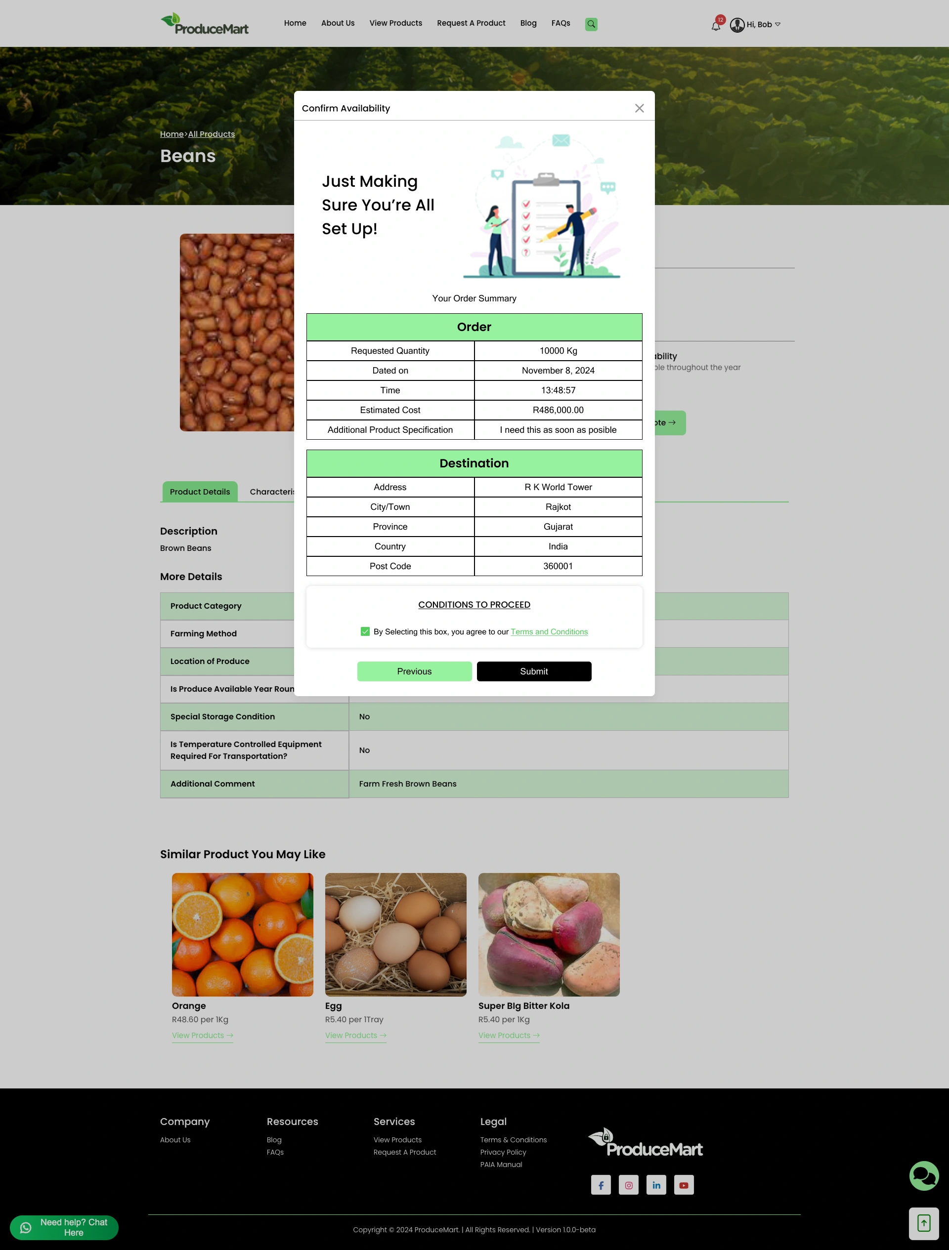 Redesigned Produce Mart farming site with improved UX, separate seller/buyer flows, and full mobile page layouts.