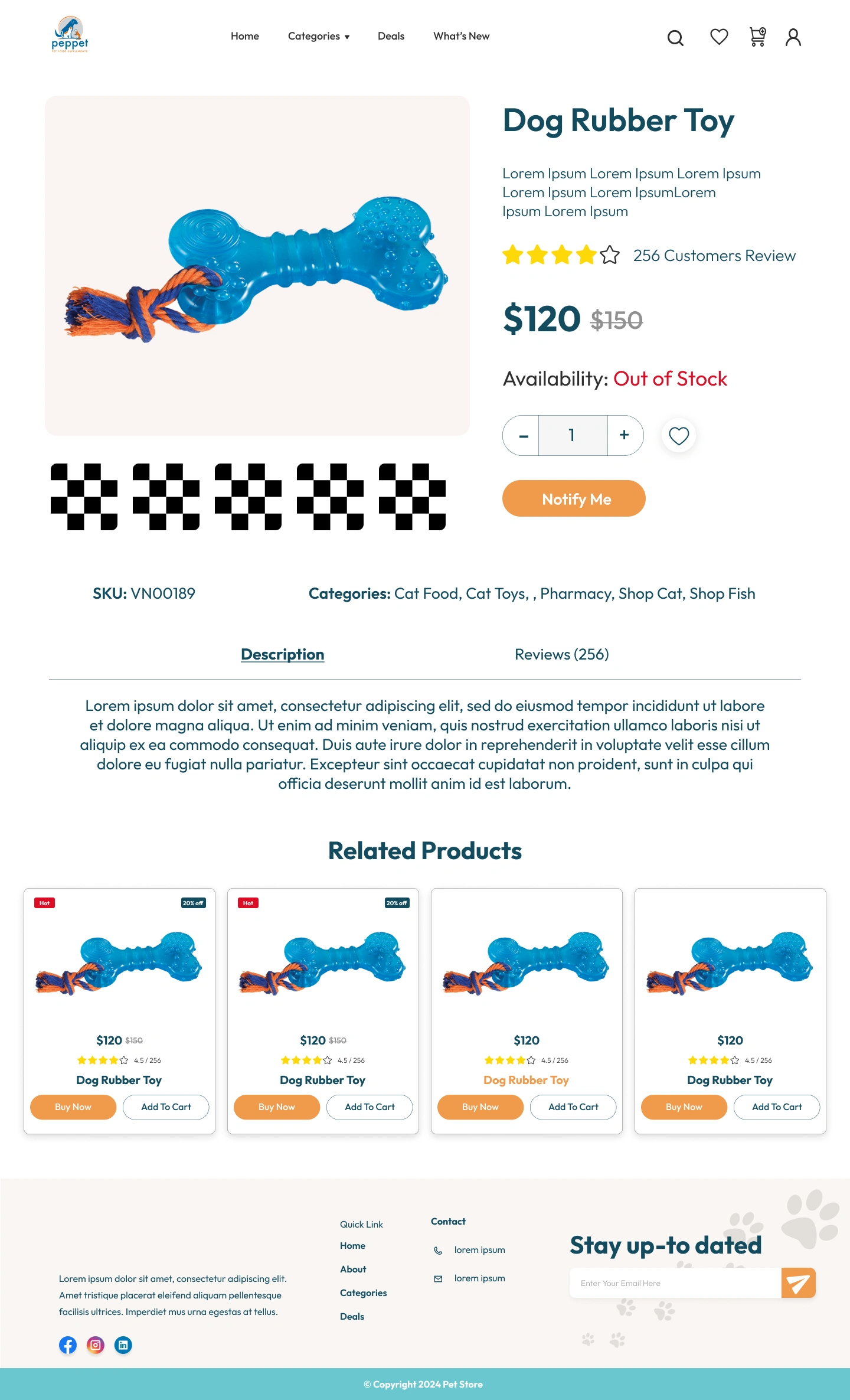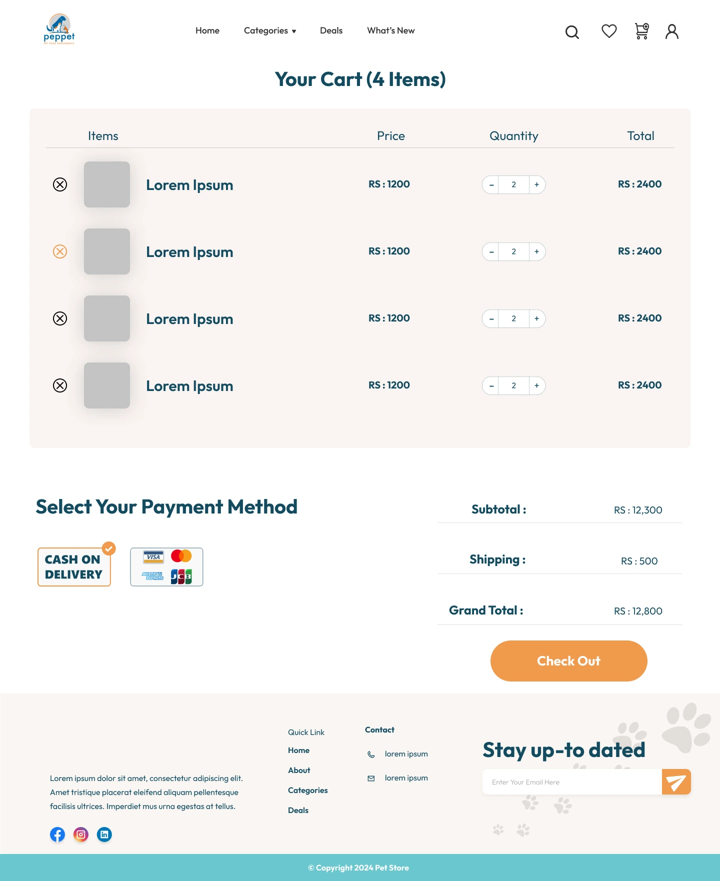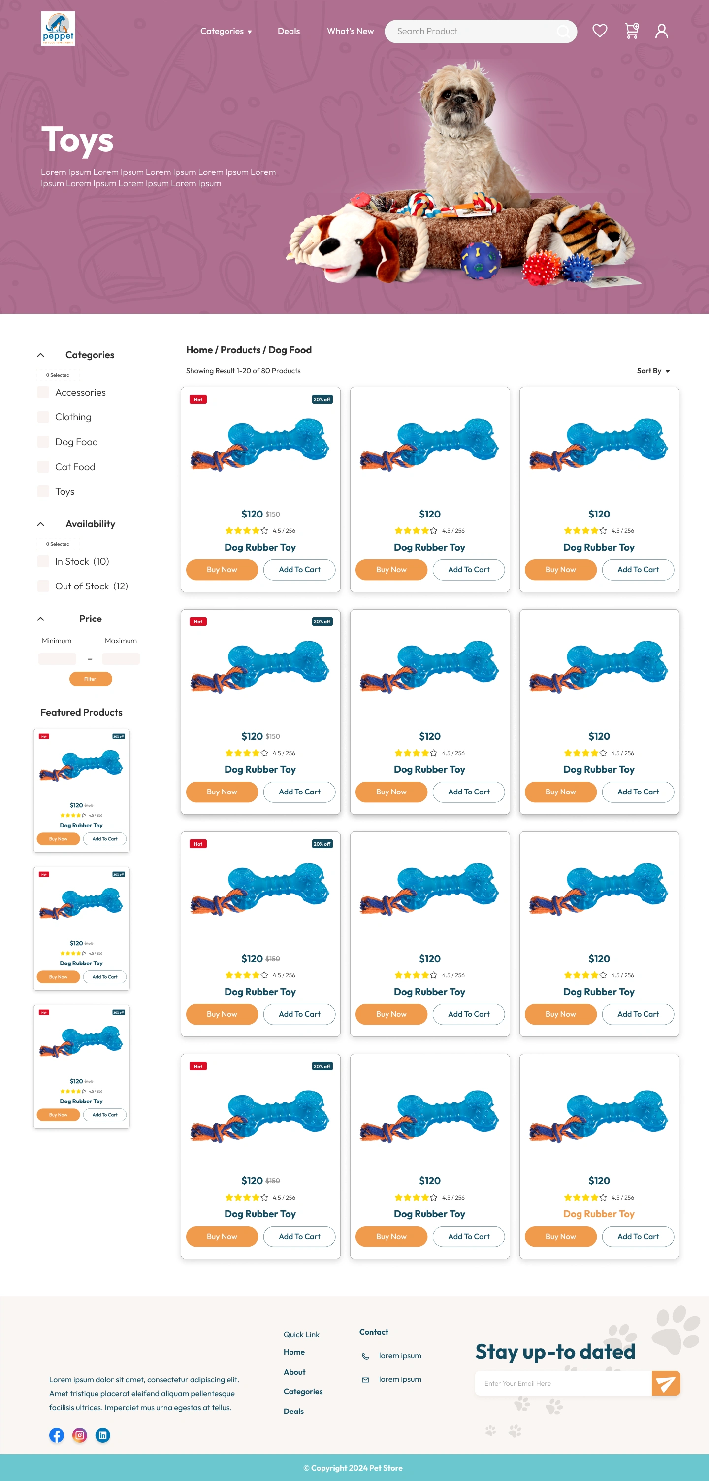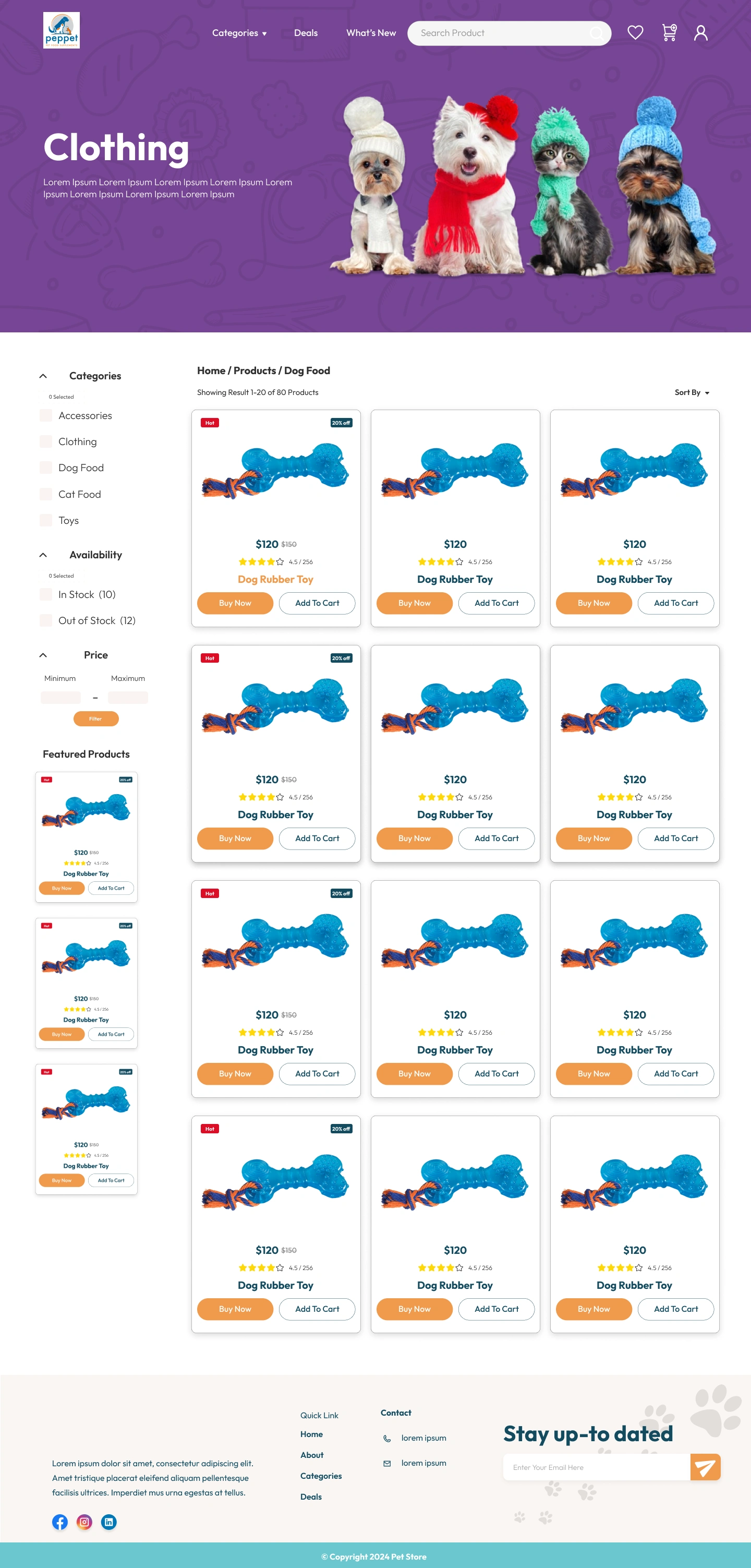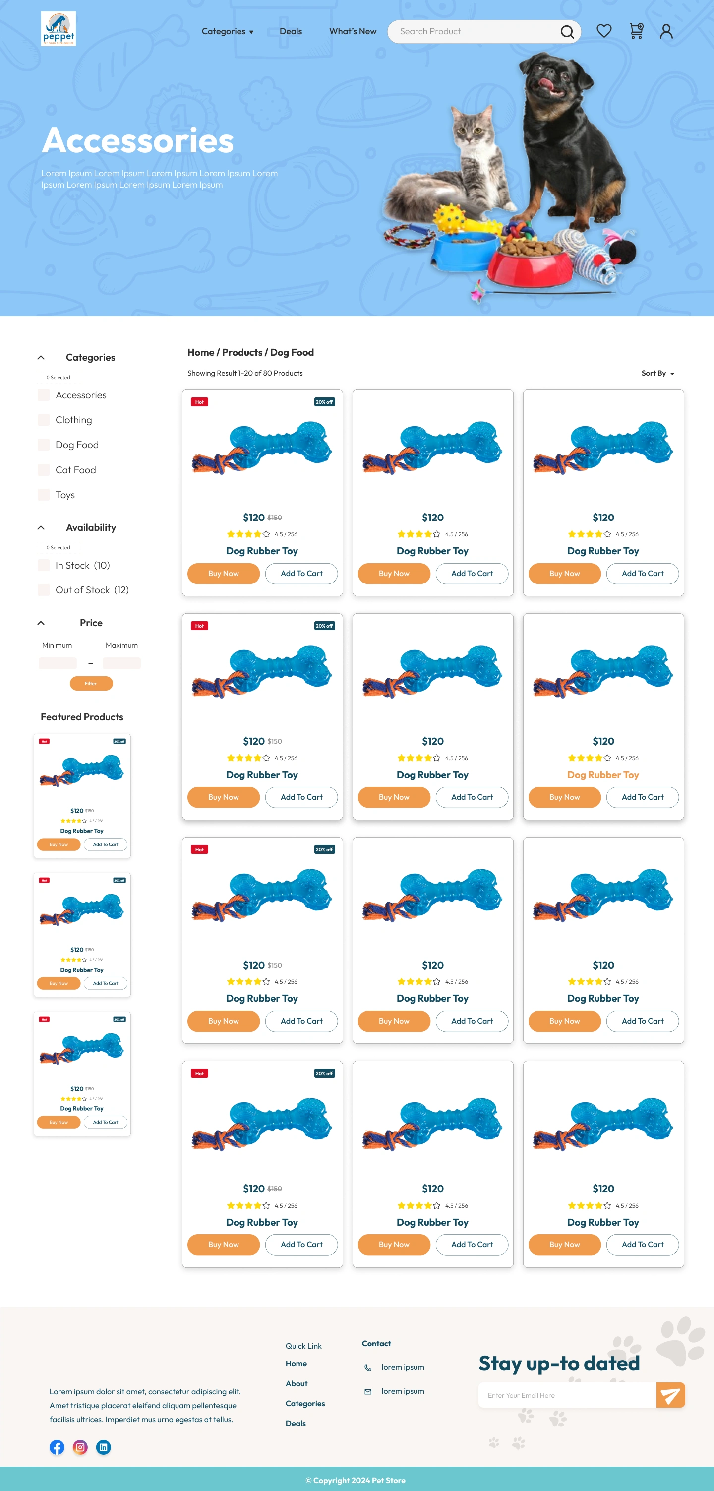 Colorful and lively UI design for a pet essentials website that captures the playful spirit of pets. The layout includes bright colours and engaging visuals.