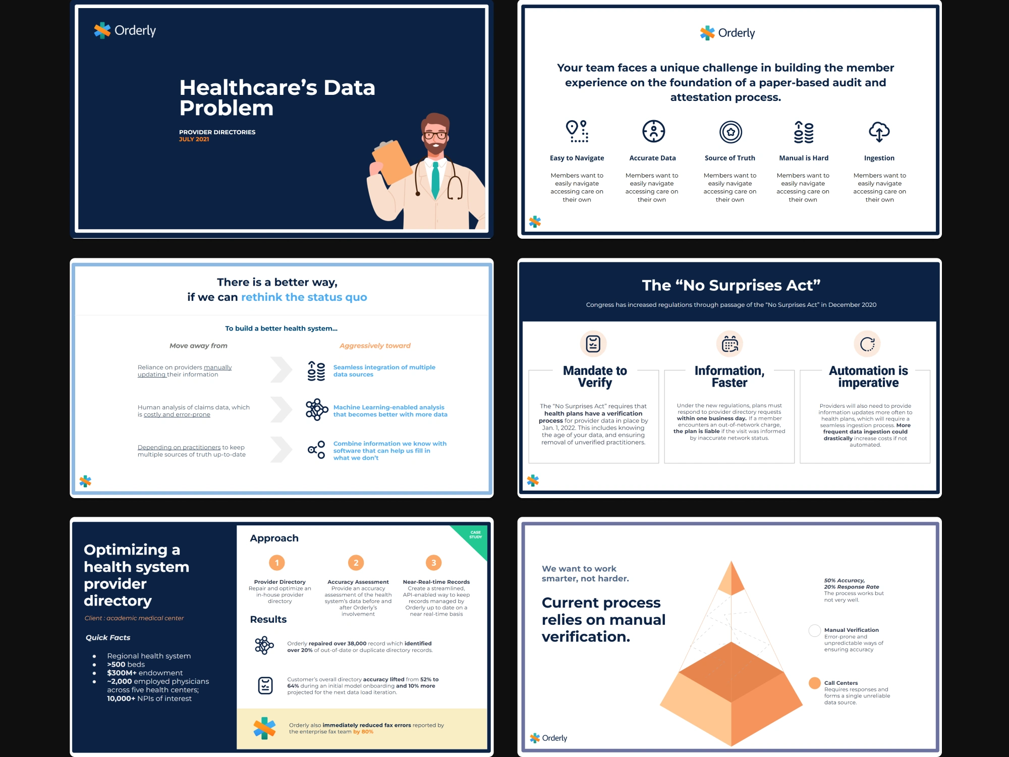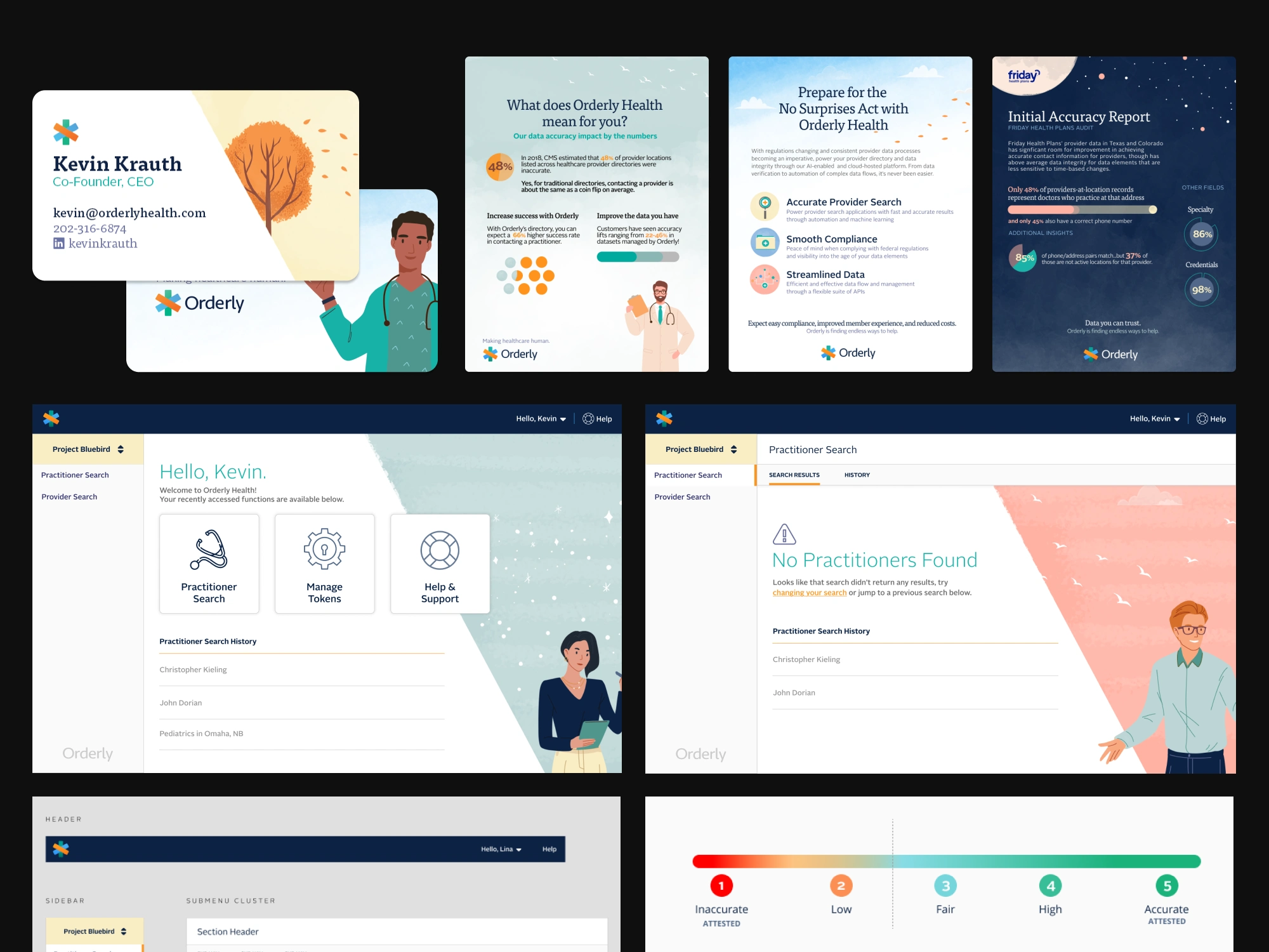 In 2021, Orderly was ramping up sales, hiring and product development. They needed a lot of collateral quickly. I worked in weekly meetings with the leadership to develop slide deck templates, print flyer templates, UI/UX components for their product design system and even business cards with custom backs for an adding layer of thoughtfulness.