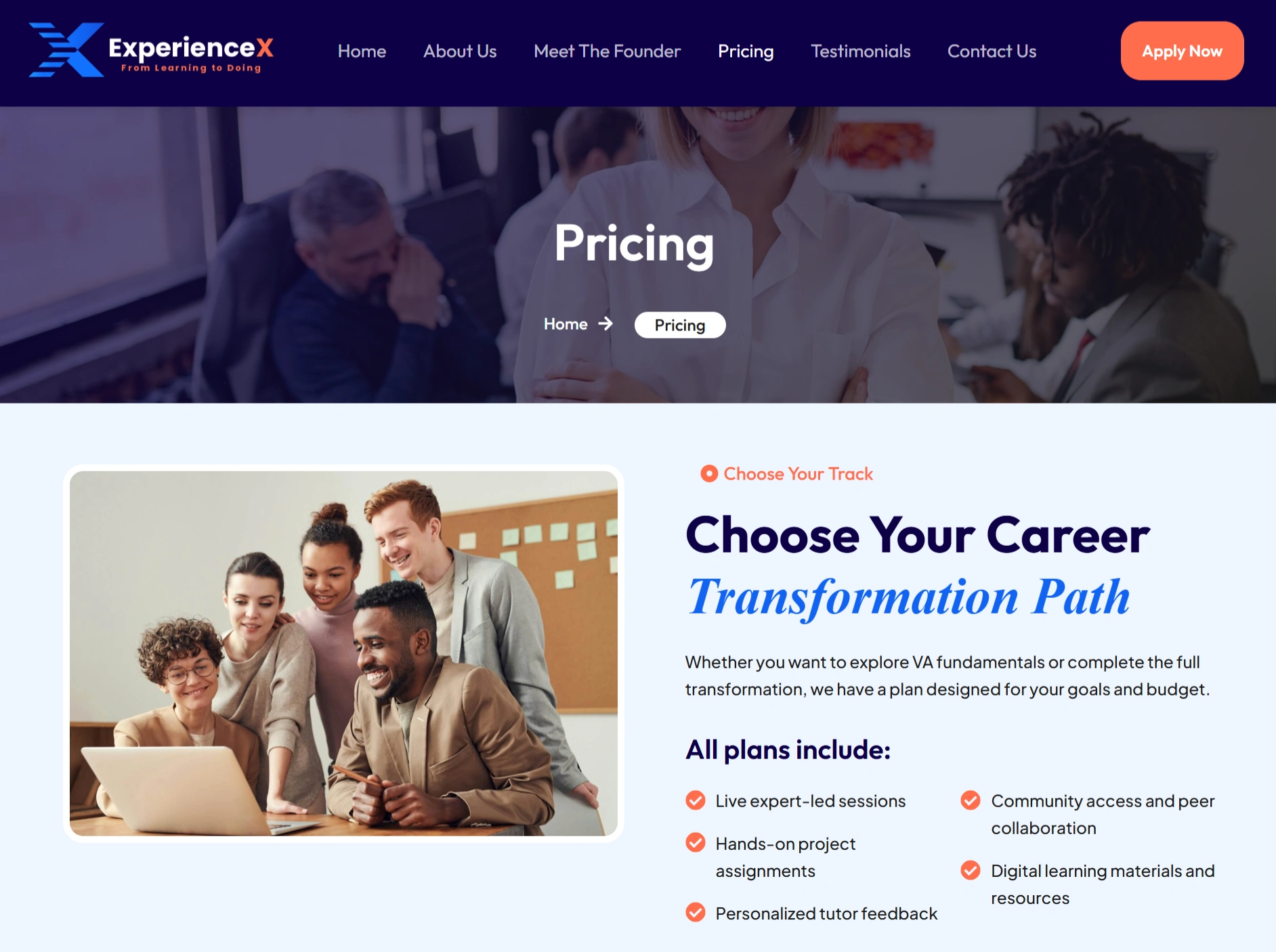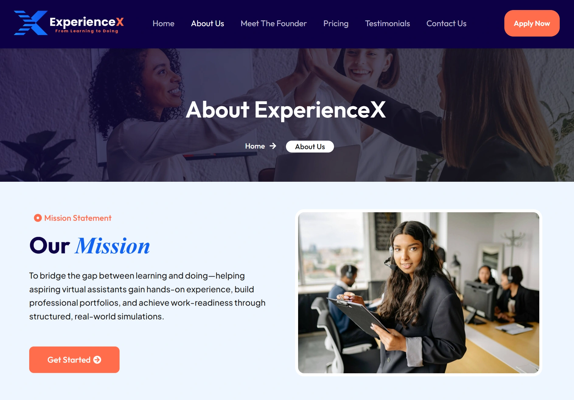 The result is a clear, compelling platform that positions ExperienceX as a practical, career-first training solution helping learners confidently transition into professional virtual assistant roles.