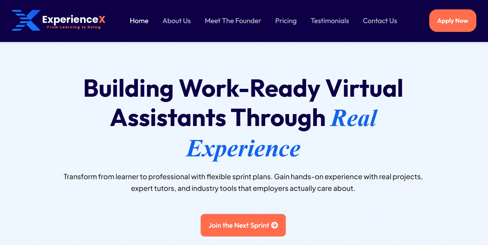ExperienceX needed a platform that could move learners beyond theory and position them as work-ready virtual assistants. The goal was to clearly communicate the value of real-world experience, expert mentorship, and portfolio-ready outcomes in a competitive online learning space.