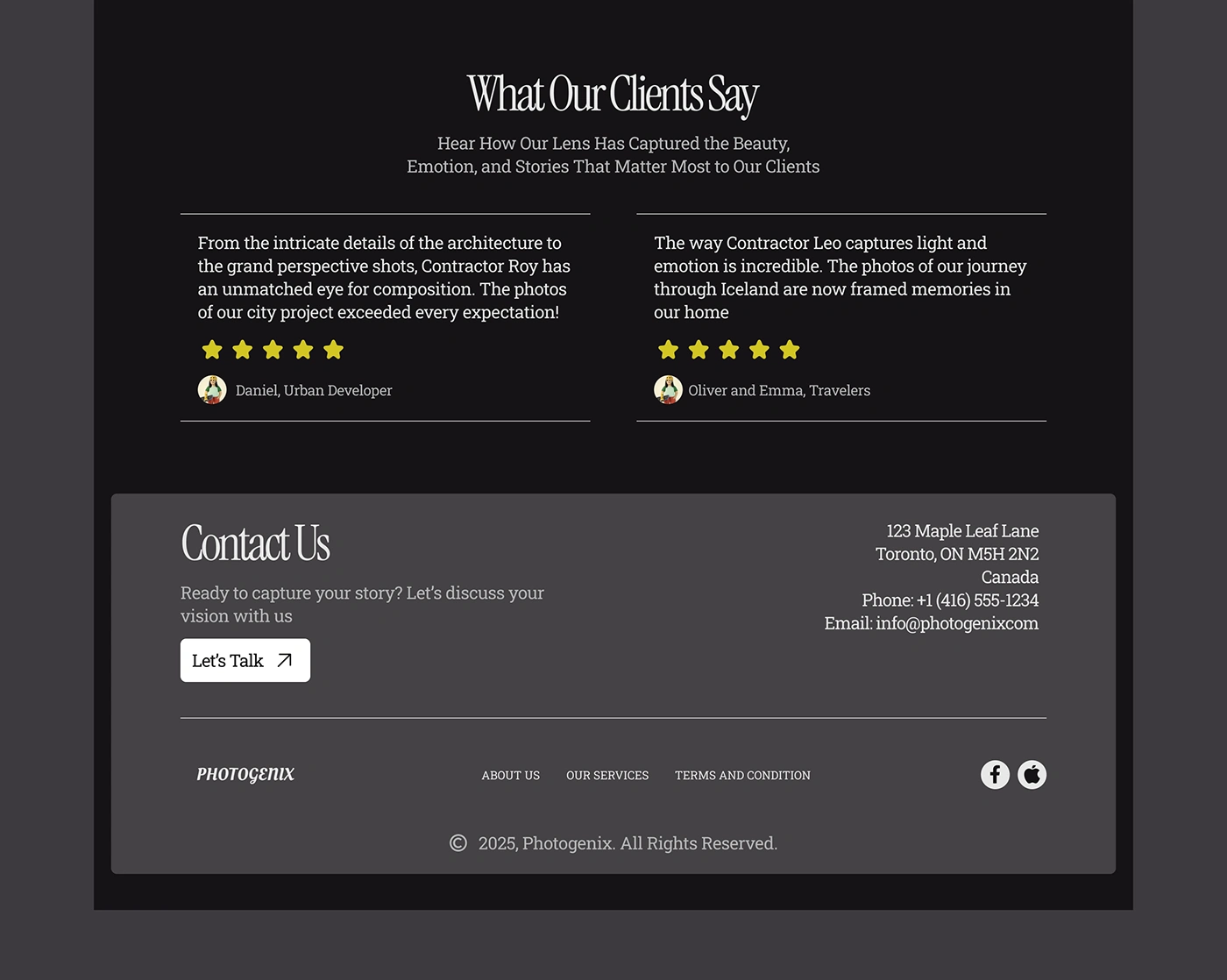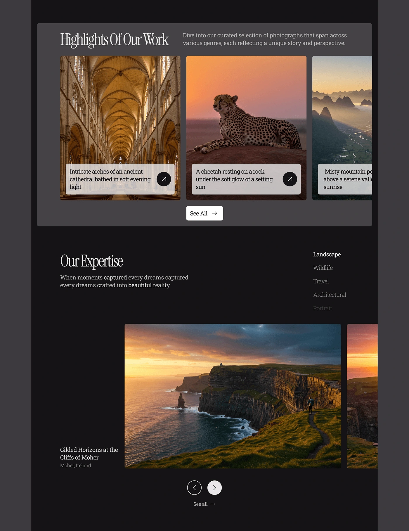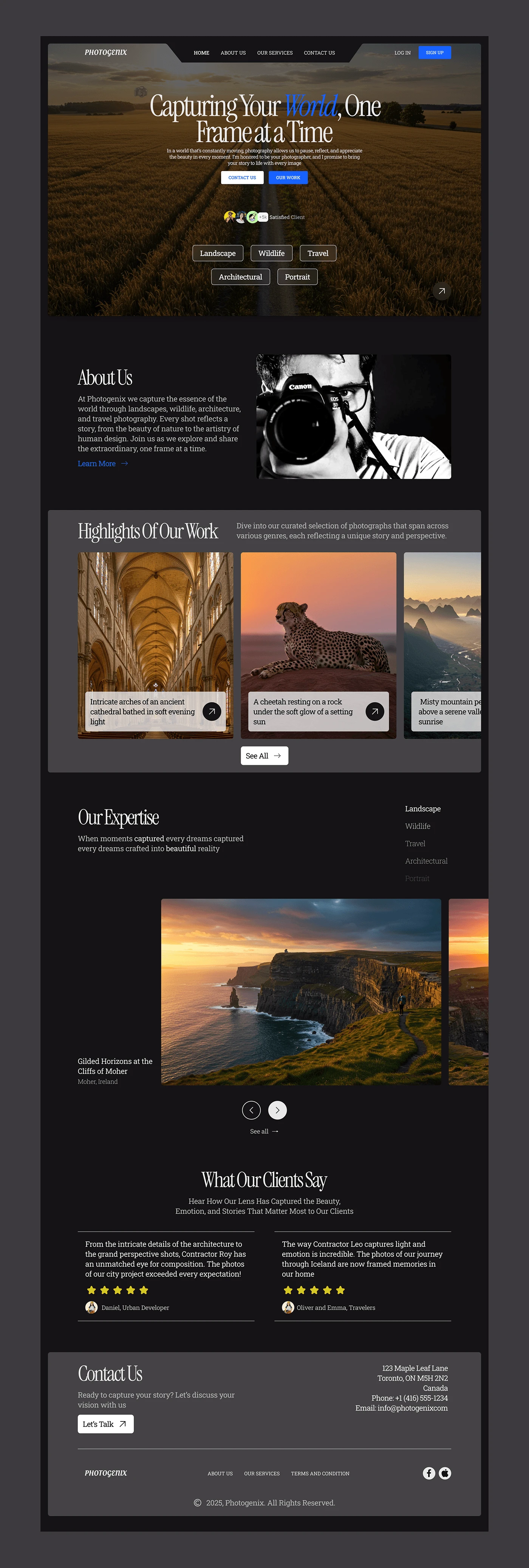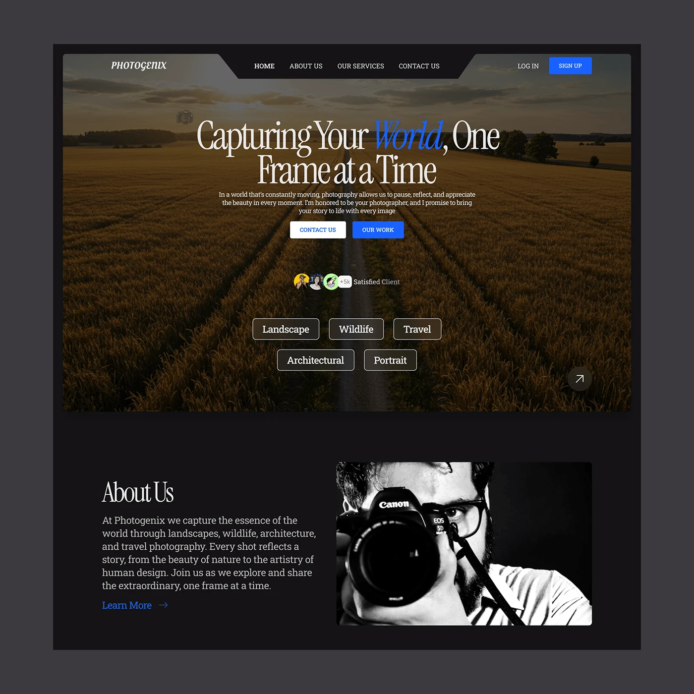 The goal was to create an immersive online presence that highlights the photographer’s artistry while maintaining a seamless user experience.