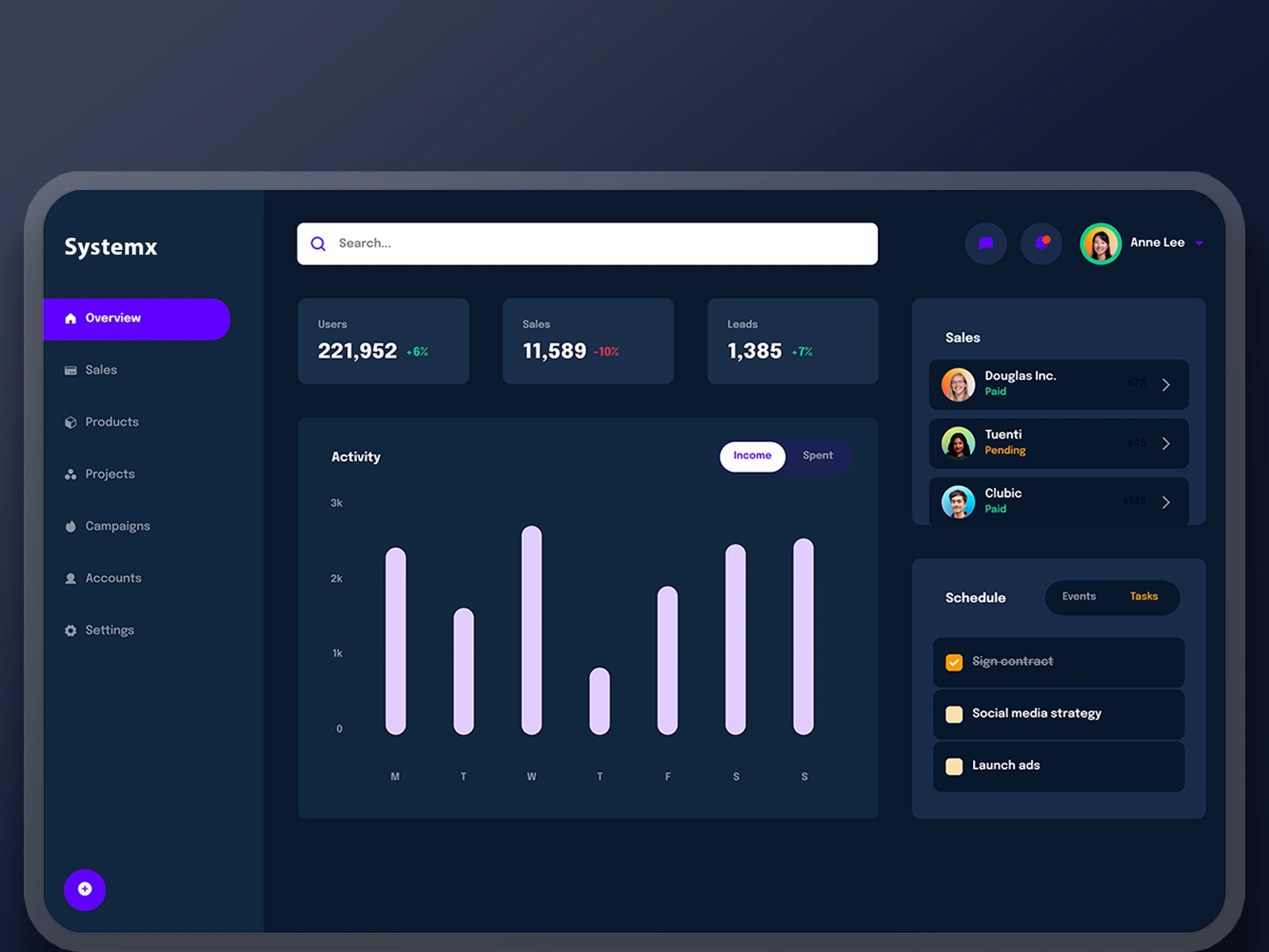 By focusing on clarity, interactivity, and personalization, this design aims to empower users with the tools they need to make informed decisions and manage their business efficiently. The combination of clean visuals, intuitive navigation, and actionable data ensures a seamless and productive user experience.