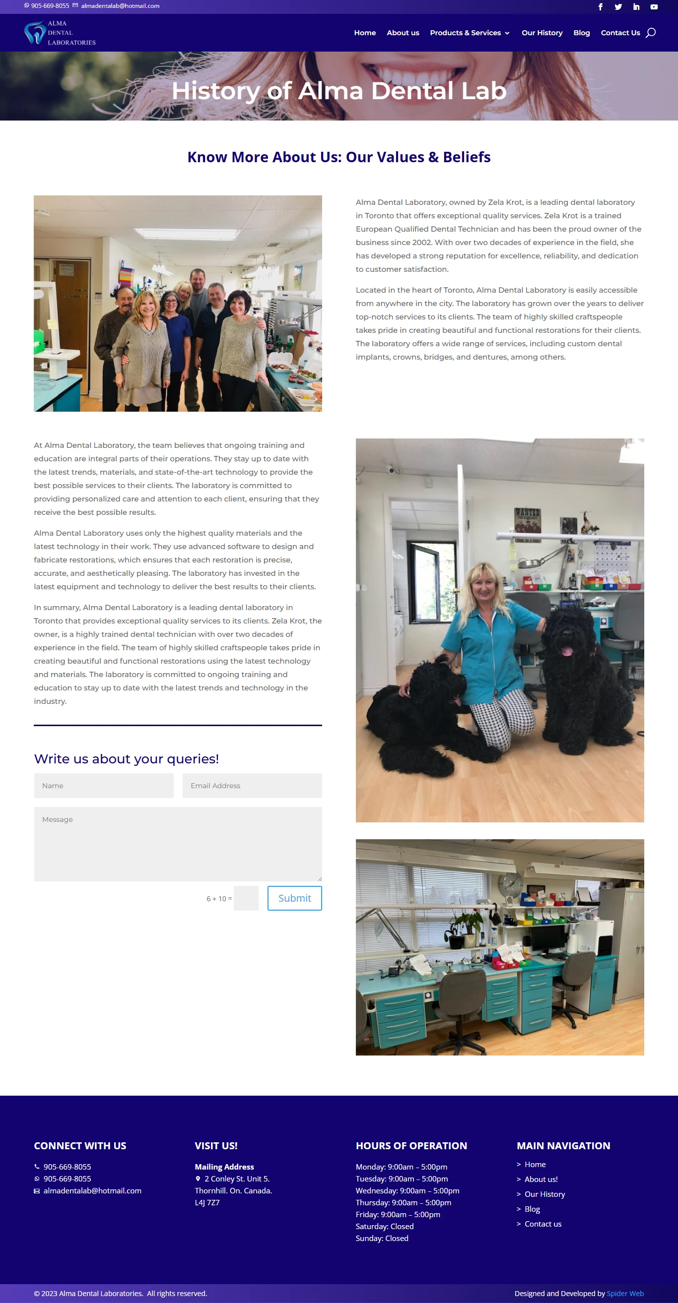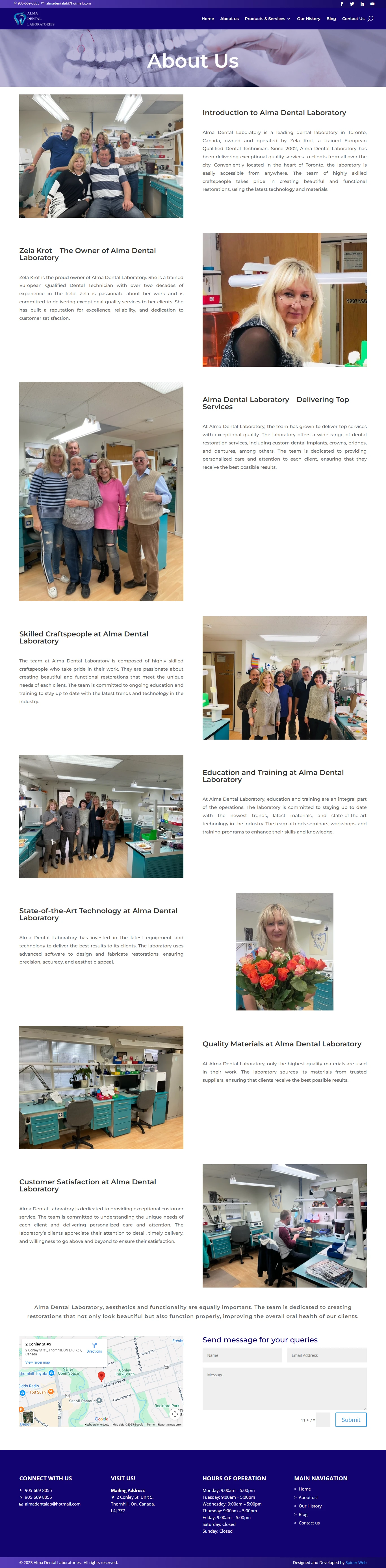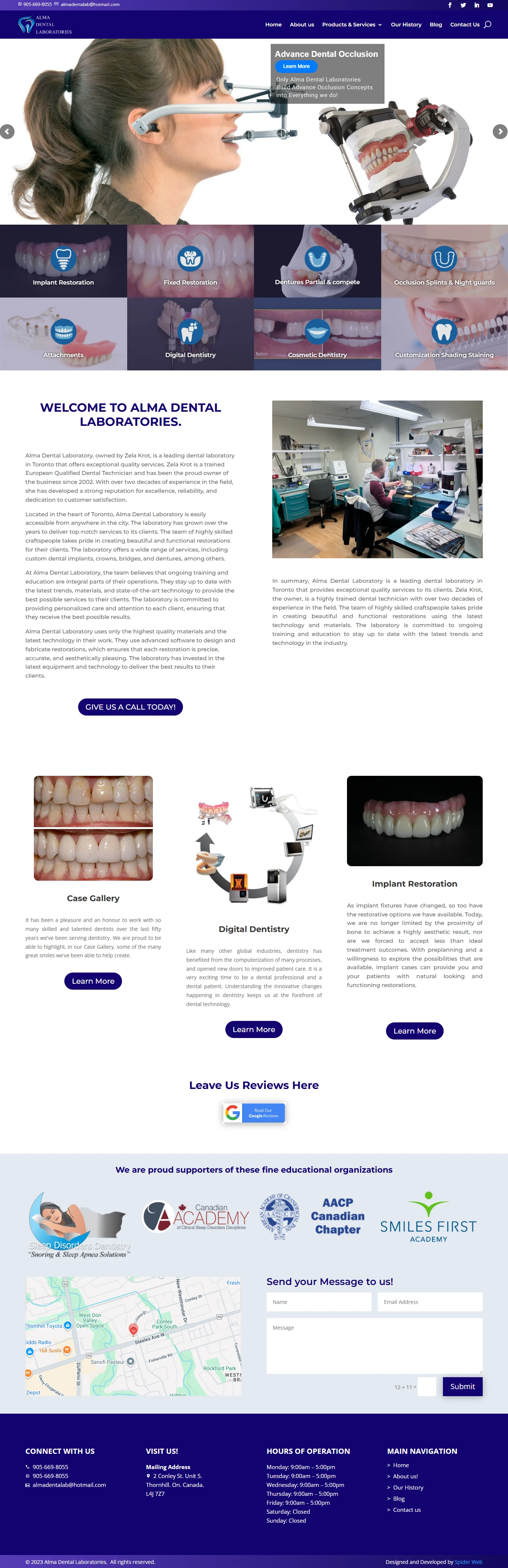 Integrated contact forms, Google Maps for Toronto location, and optimized media for showcasing restorations.