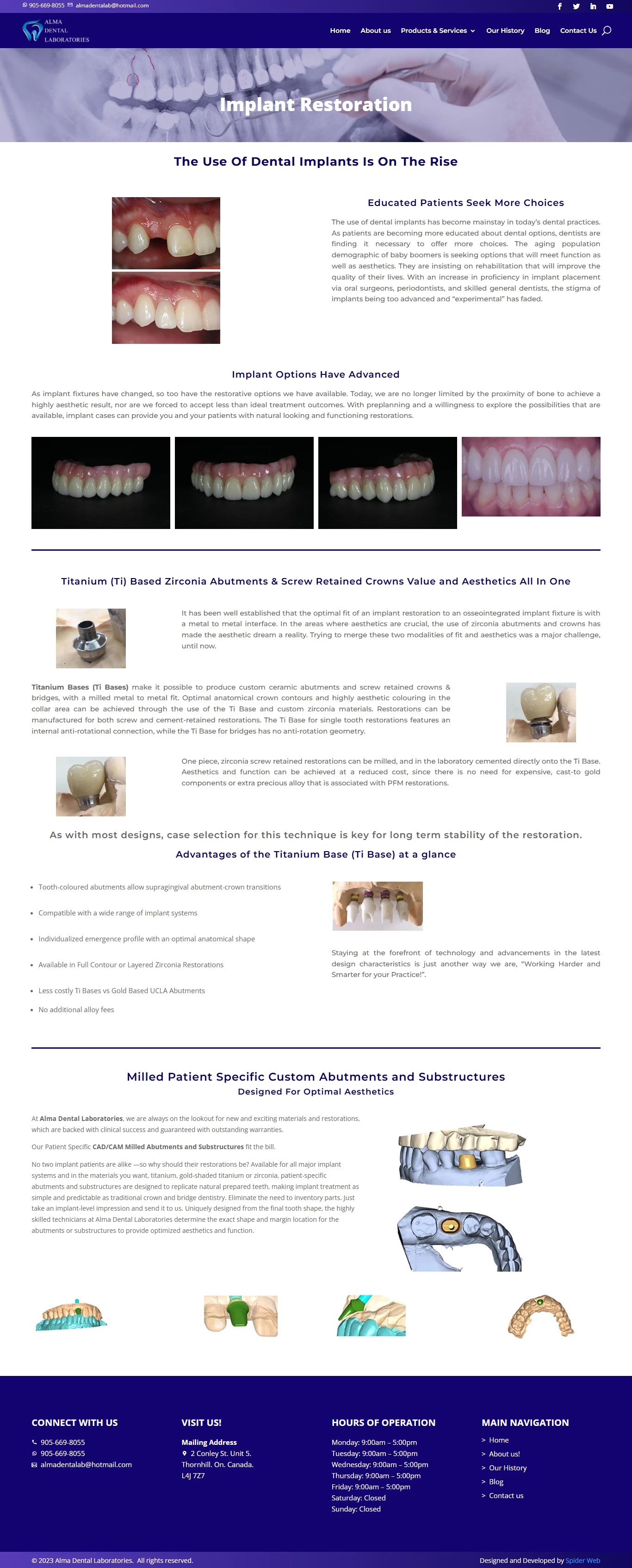 Custom theme with sections for Case Gallery, Digital Dentistry, Implant Restoration, and About Us pages featuring high-quality images and client testimonials.