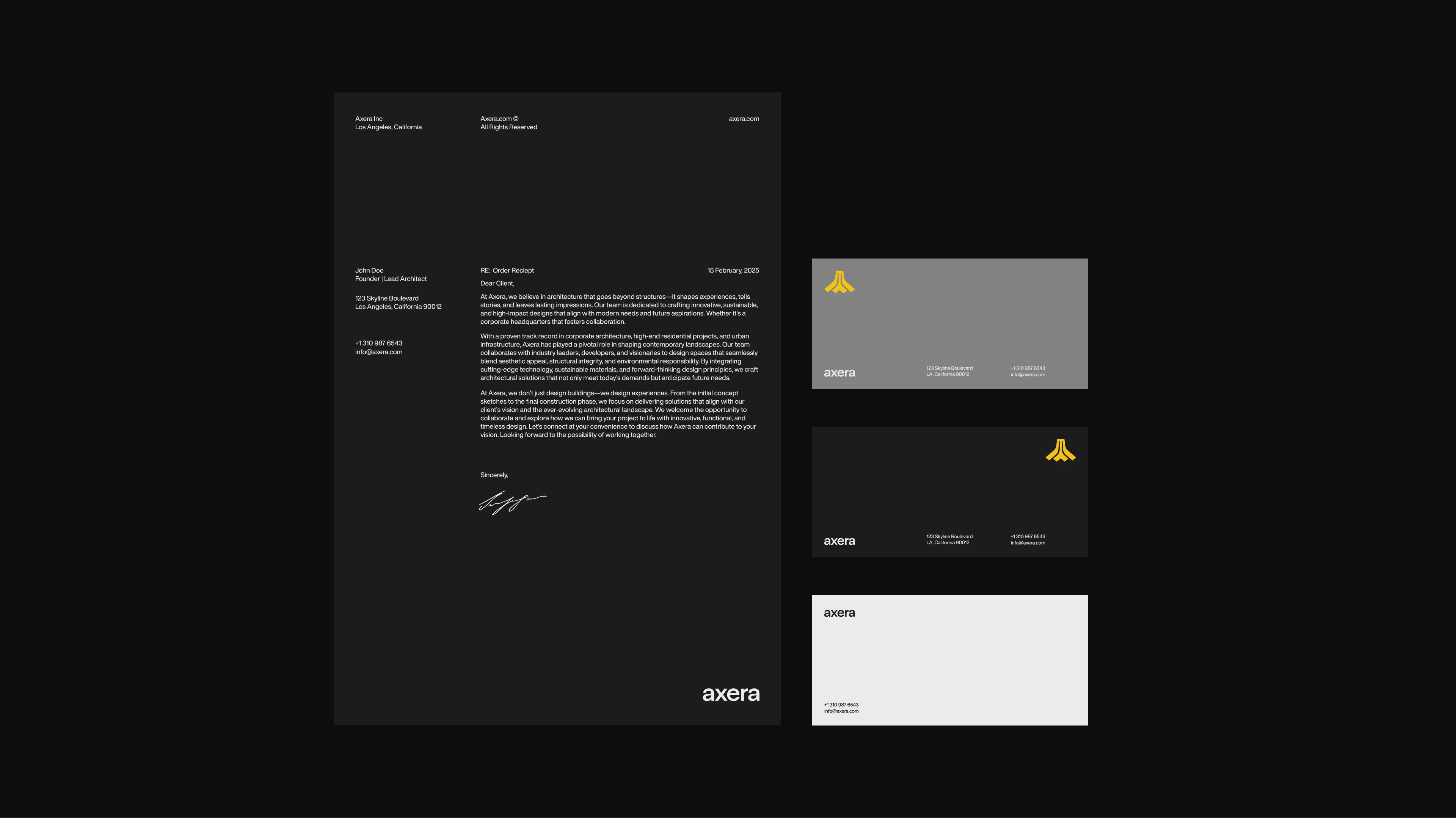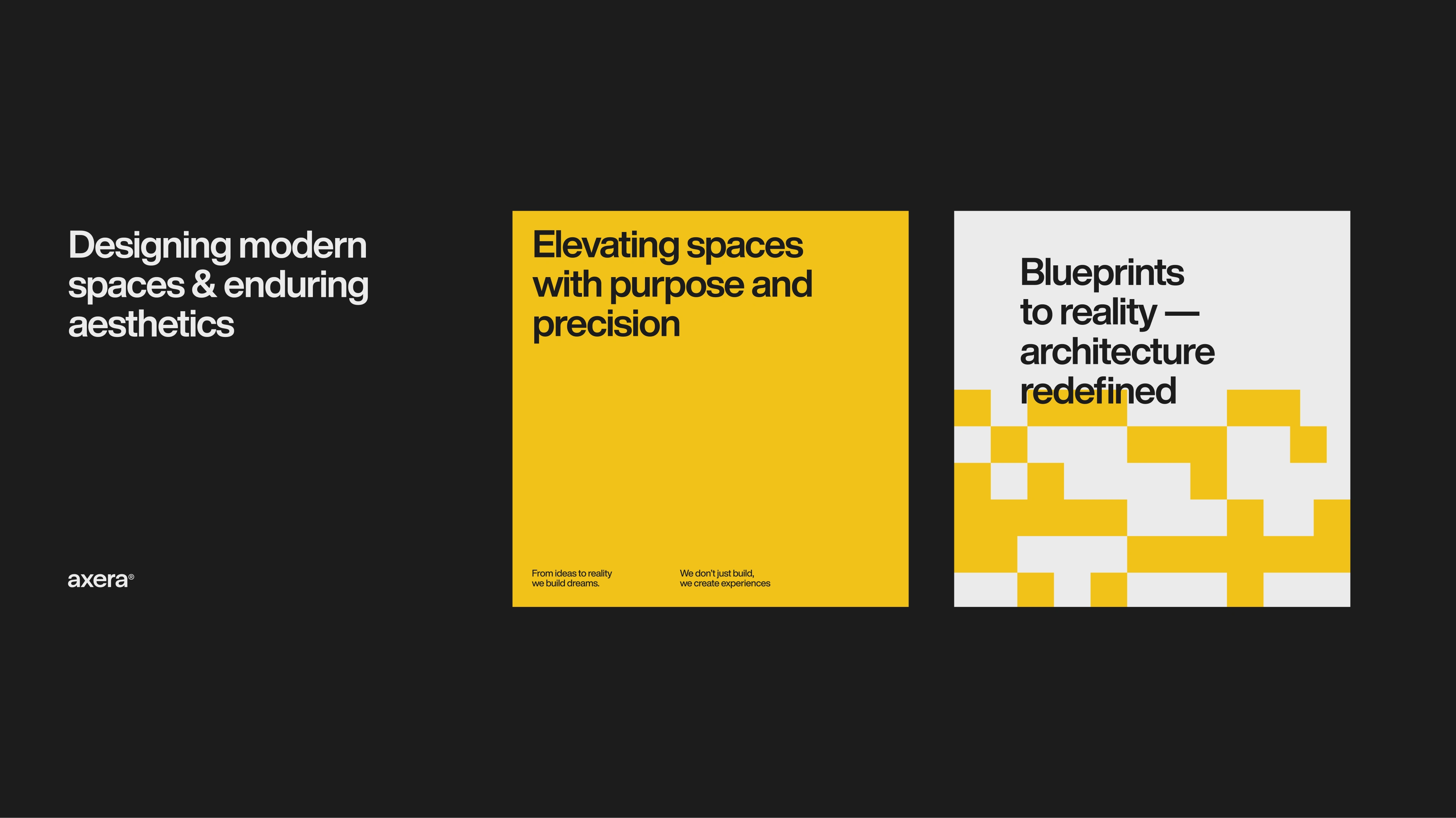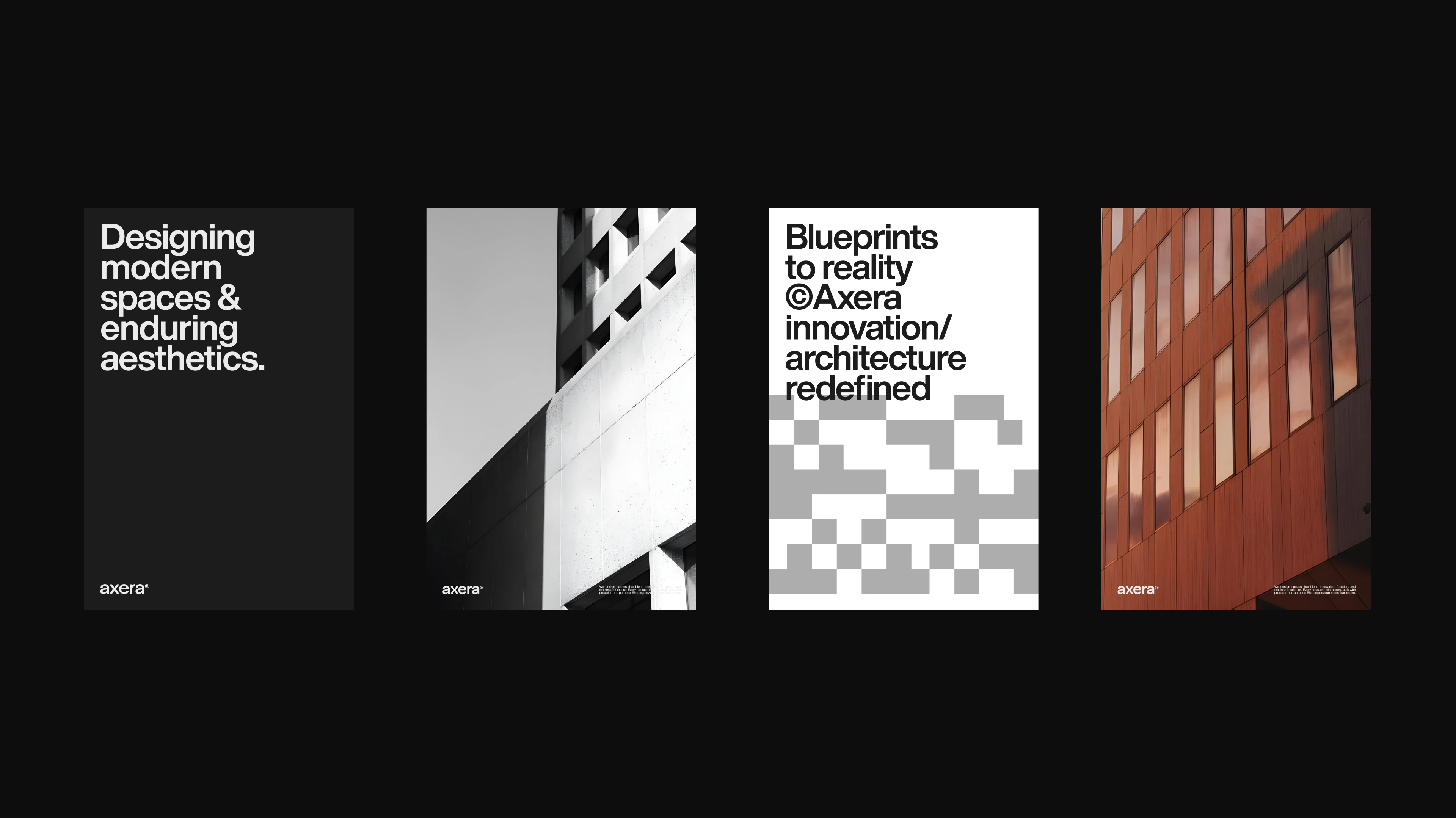 Brand identity for Axera, an architecture brand that blends structure, innovation, and connectivity to create timeless, impactful spaces.