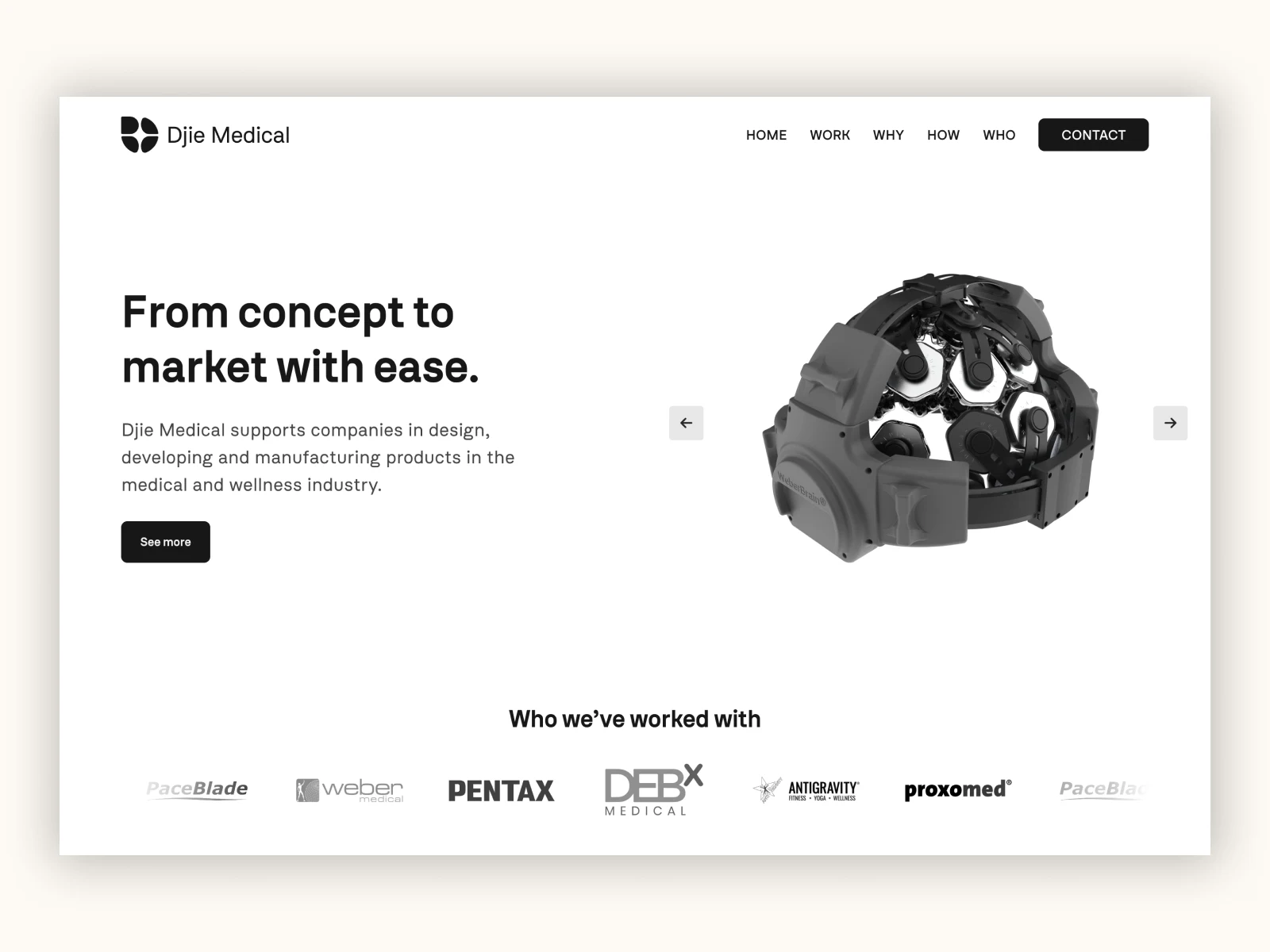 Djie Medical is a product design company in the wellness and medical industry based in Taiwan. They were looking for a completely new branding and web presence. While working together, we developed a new brand concept and brand guideline. Based on that we designed their website to showcase some of their most impactful projects.