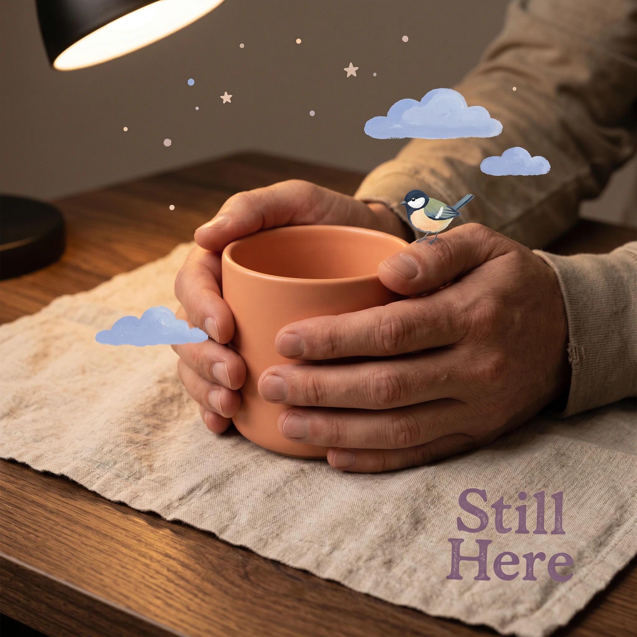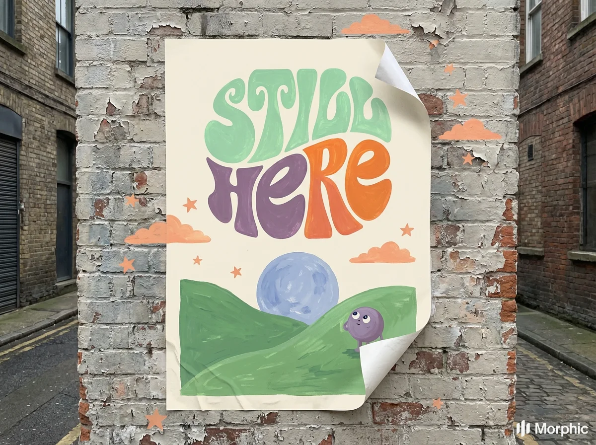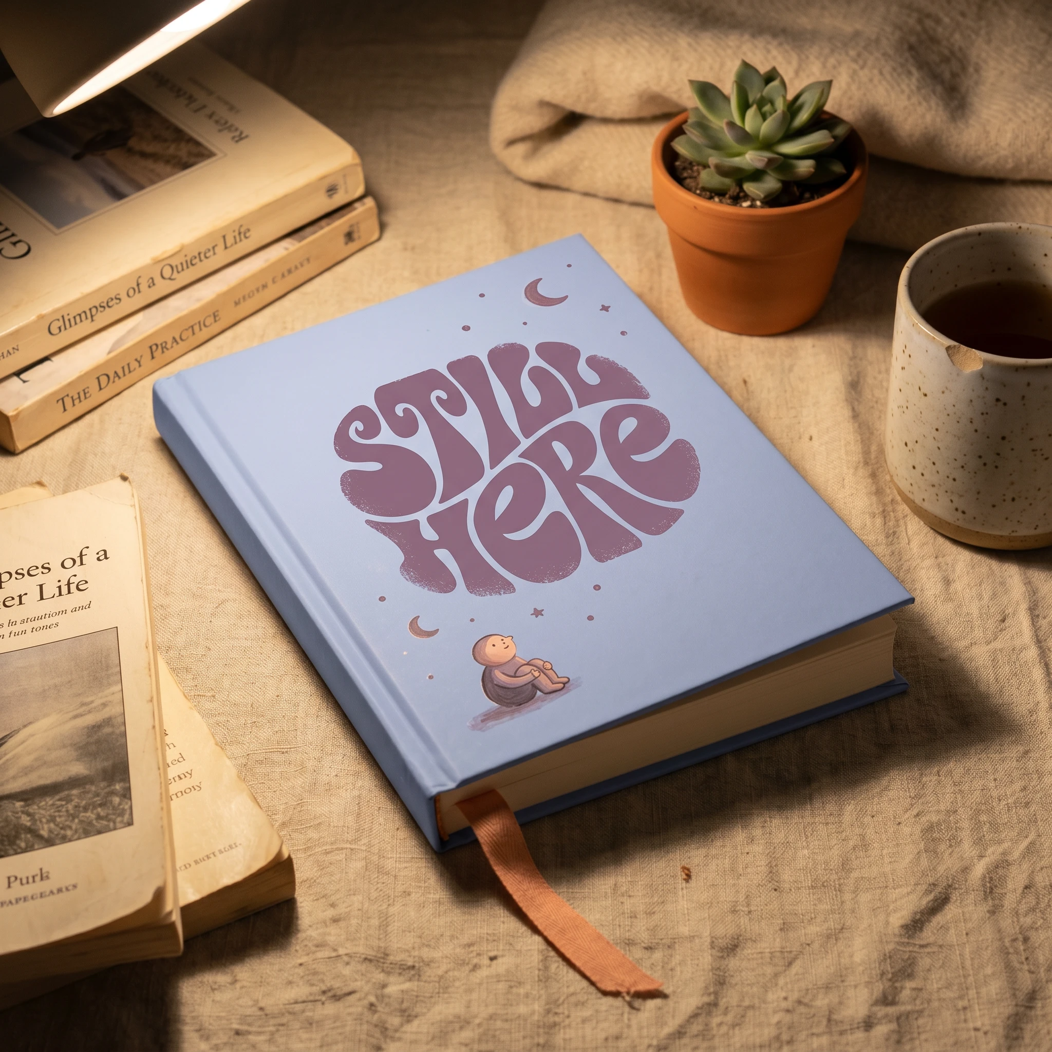 Still Here, mental health brand using children's book illustration, the most honest emotional language is the one we learned before we learned to hide.