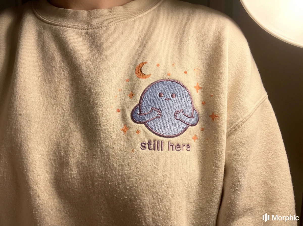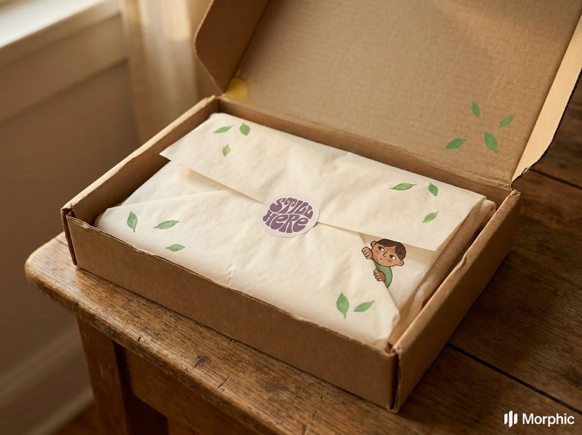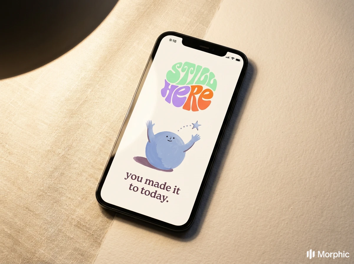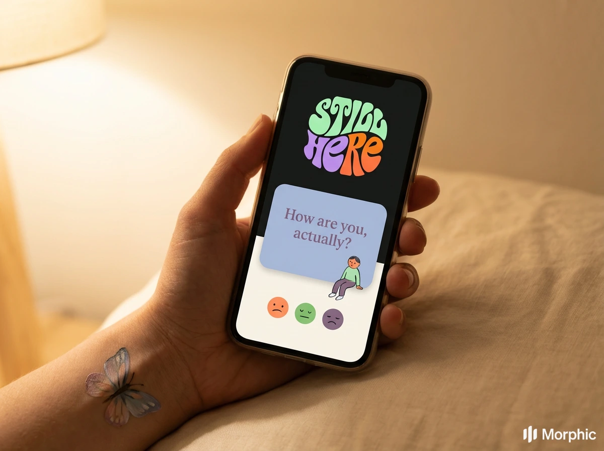 Still Here, mental health brand using children's book illustration, the most honest emotional language is the one we learned before we learned to hide.